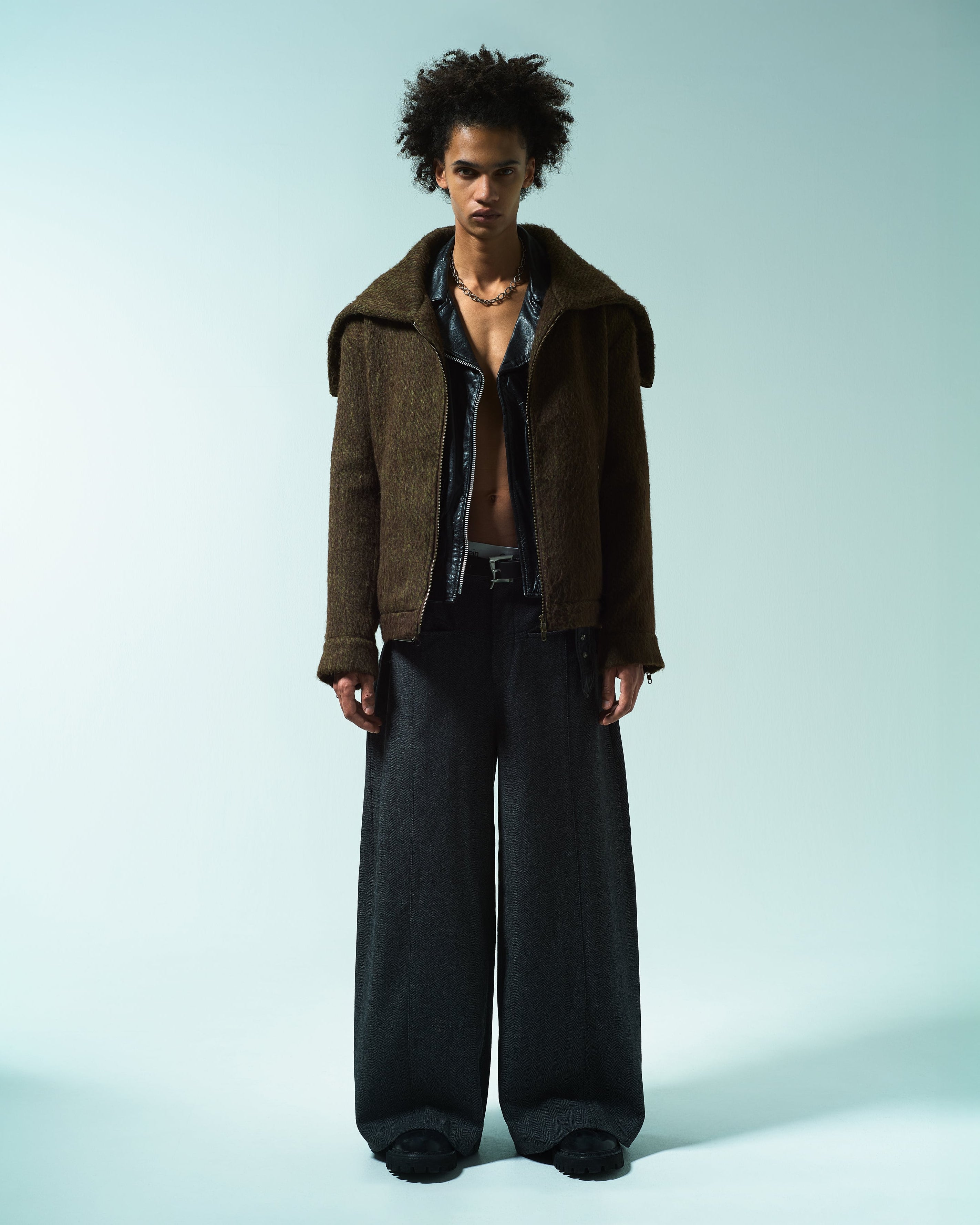 2TUCK WIDE BAGGY FLARE SLACKS - RAME TWEED