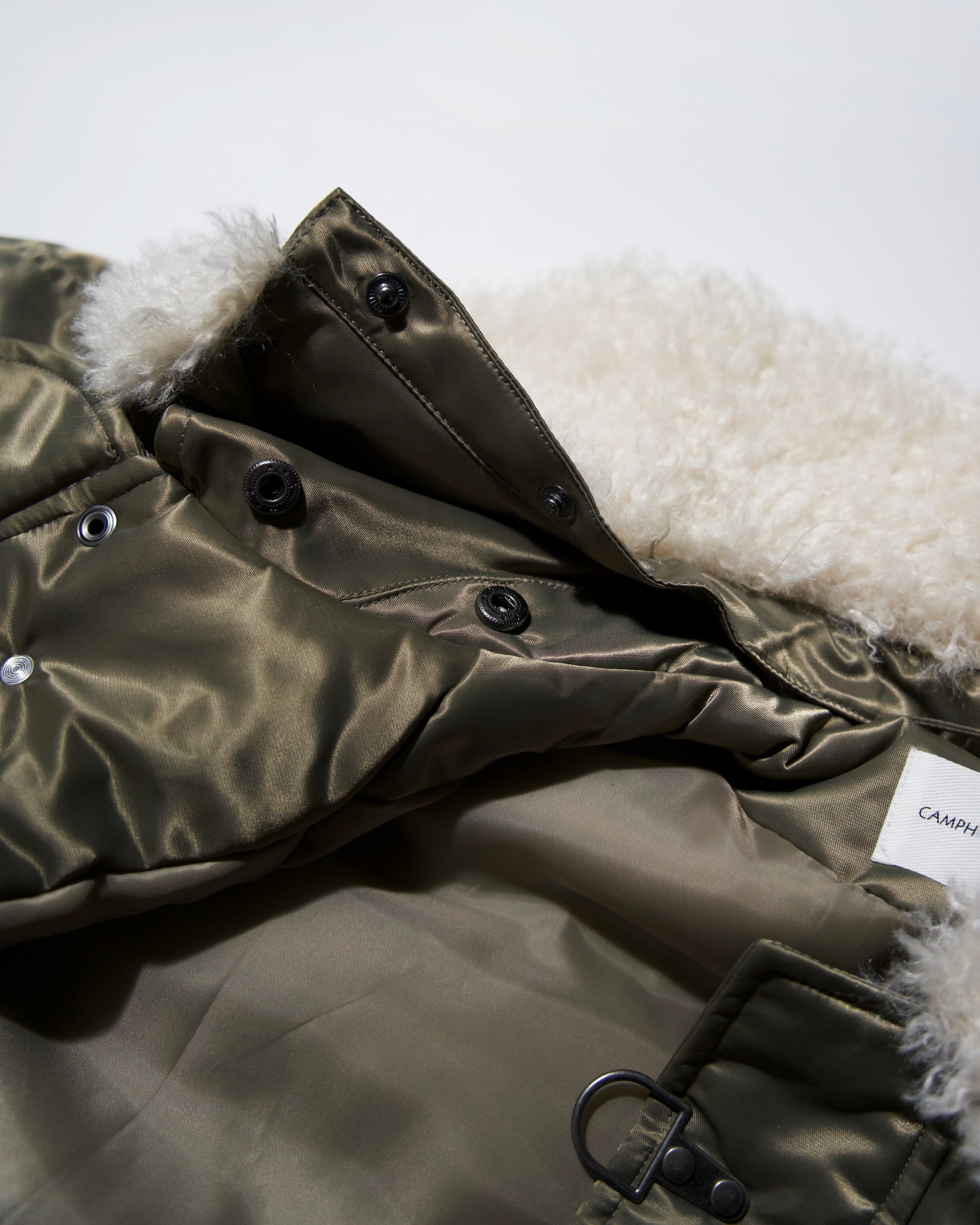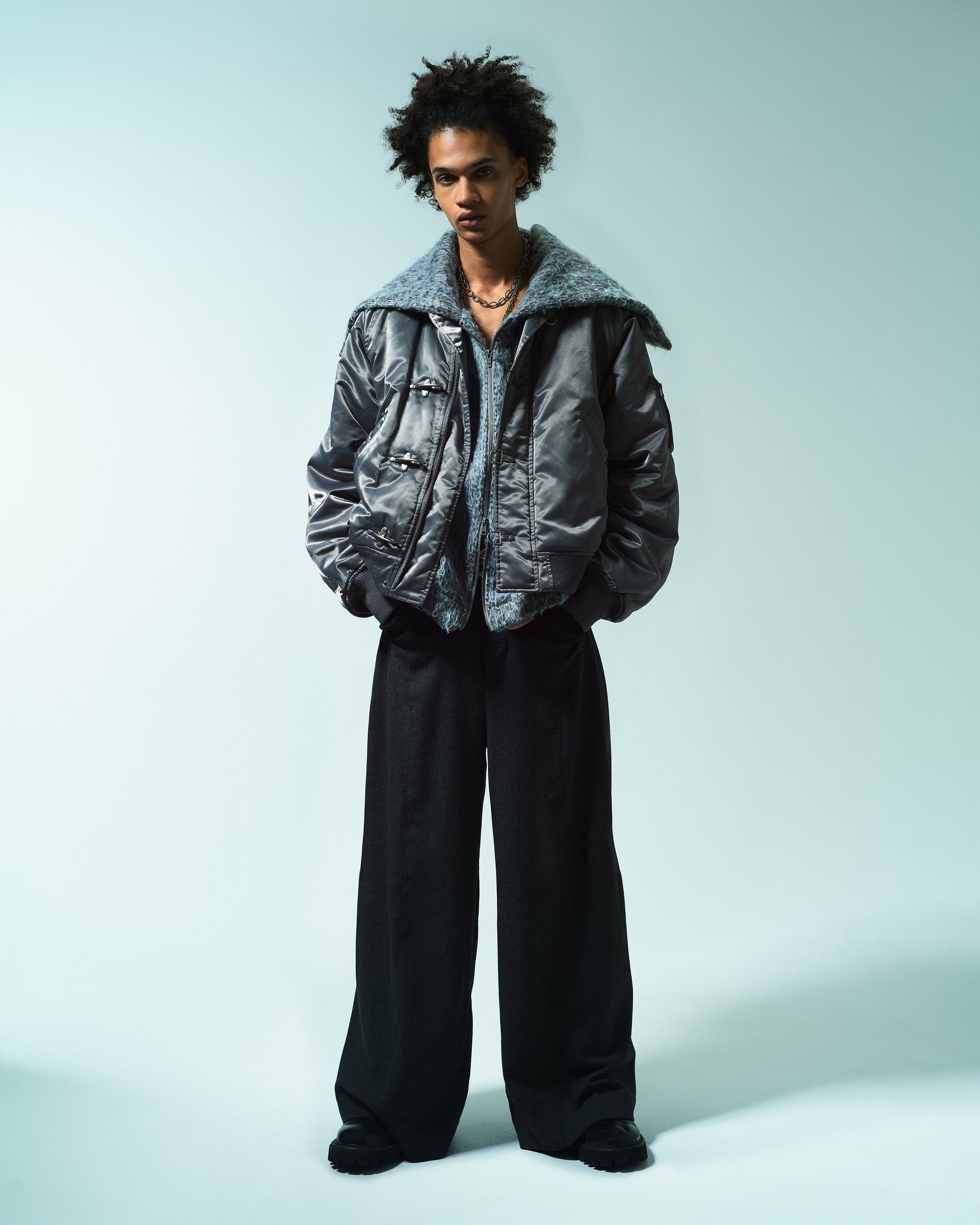 クラシックなミリタリーの骨格を残しながら、現代的な操作で立体感と重厚な存在感を引き出した一着。