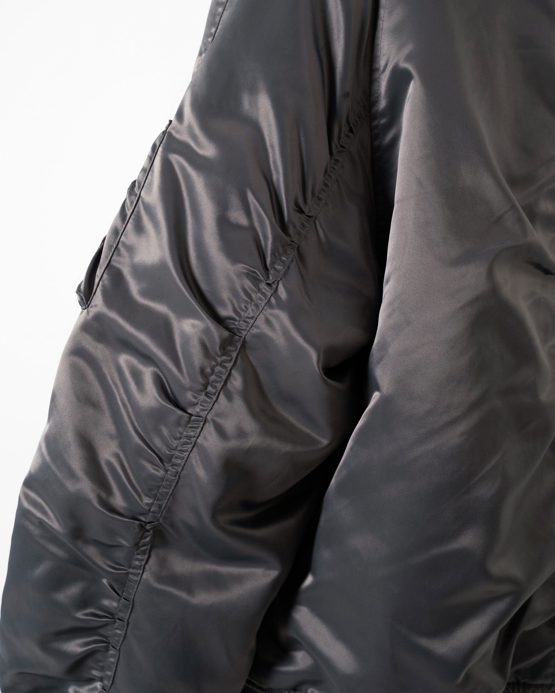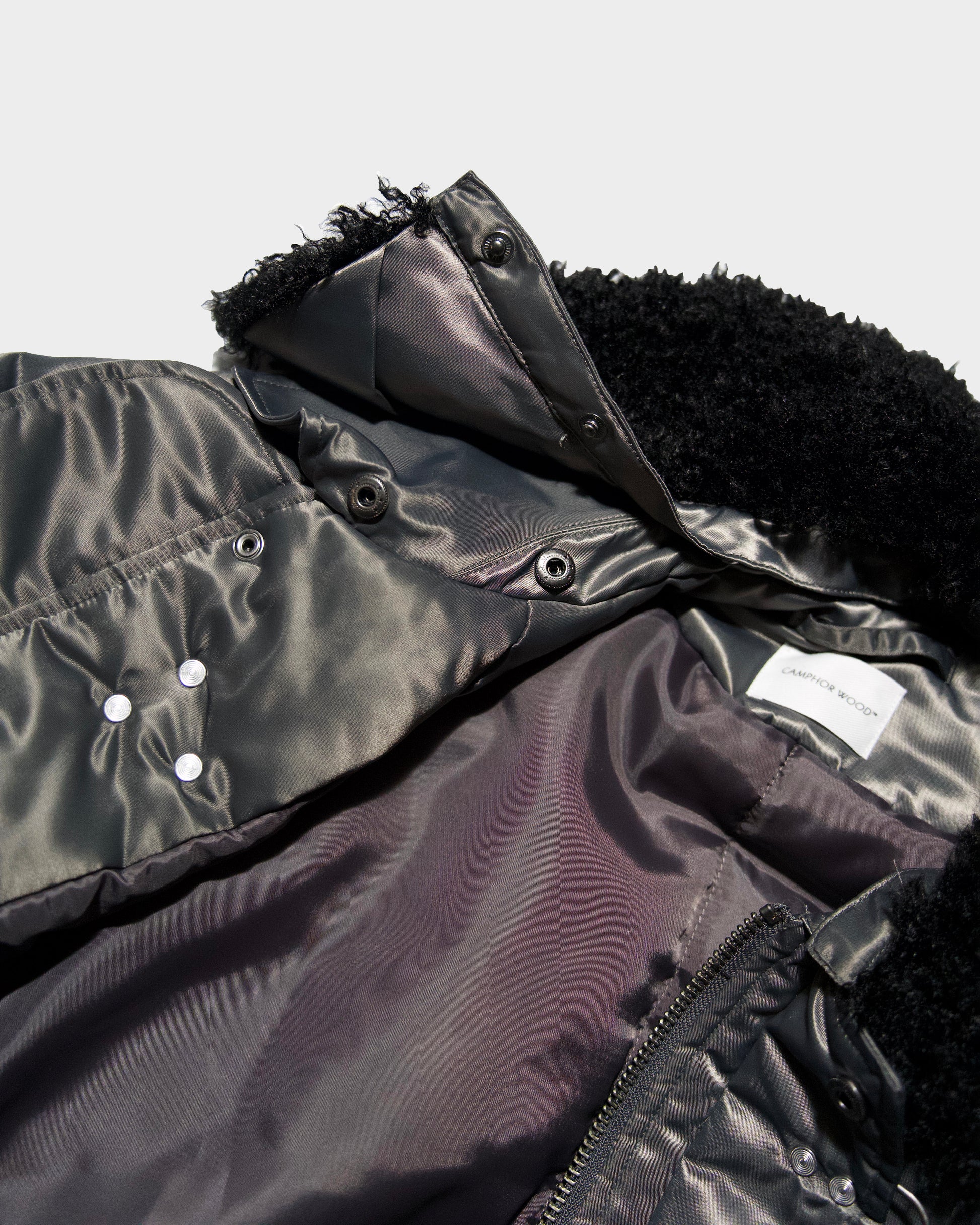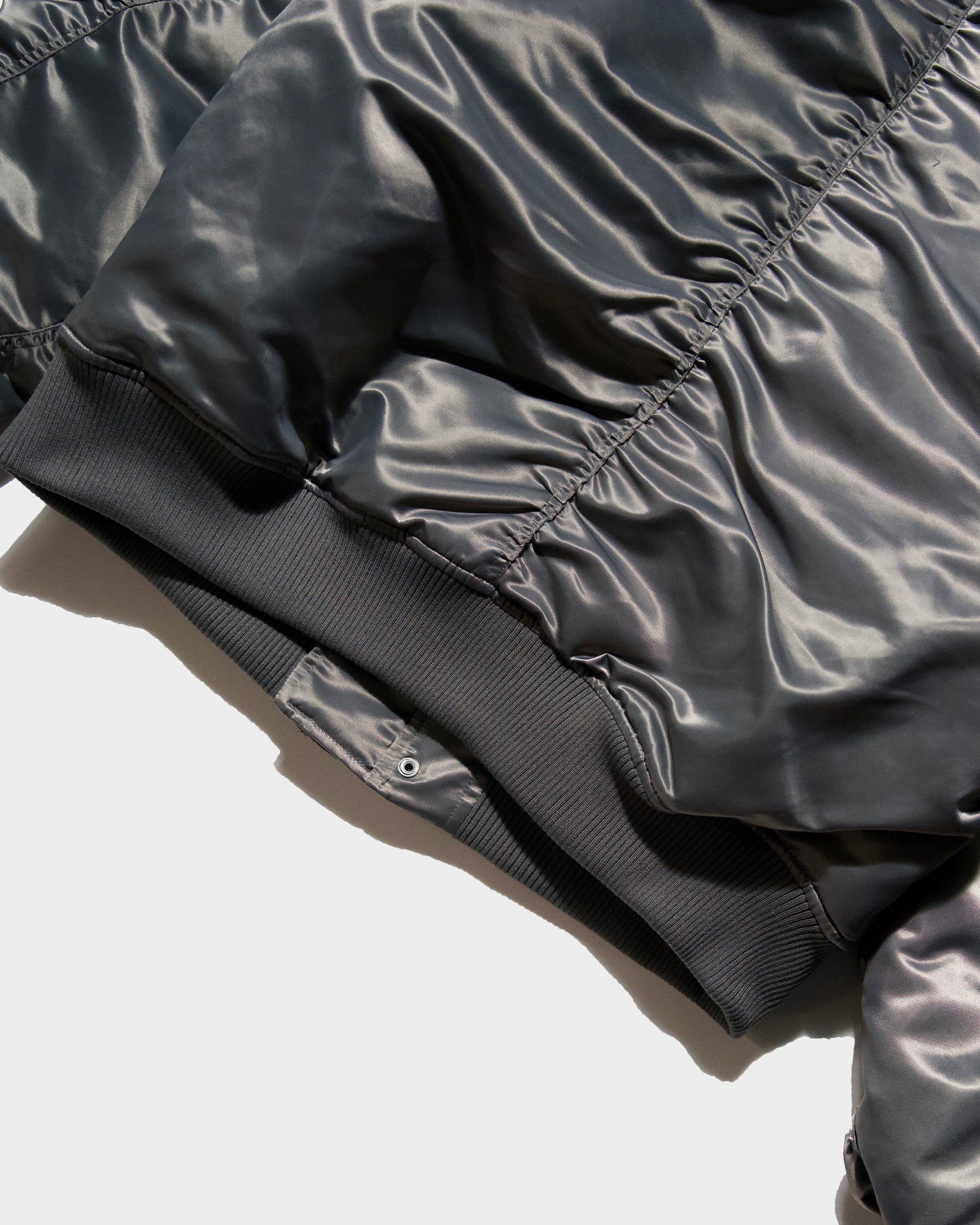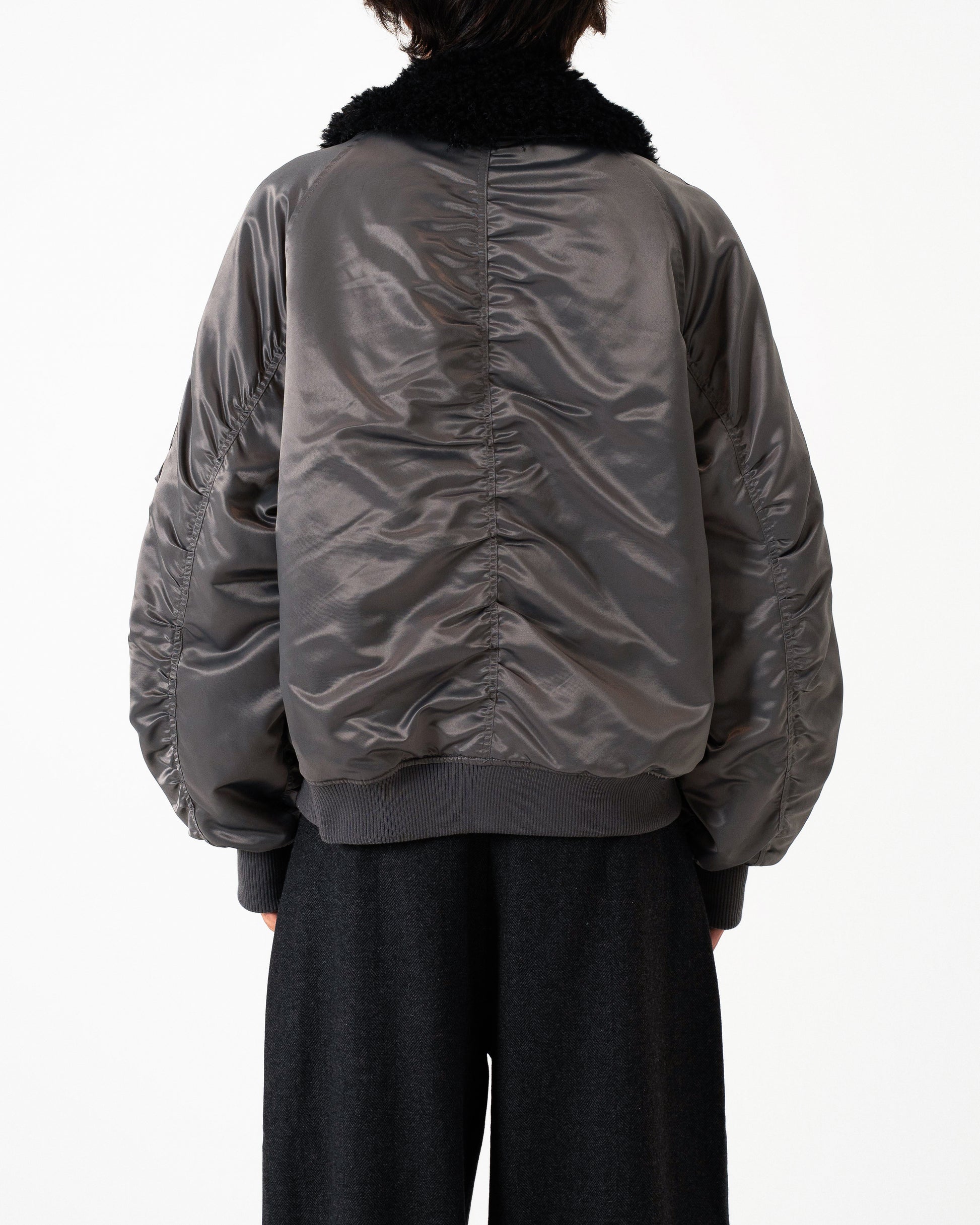 袖リブにはサムホールを配し、防寒性と実用性を強化。背面中央にはギャザーを入れ、丸みを帯びたボリュームと立体的なシルエットを形成。