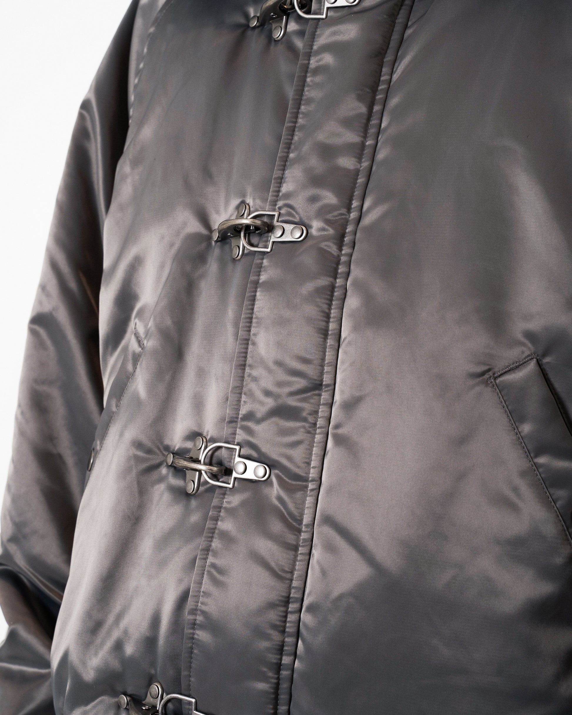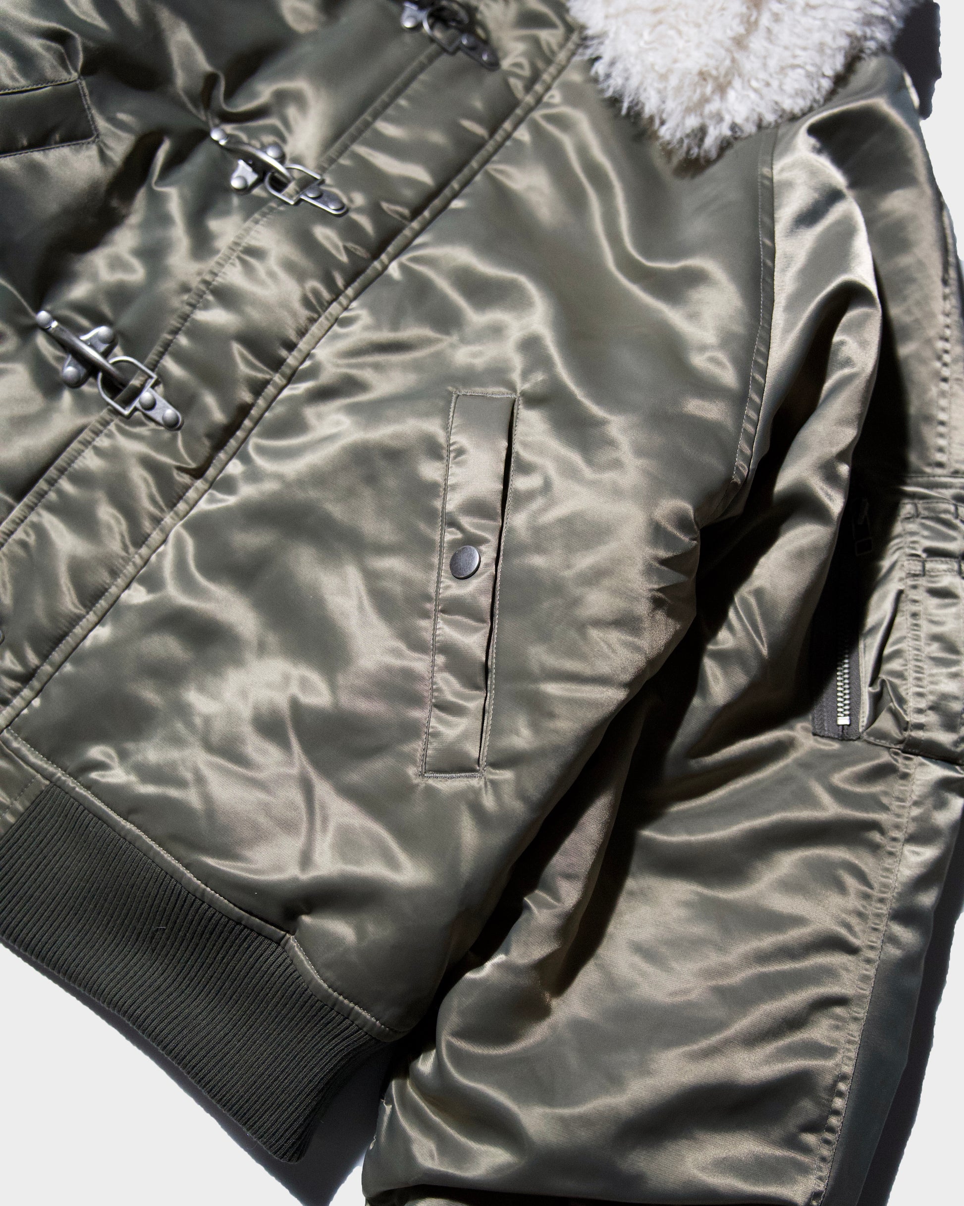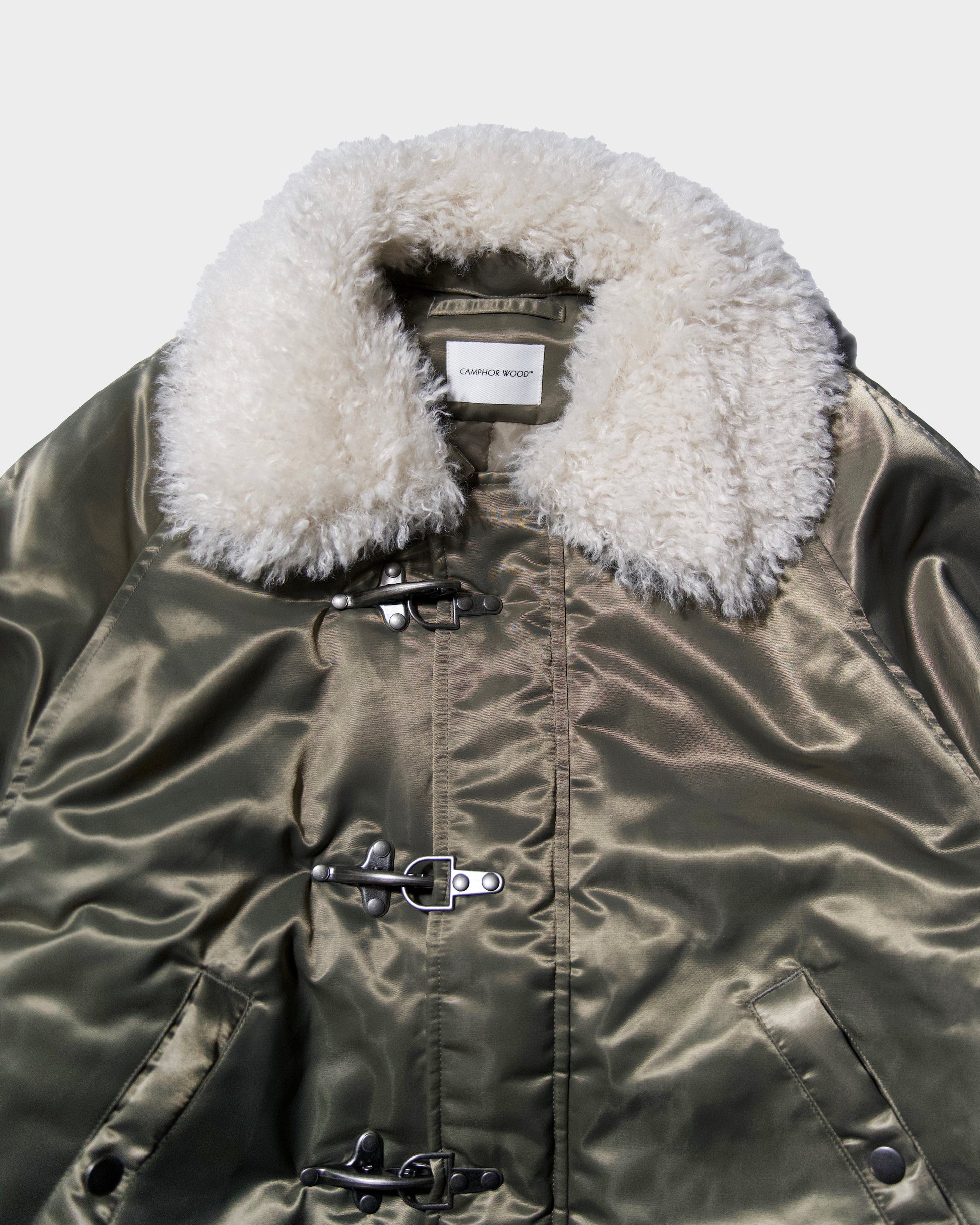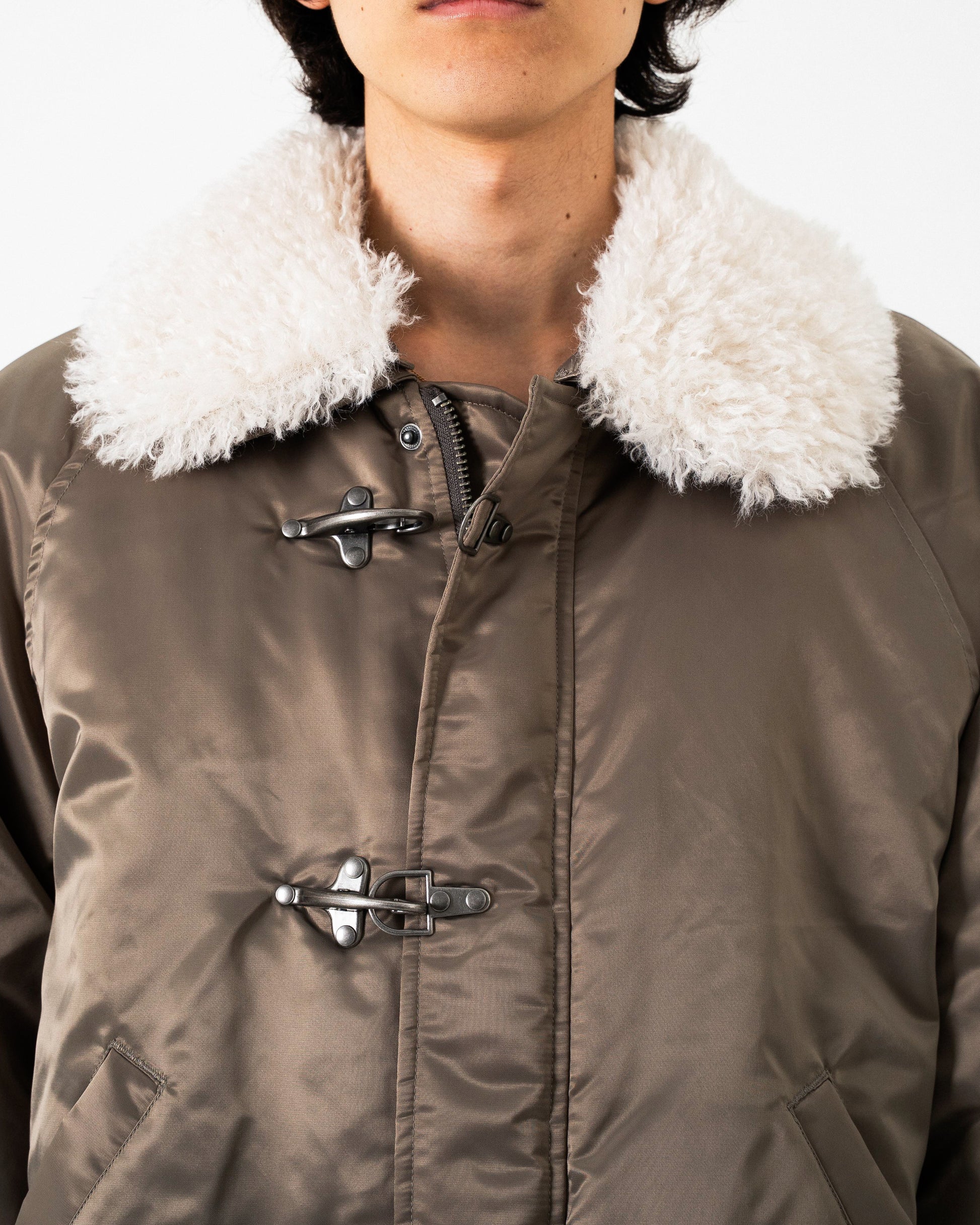 フロントにはファイヤーマンコートを思わせるメタルトグルバックルを採用し、機能性と無骨なアクセントを同時に取り込んでいる。