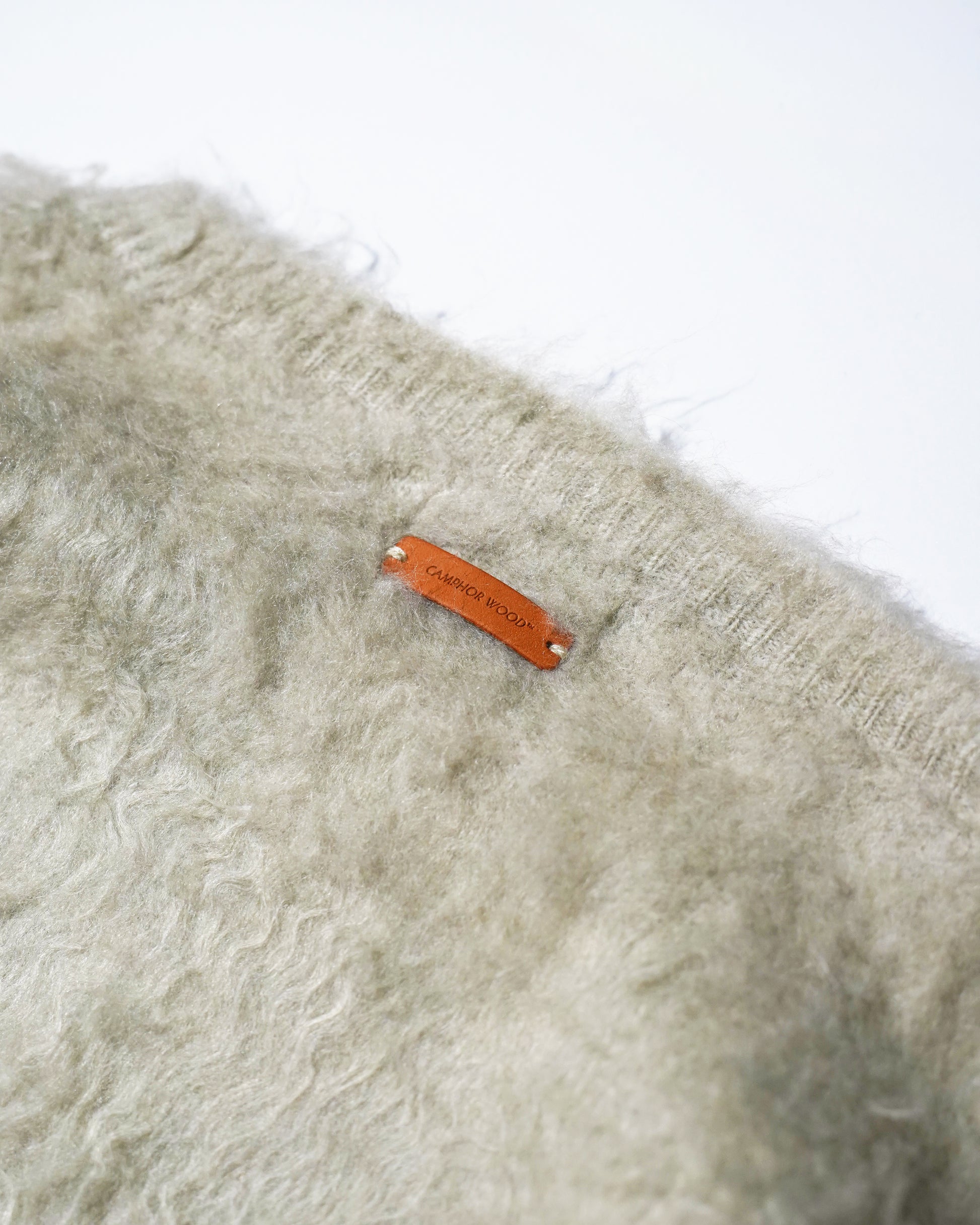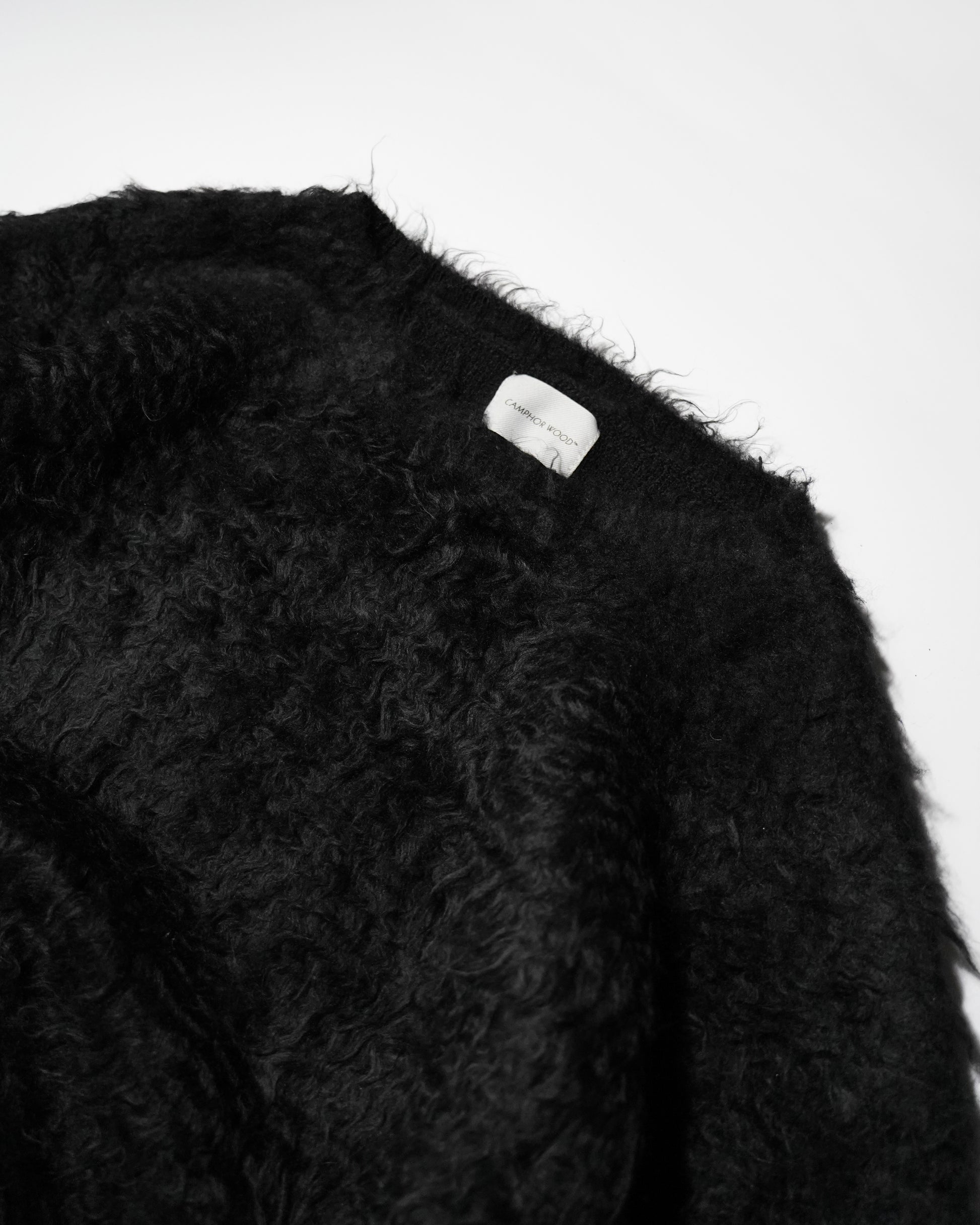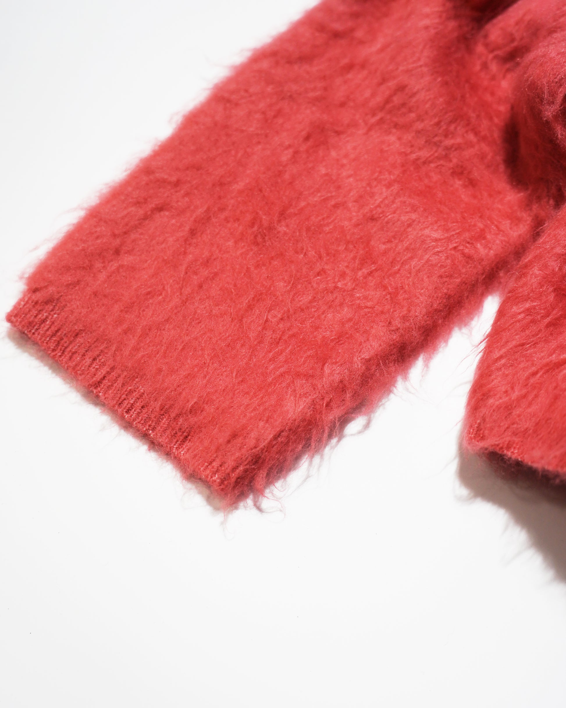 アクリルを主軸とした糸に起毛加工を施し、ヴィンテージモヘア特有の長い毛足と柔らかな陰影を再現。ショートレングスとゆとりある身幅の組み合わせが、レイヤードでも単体でもバランスよく収まりに。
