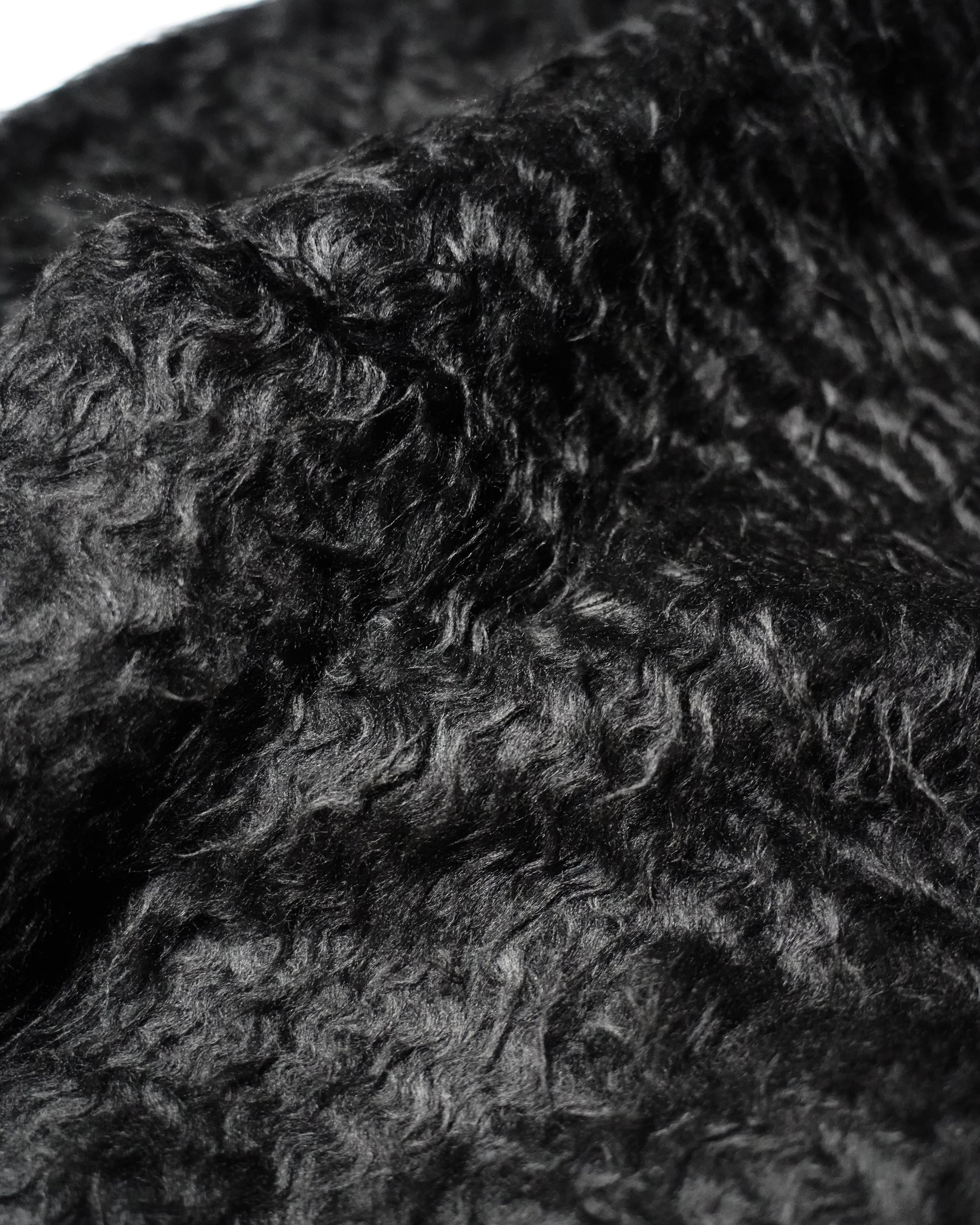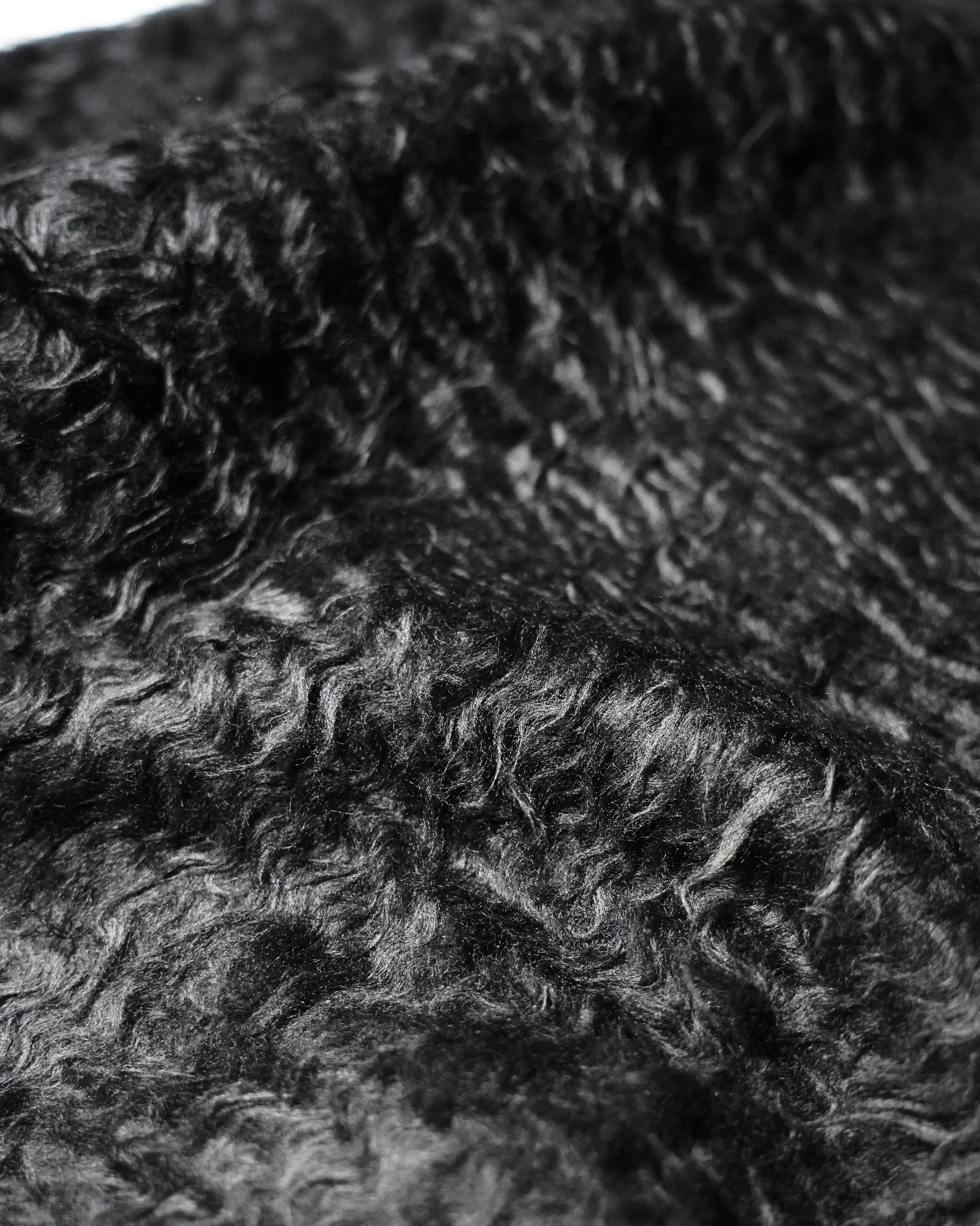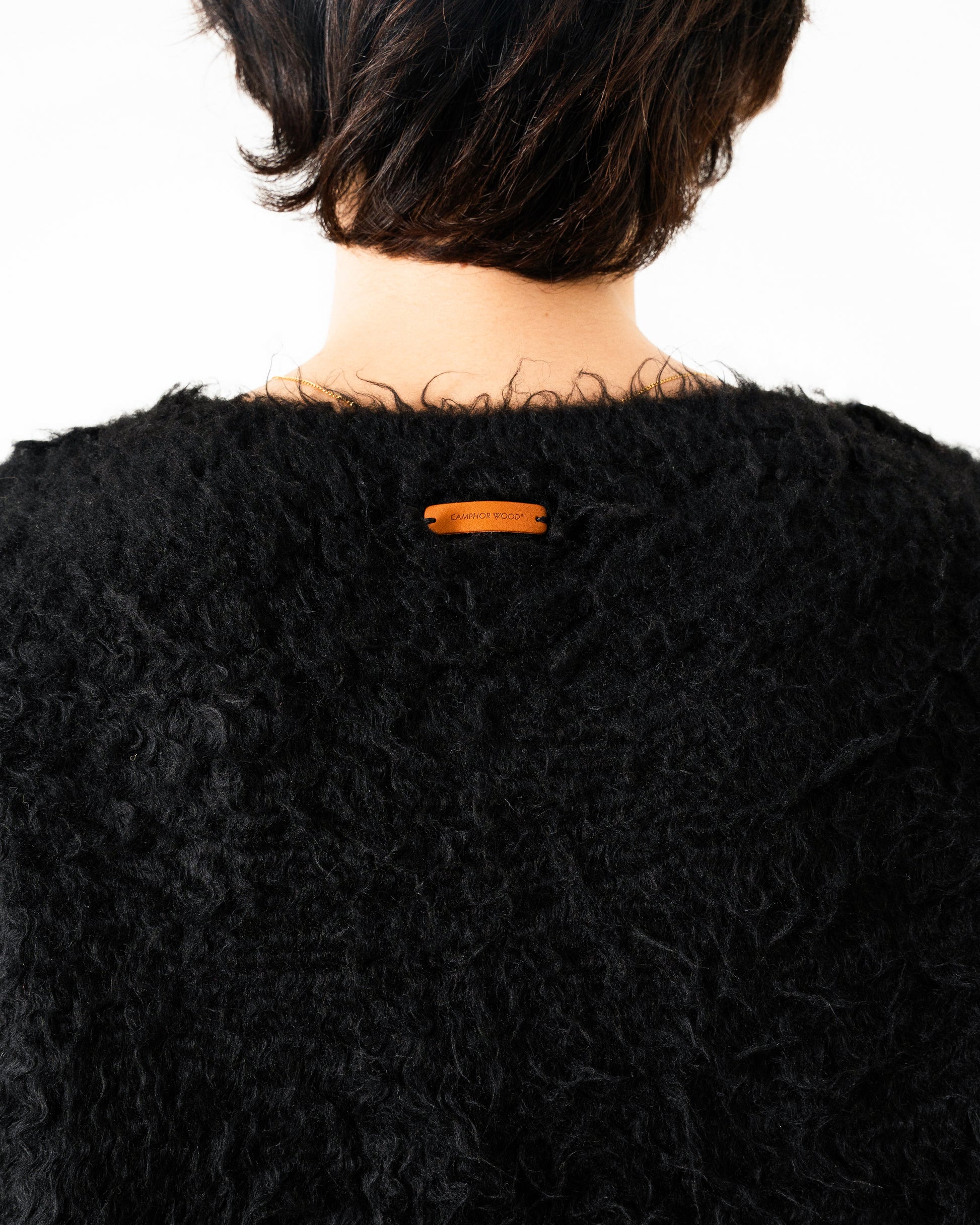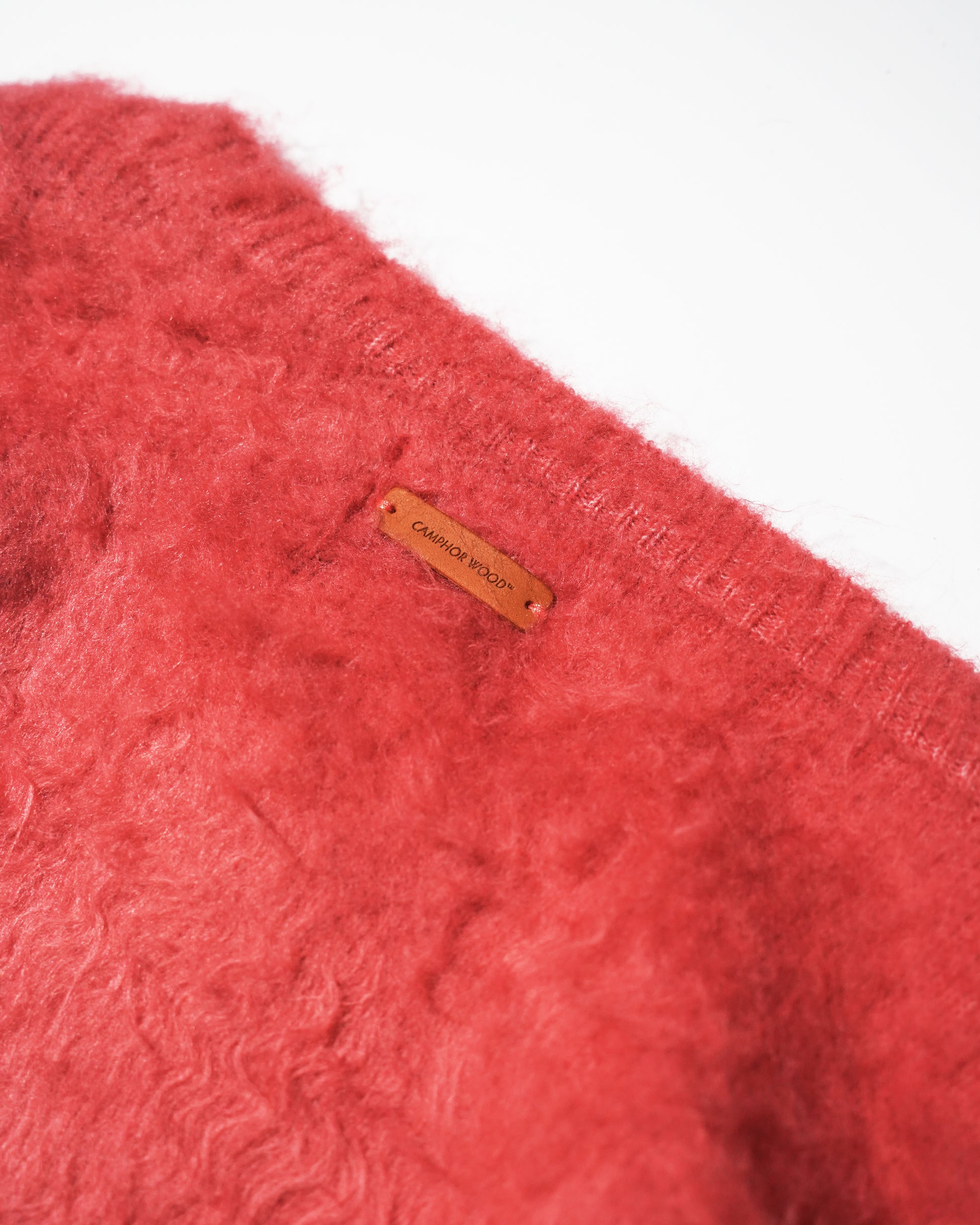 アクリルを主軸とした糸に起毛加工を施し、ヴィンテージモヘア特有の長い毛足と柔らかな陰影を再現。ショートレングスとゆとりある身幅の組み合わせが、レイヤードでも単体でもバランスよく収まりに。