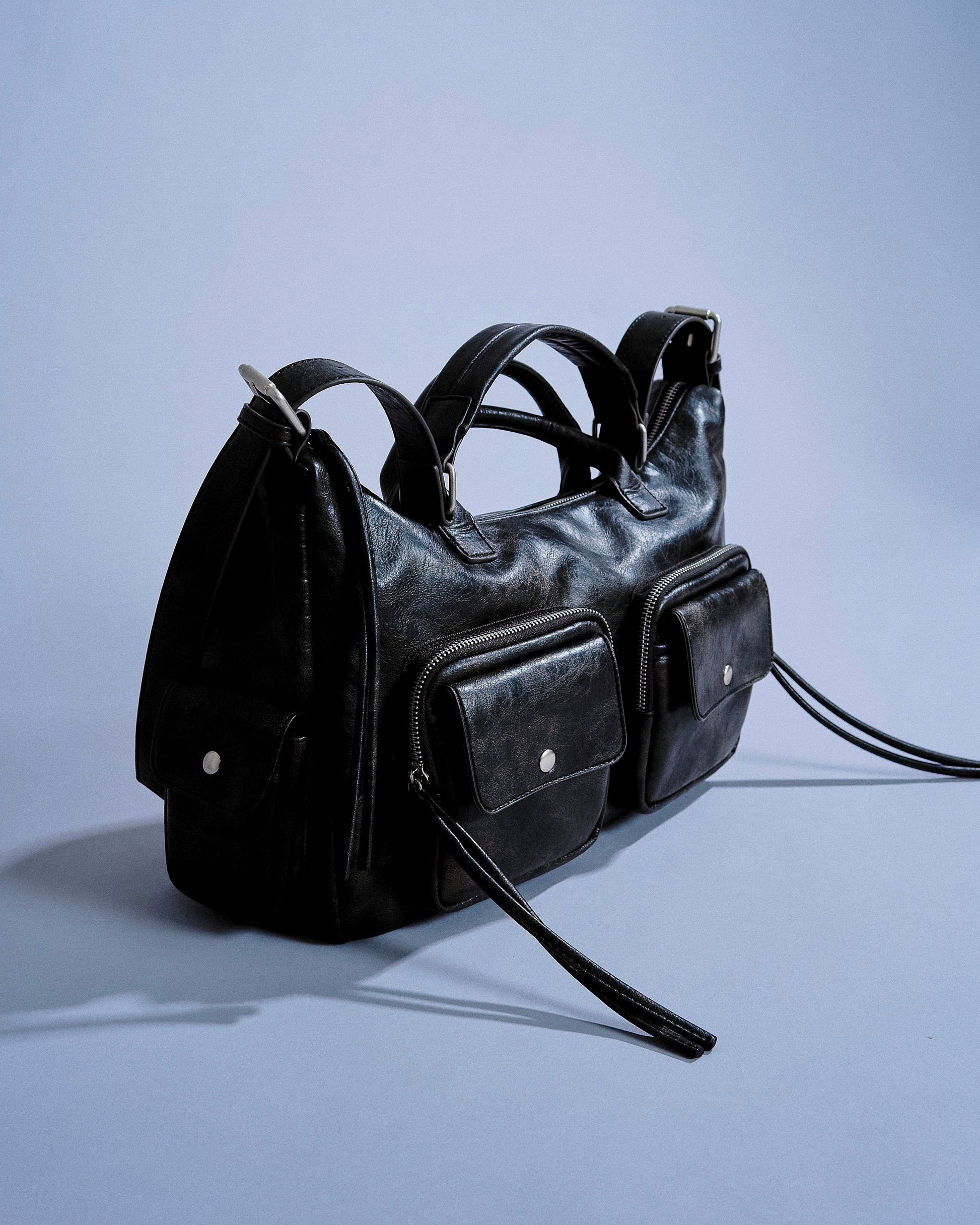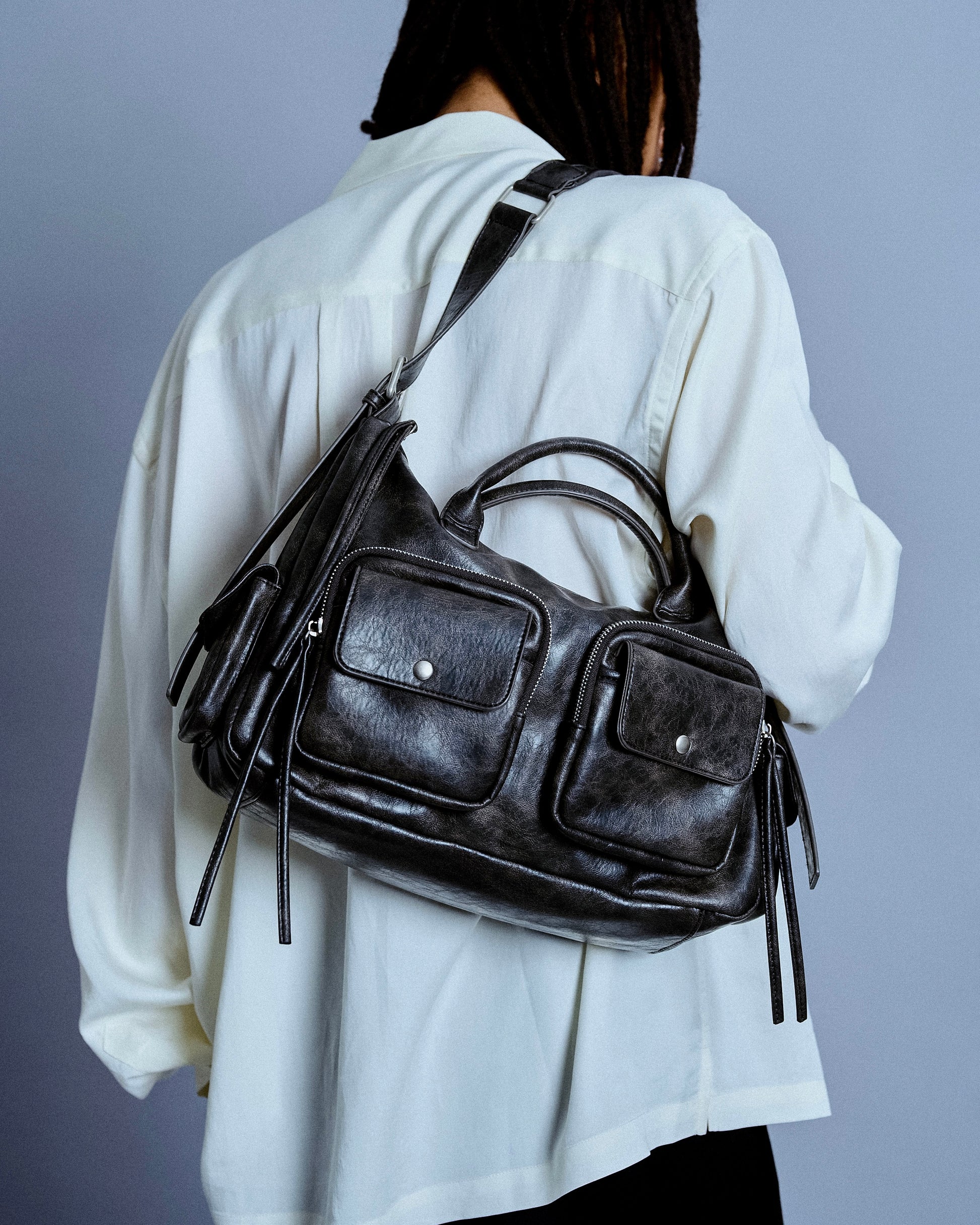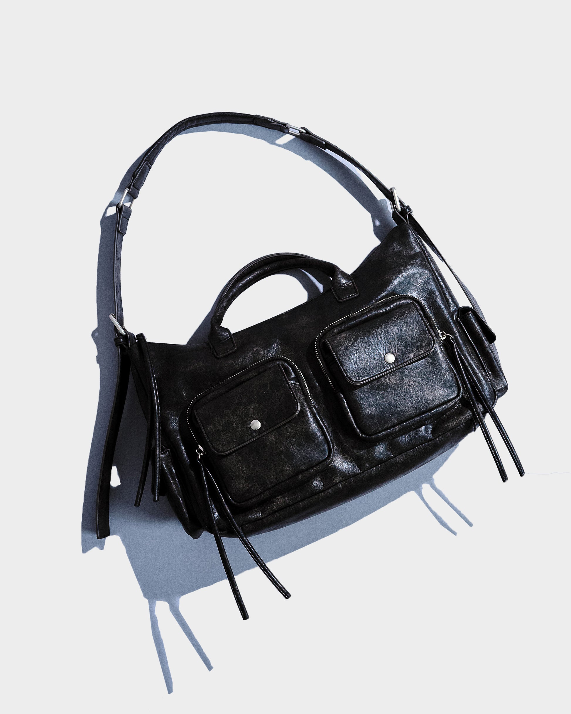 リアルレザーのような厚みを持つPUレザーを使用し、ヴィンテージのような表情と扱いやすさを兼ね備えた一点。ハンドキャリーとしてもショルダースタイルとしても扱える2way仕様に。
