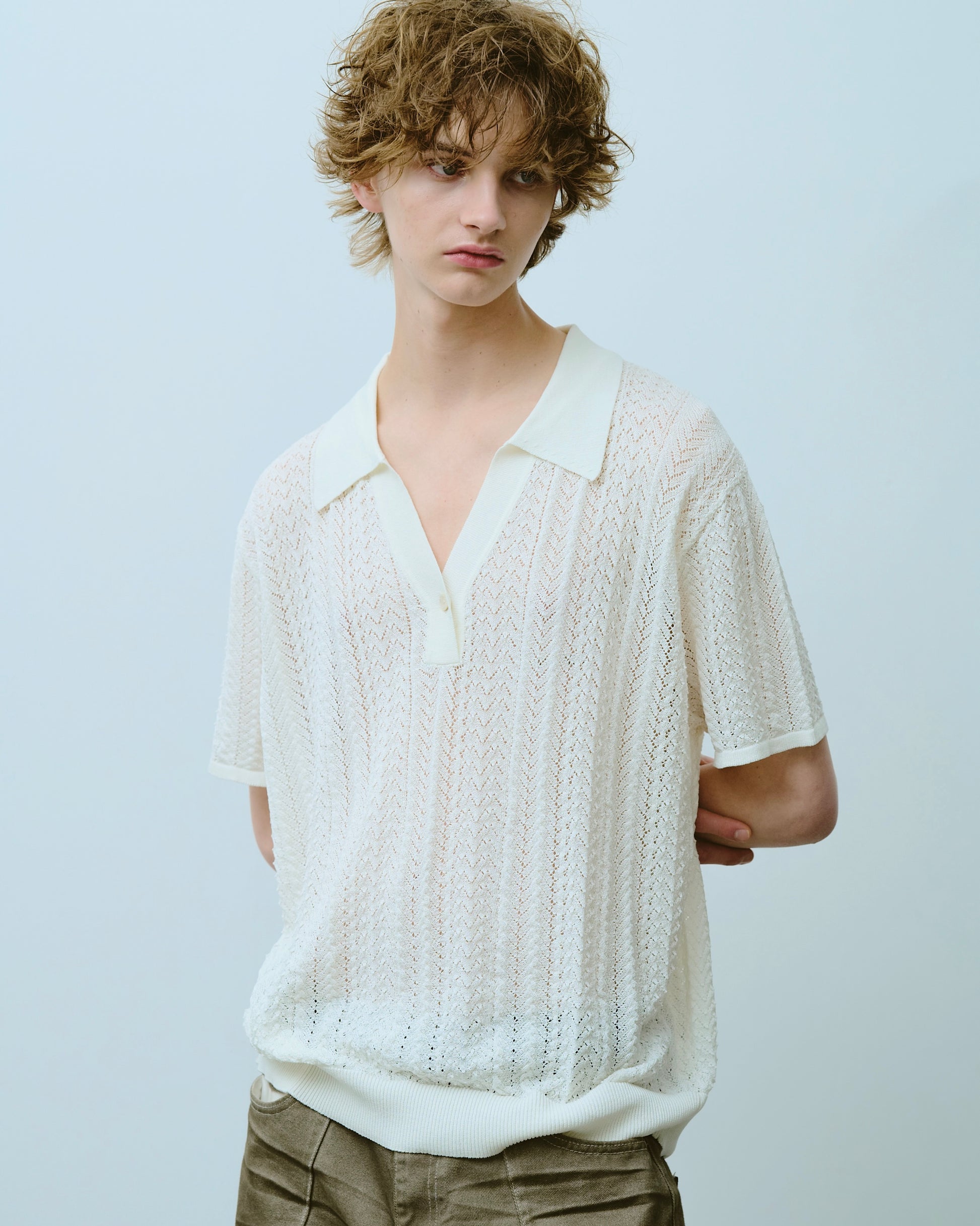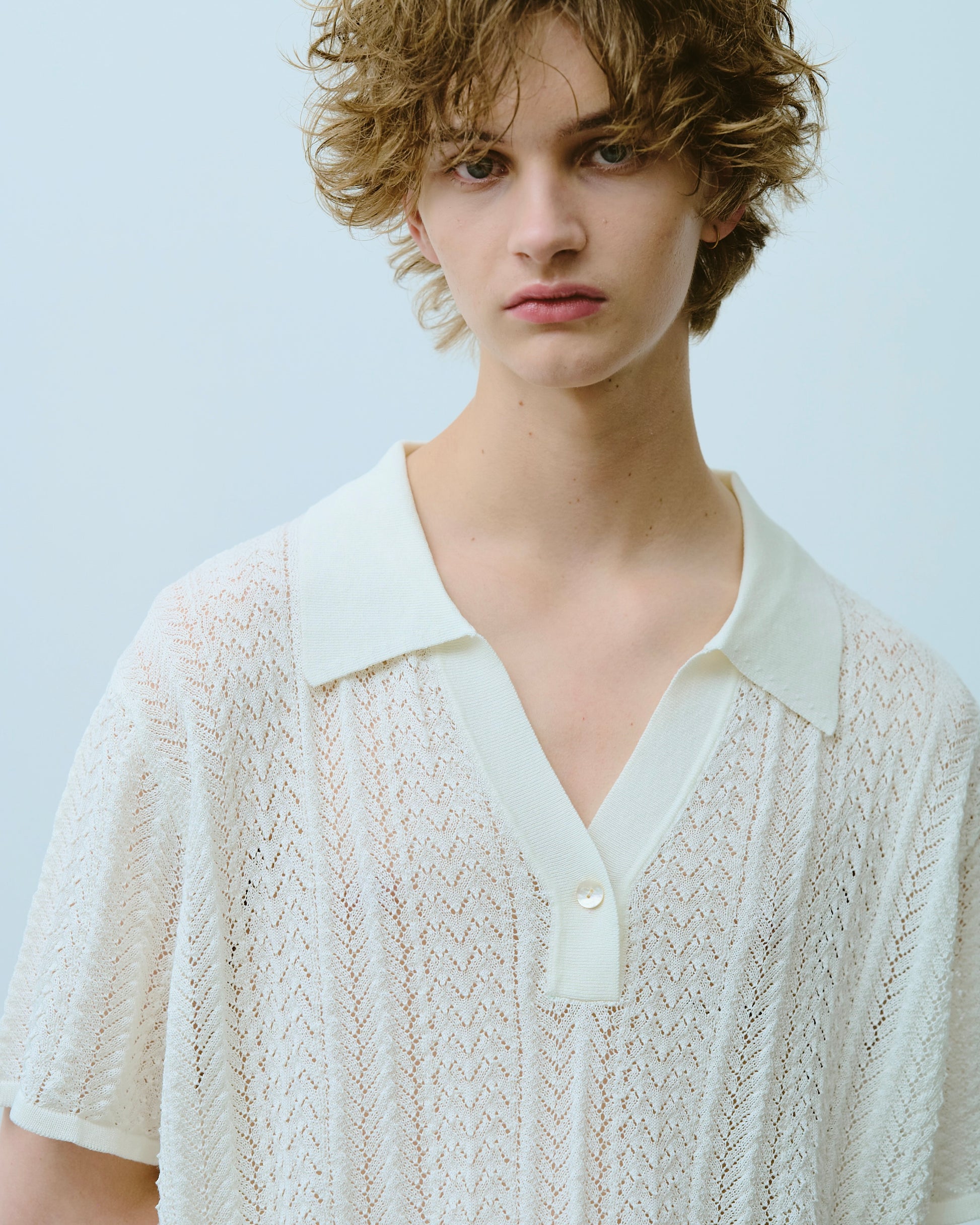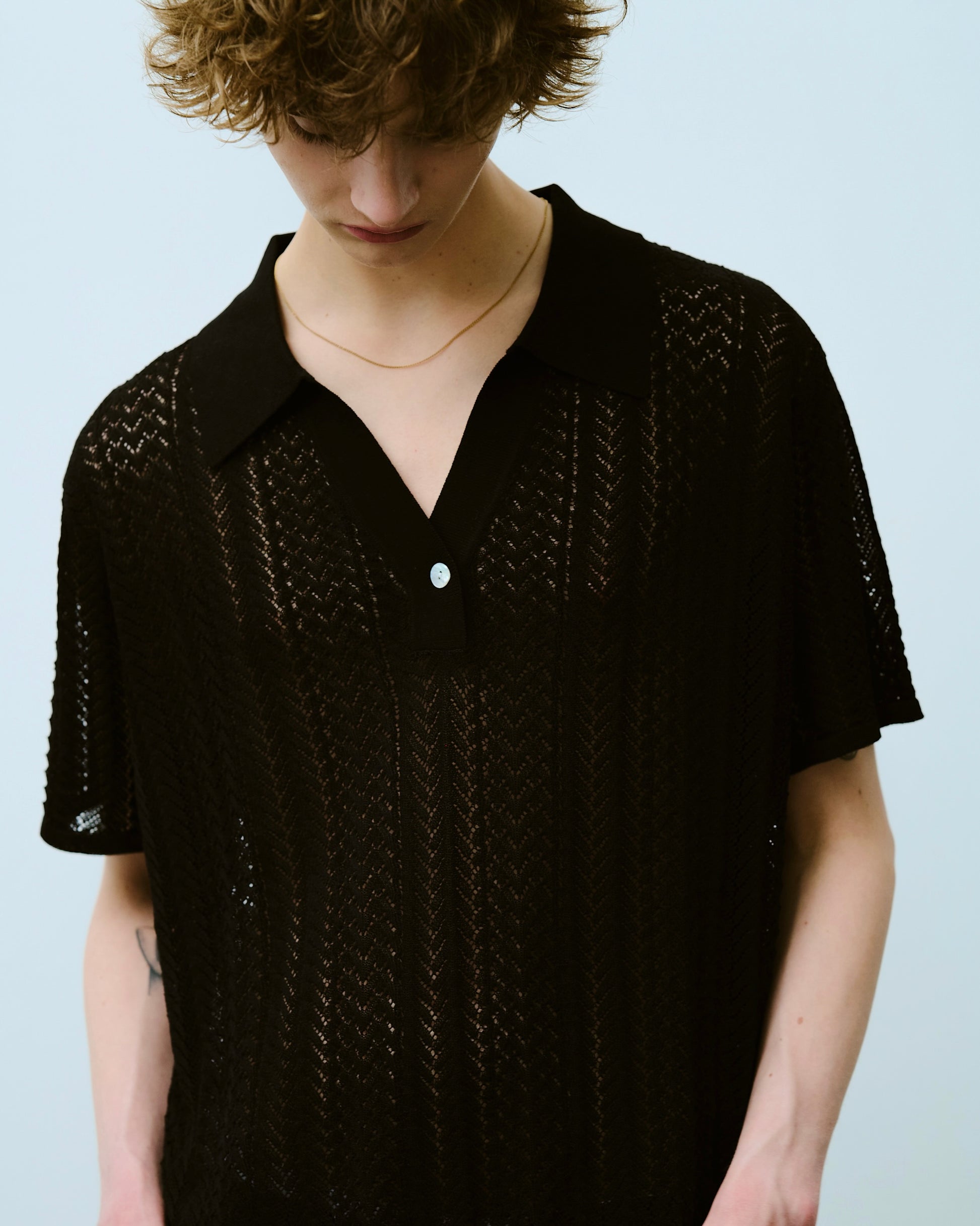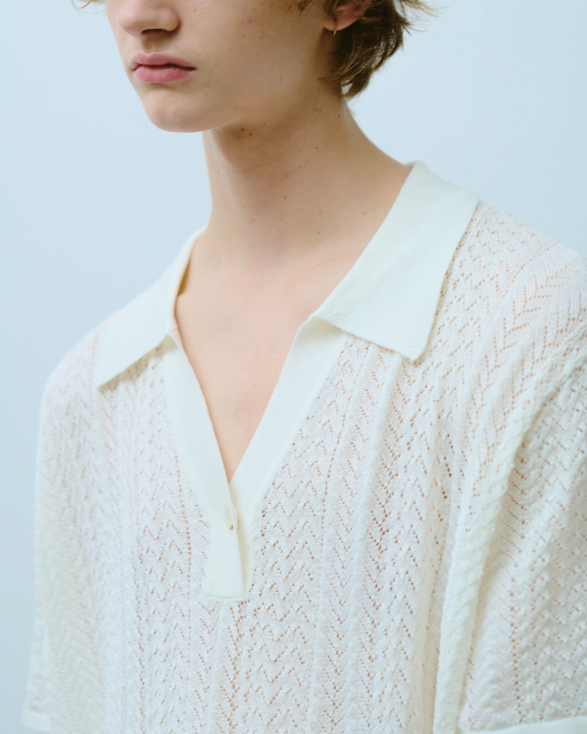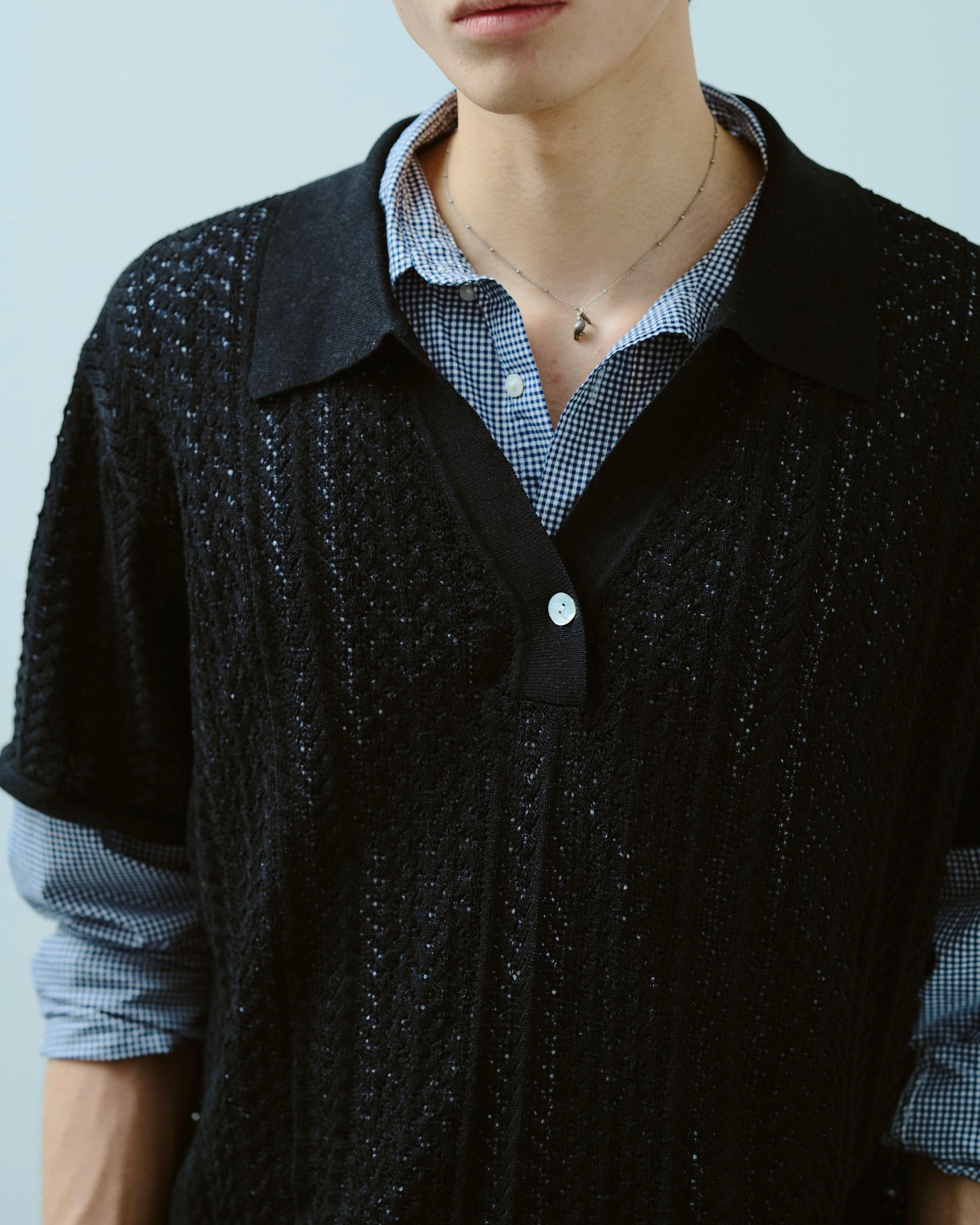 rayon openwork skipper knit shirt