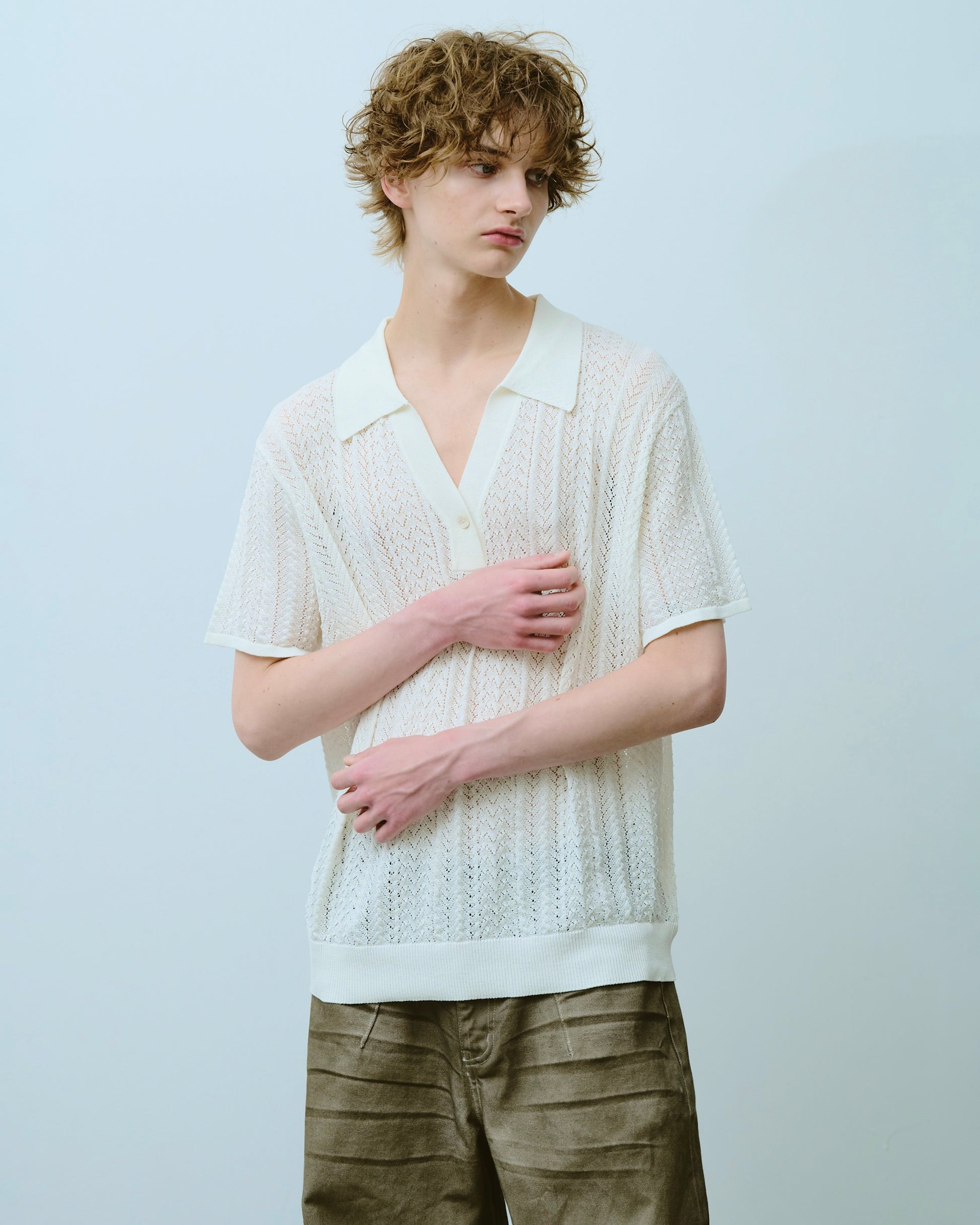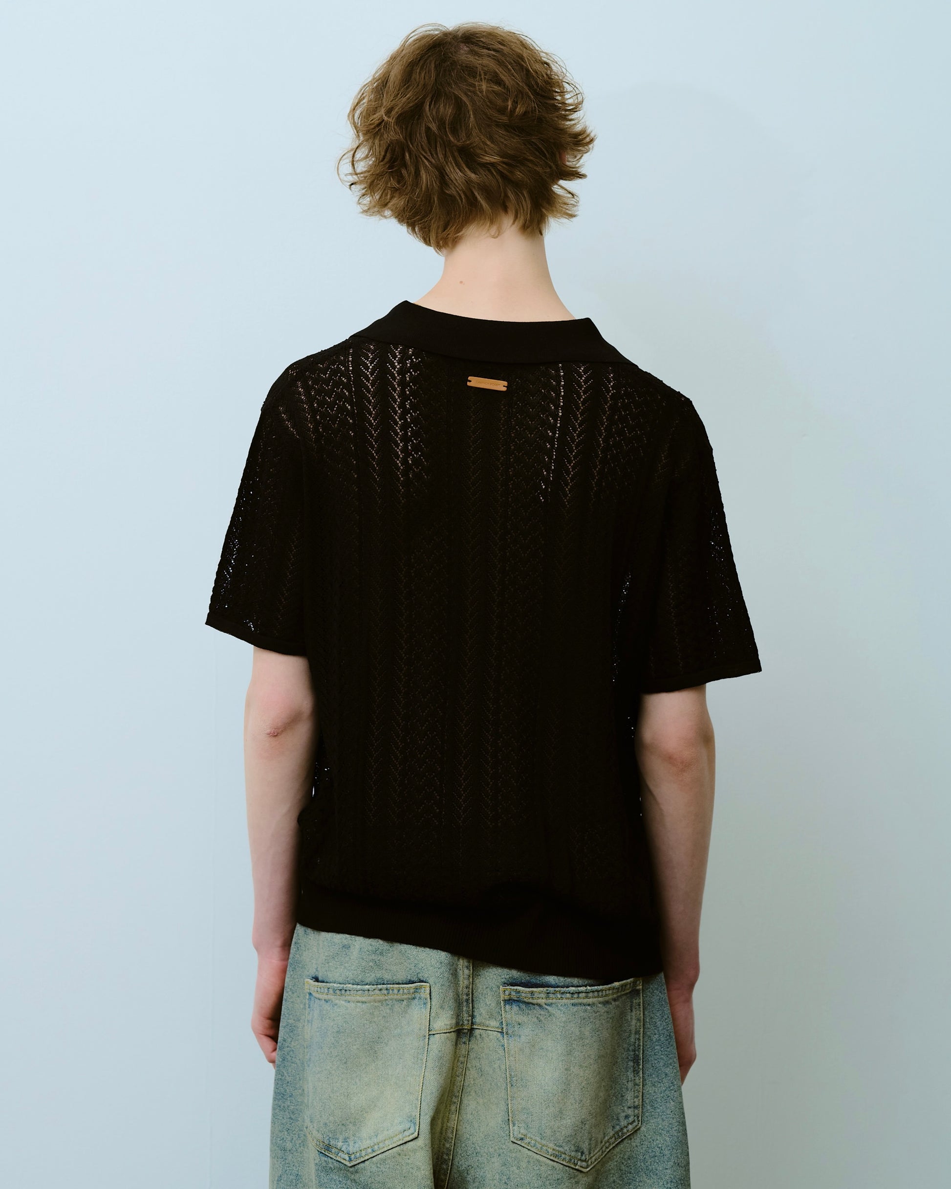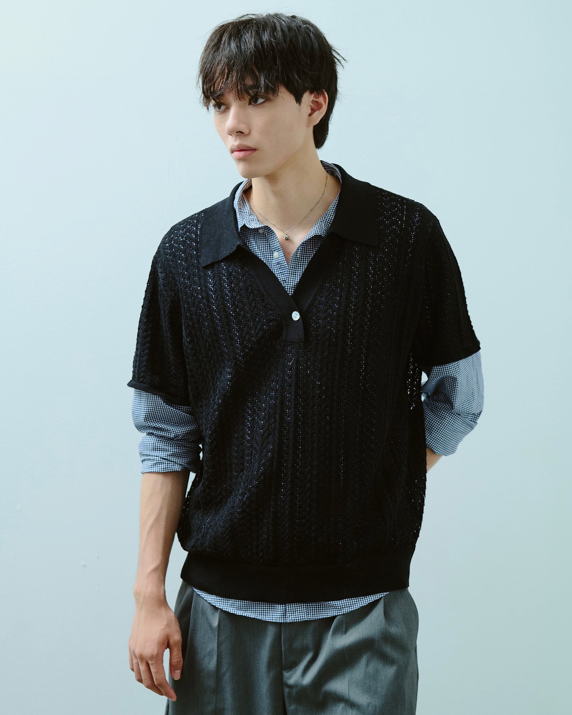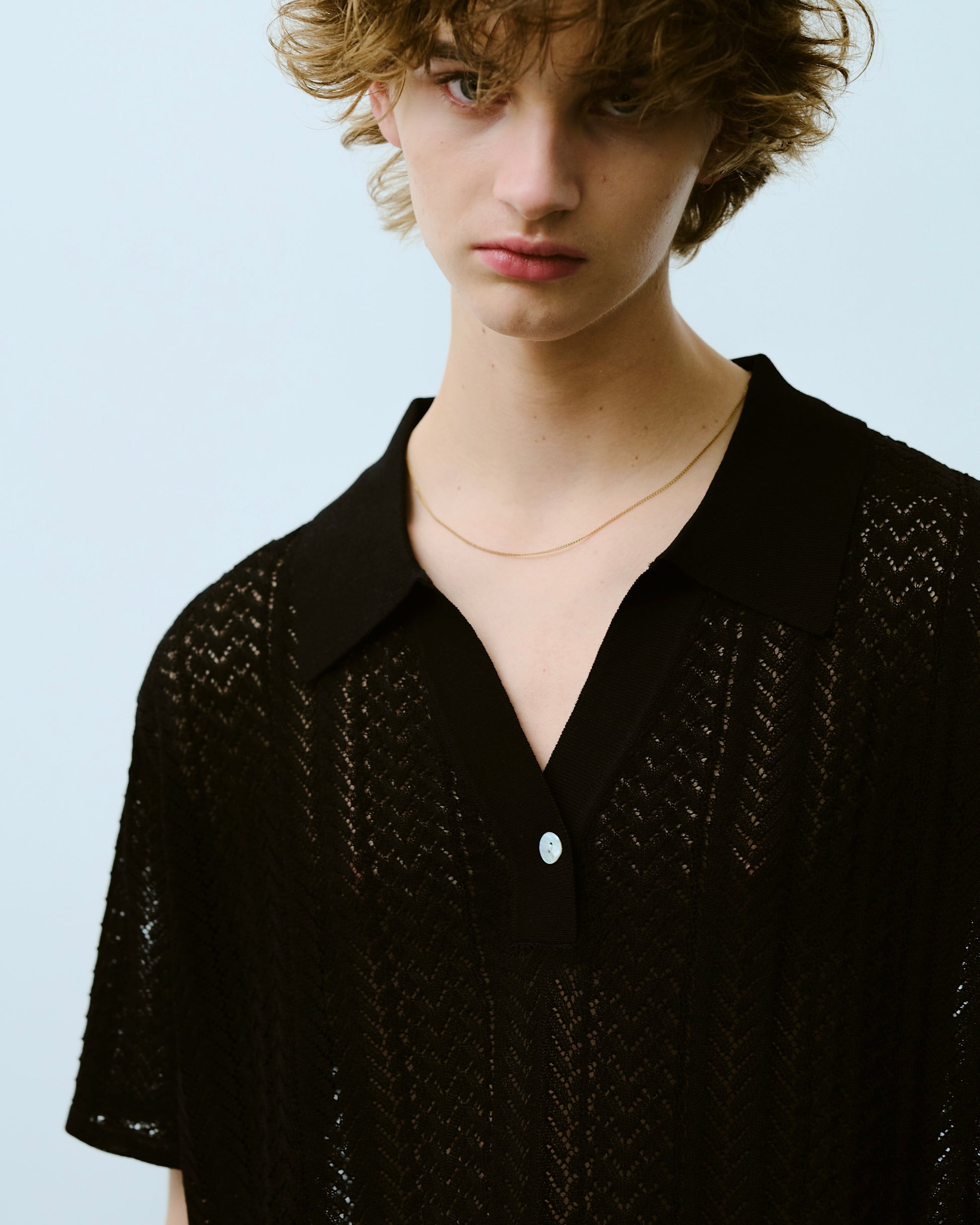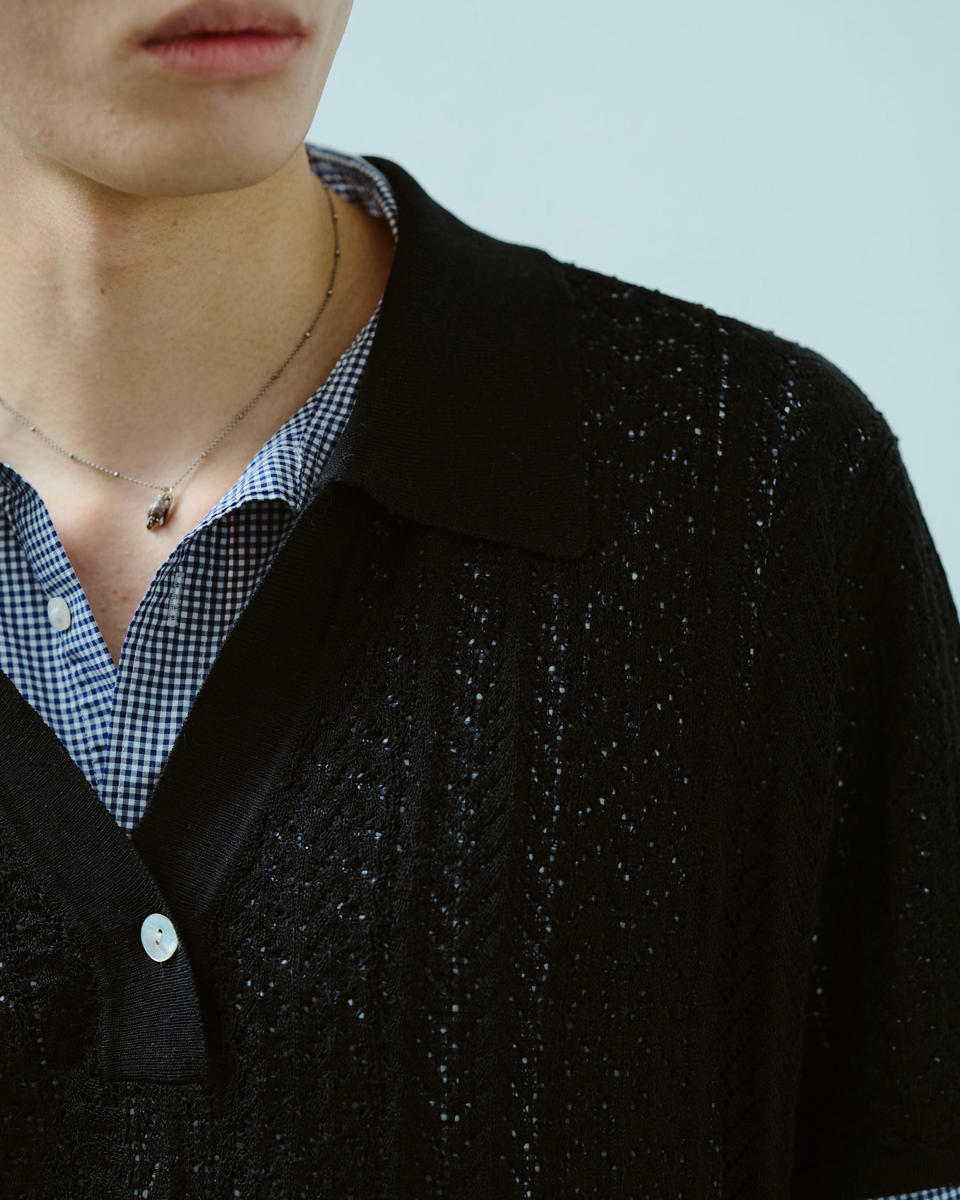 rayon openwork skipper knit shirt