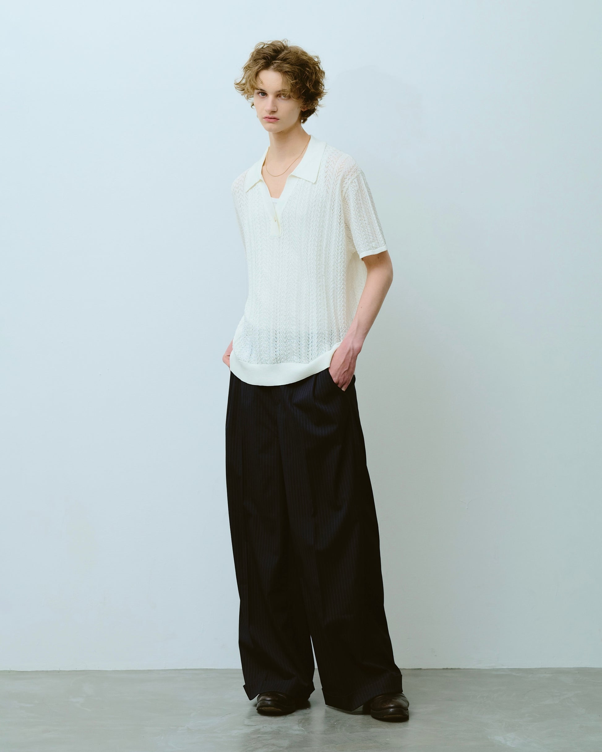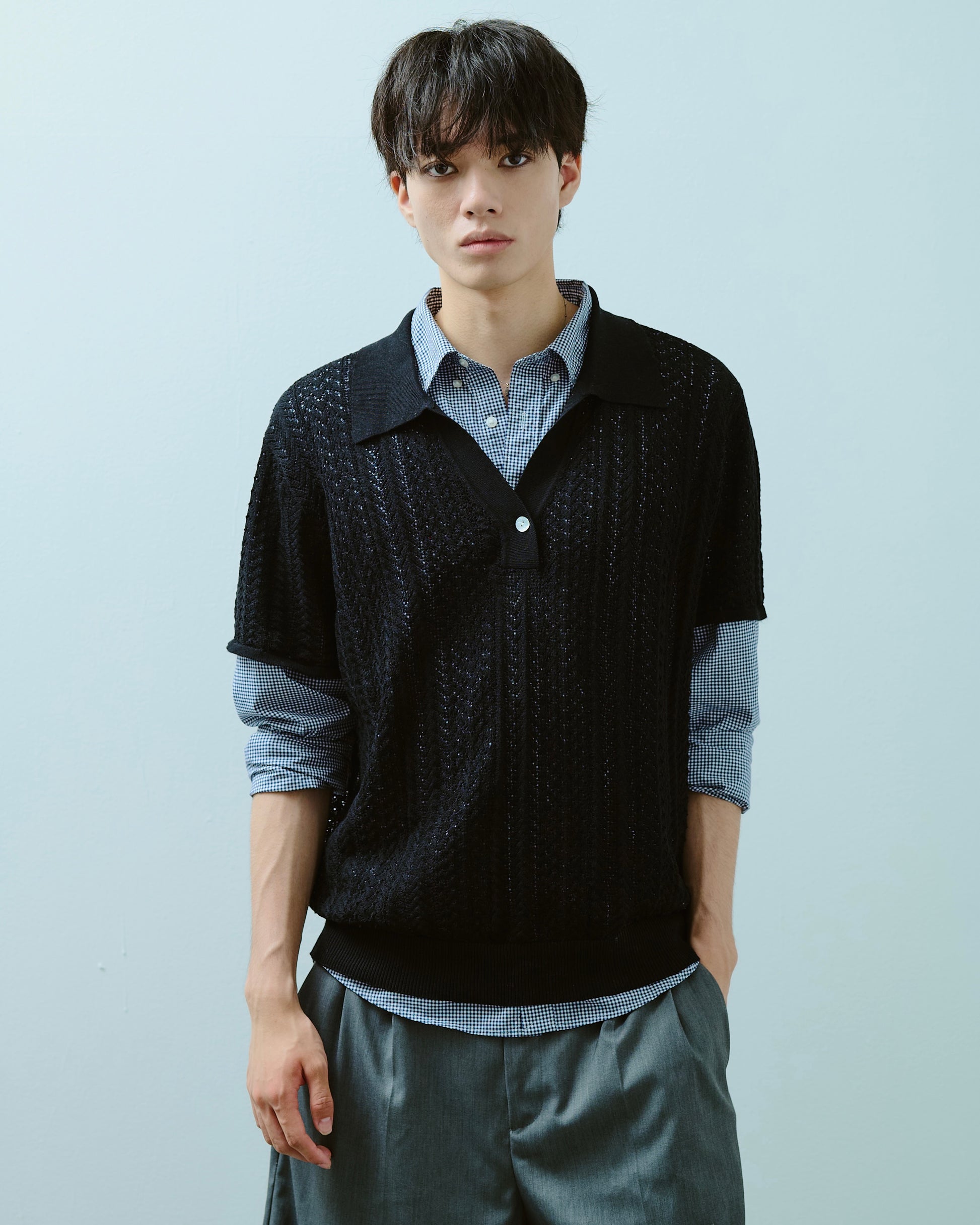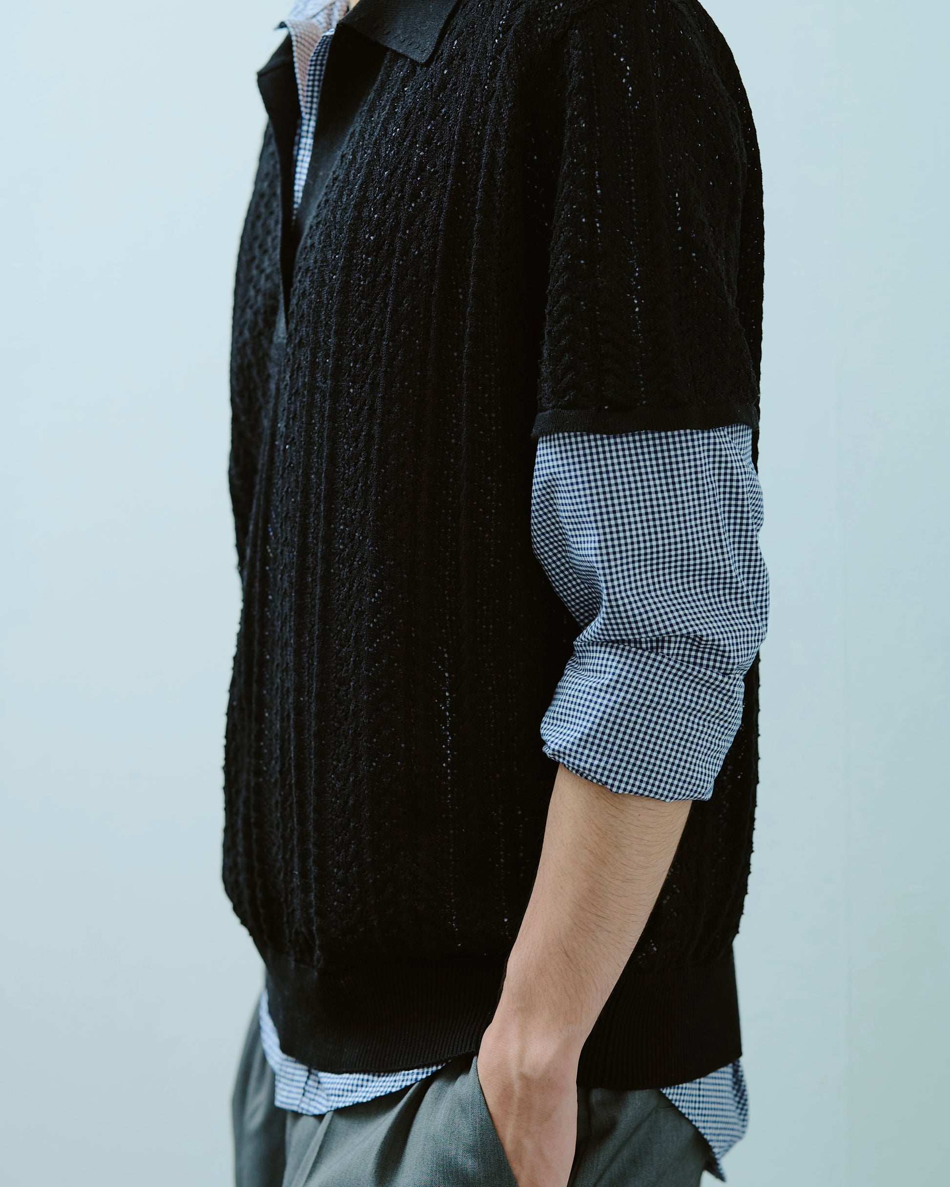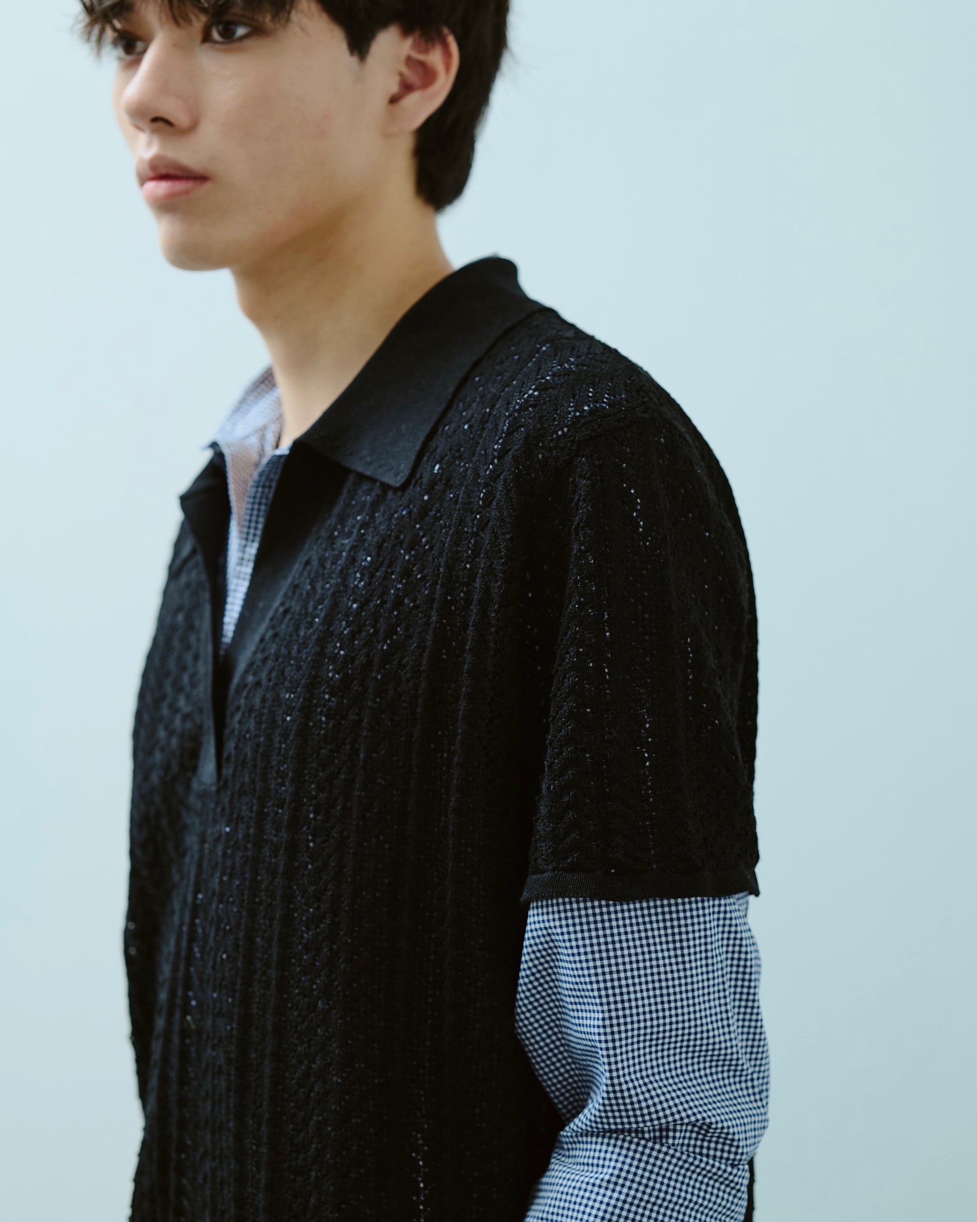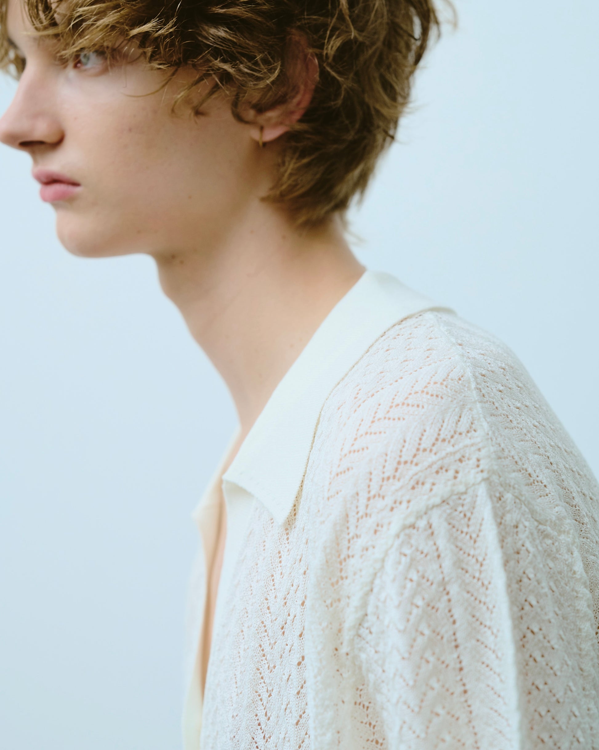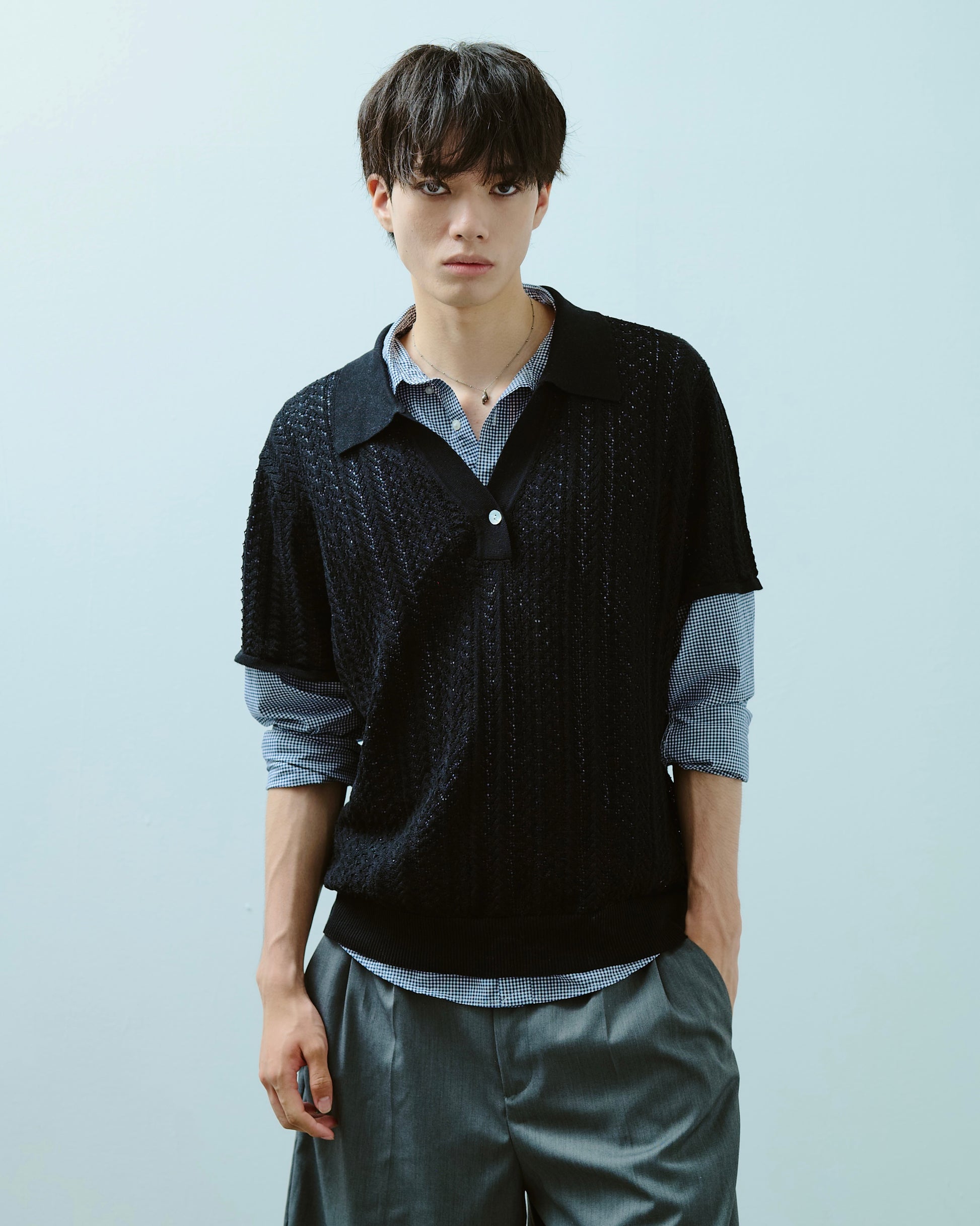 rayon openwork skipper knit shirt
