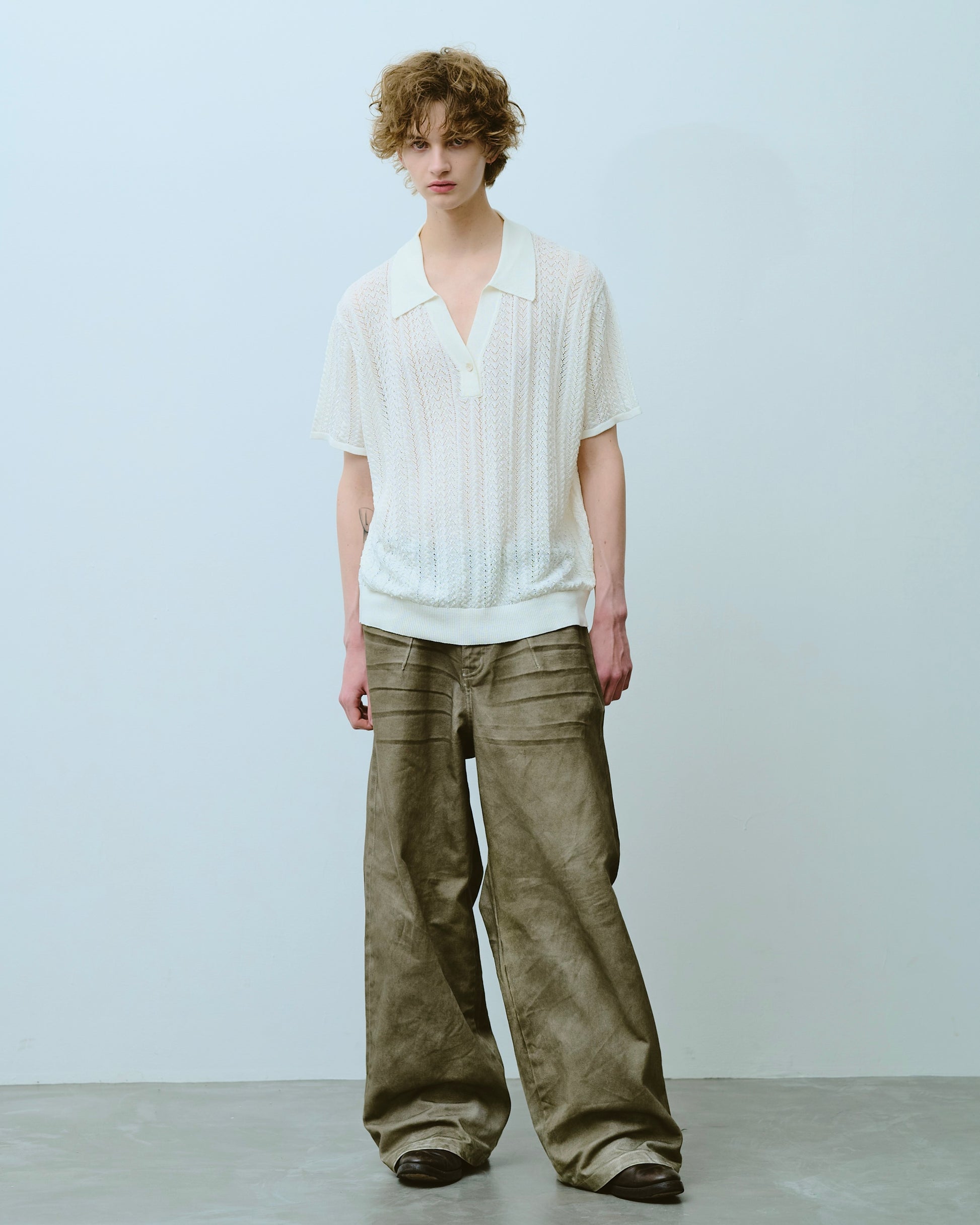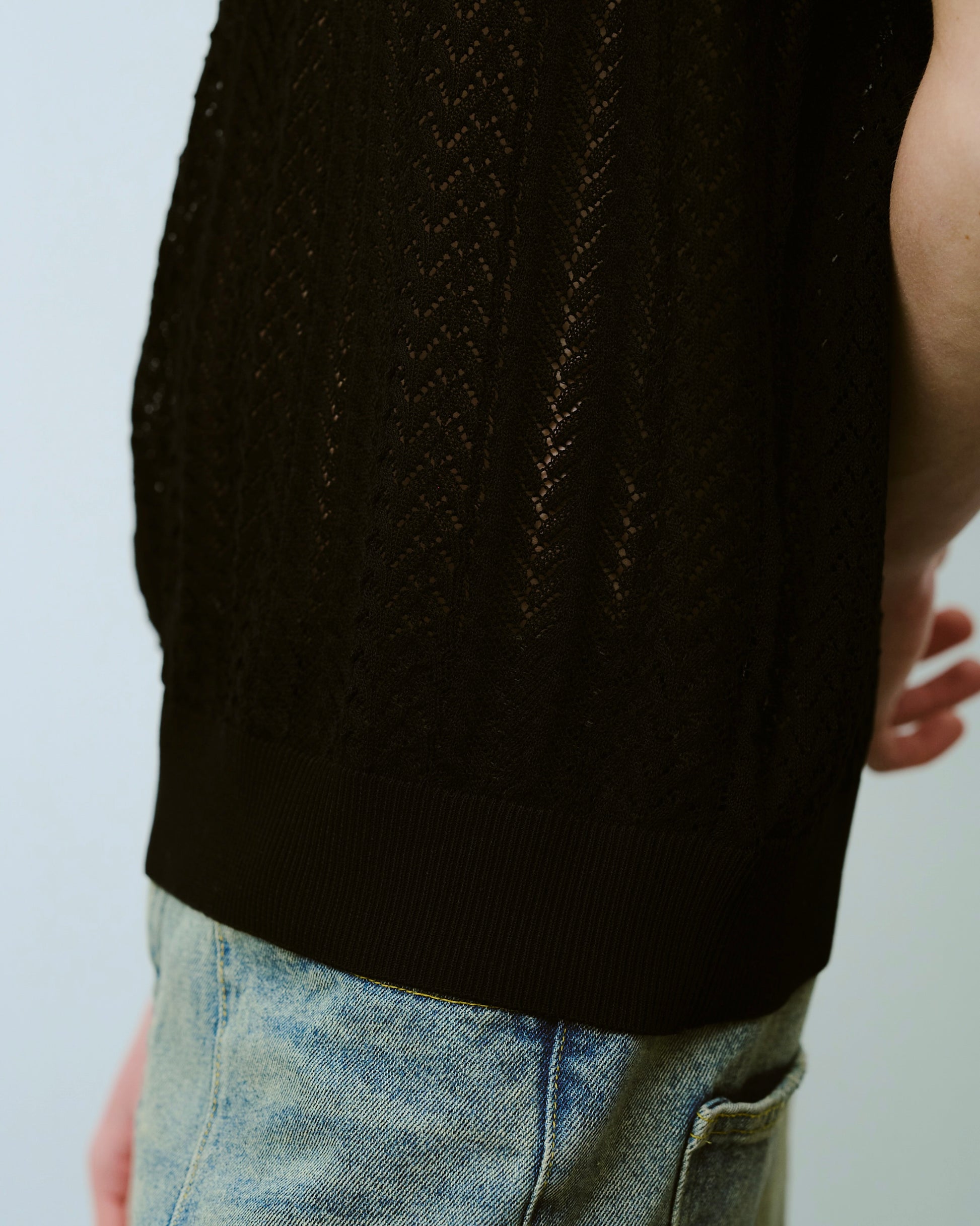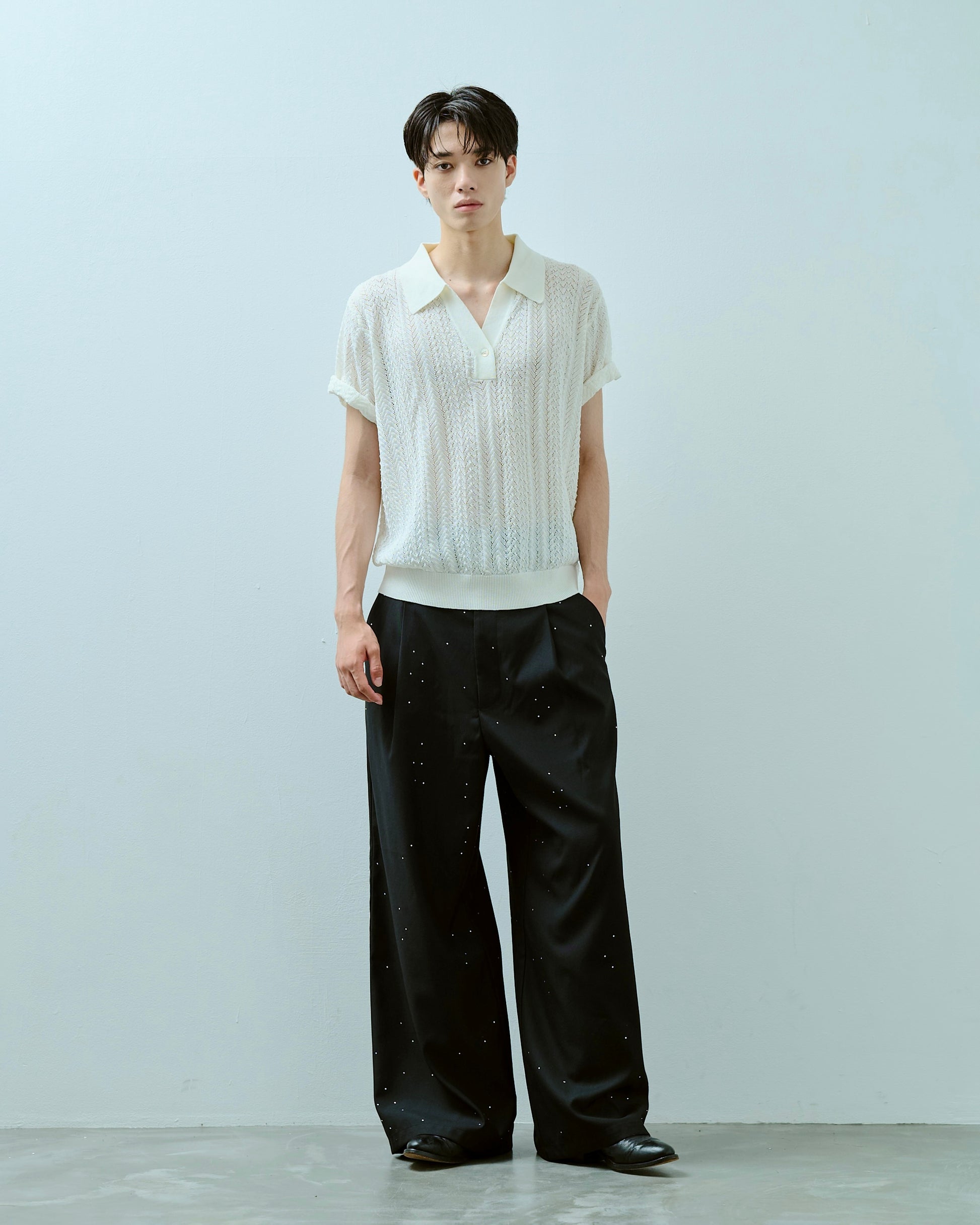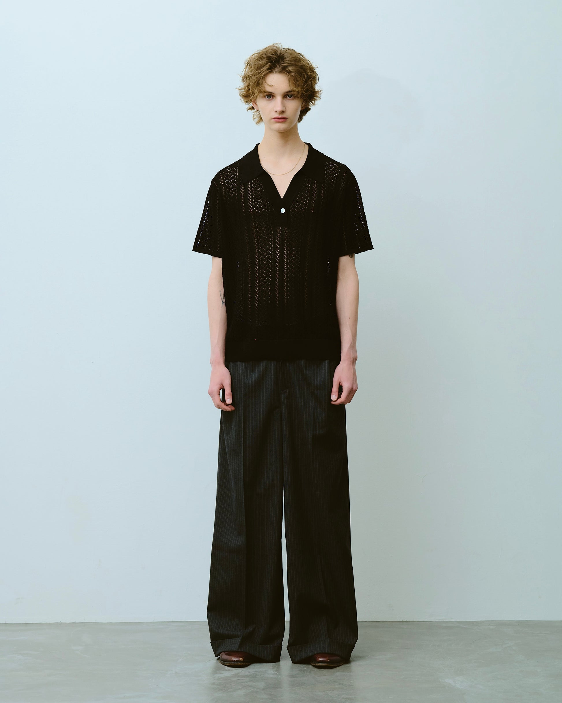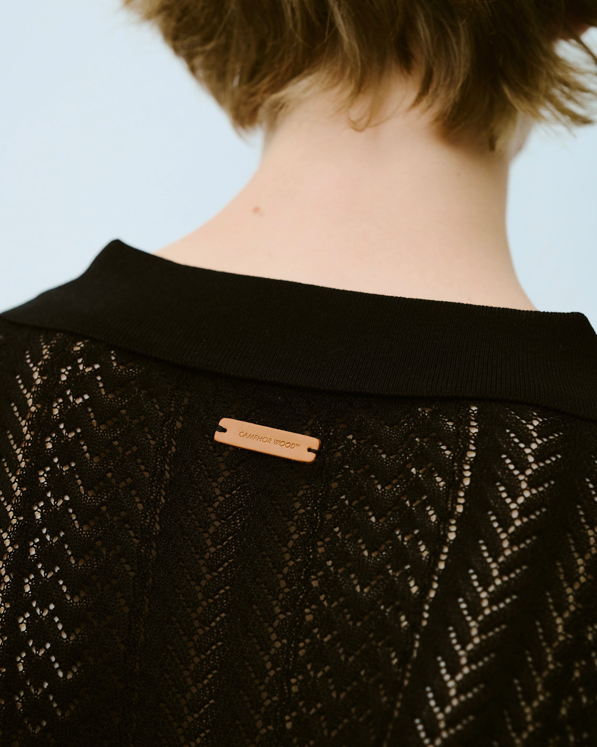 rayon openwork skipper knit shirt