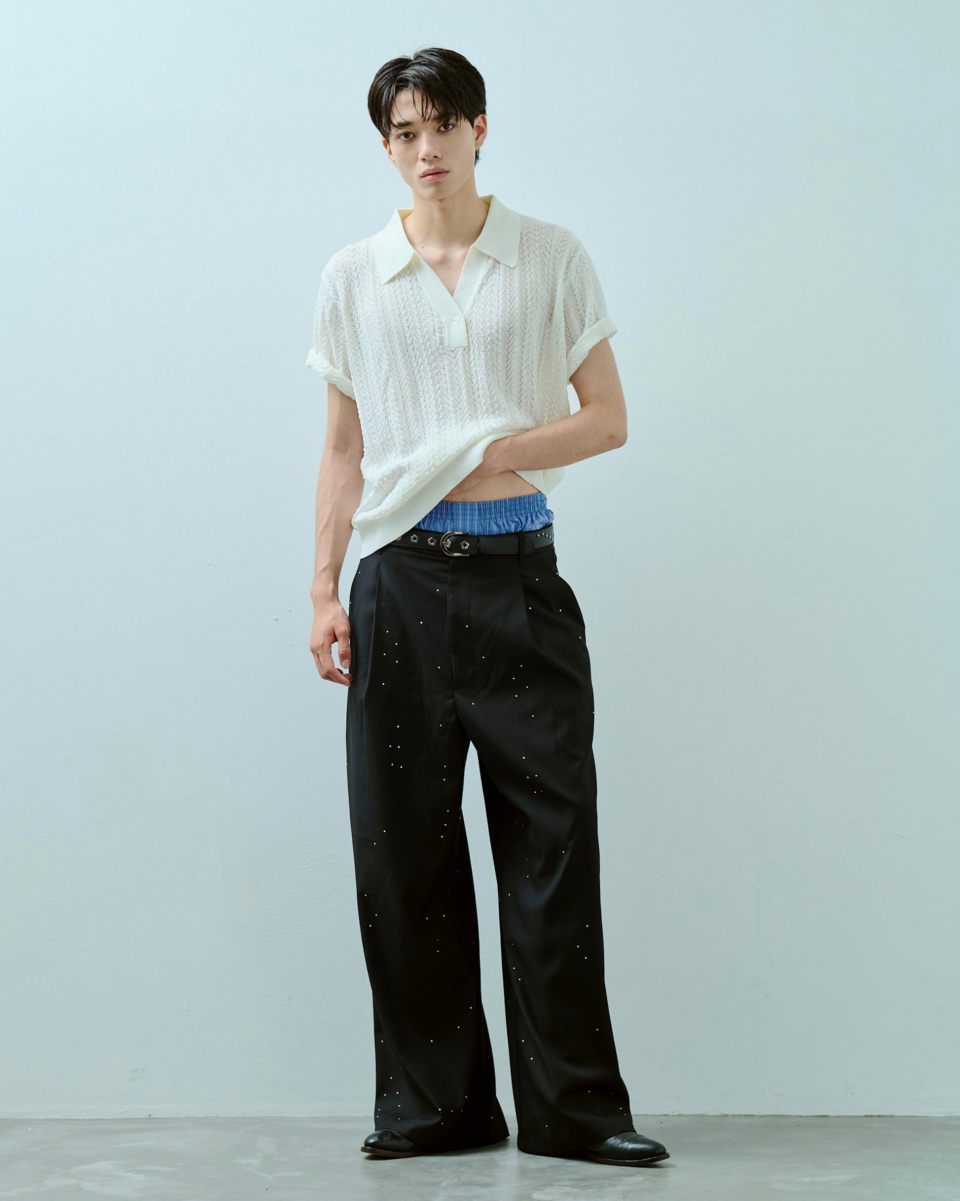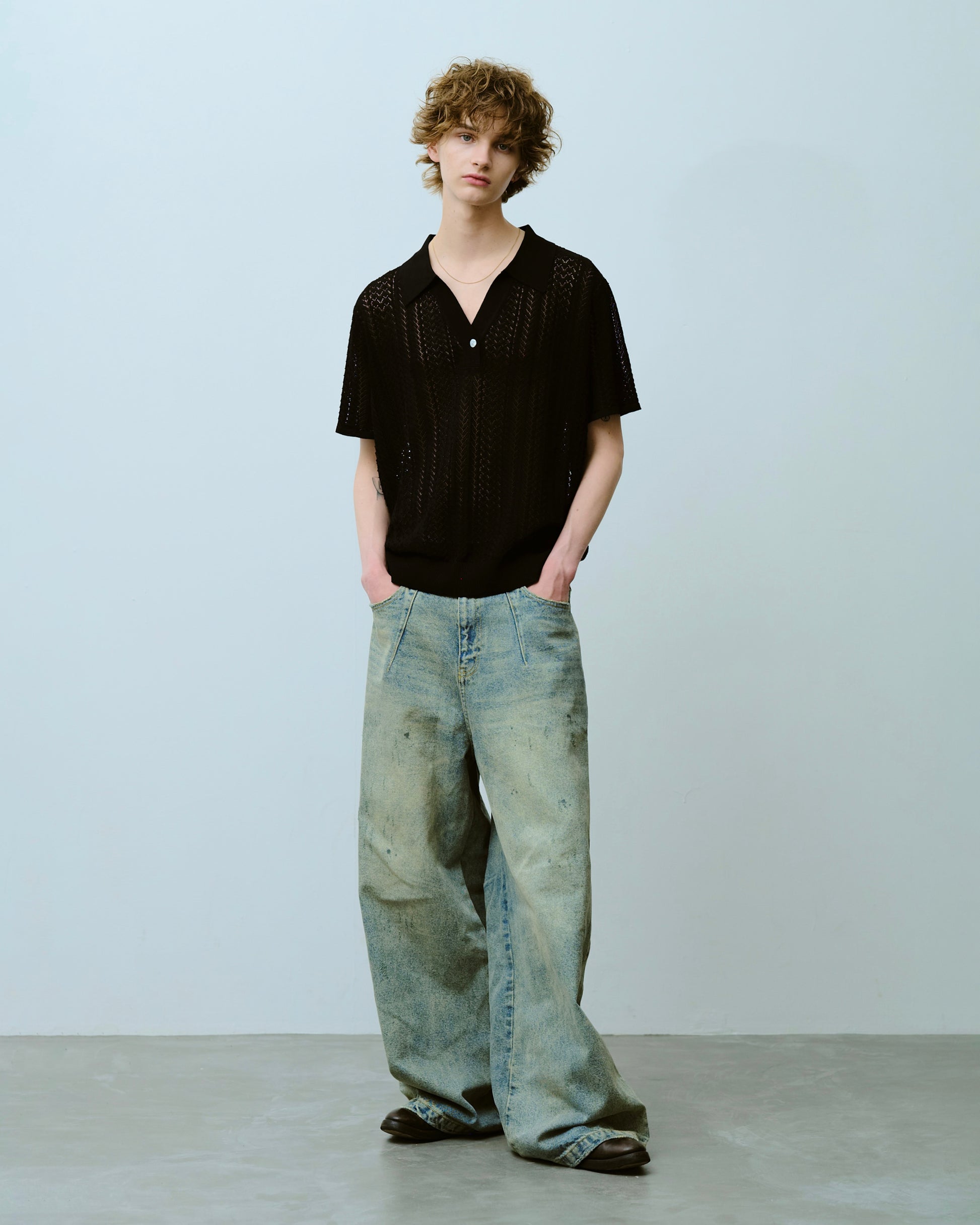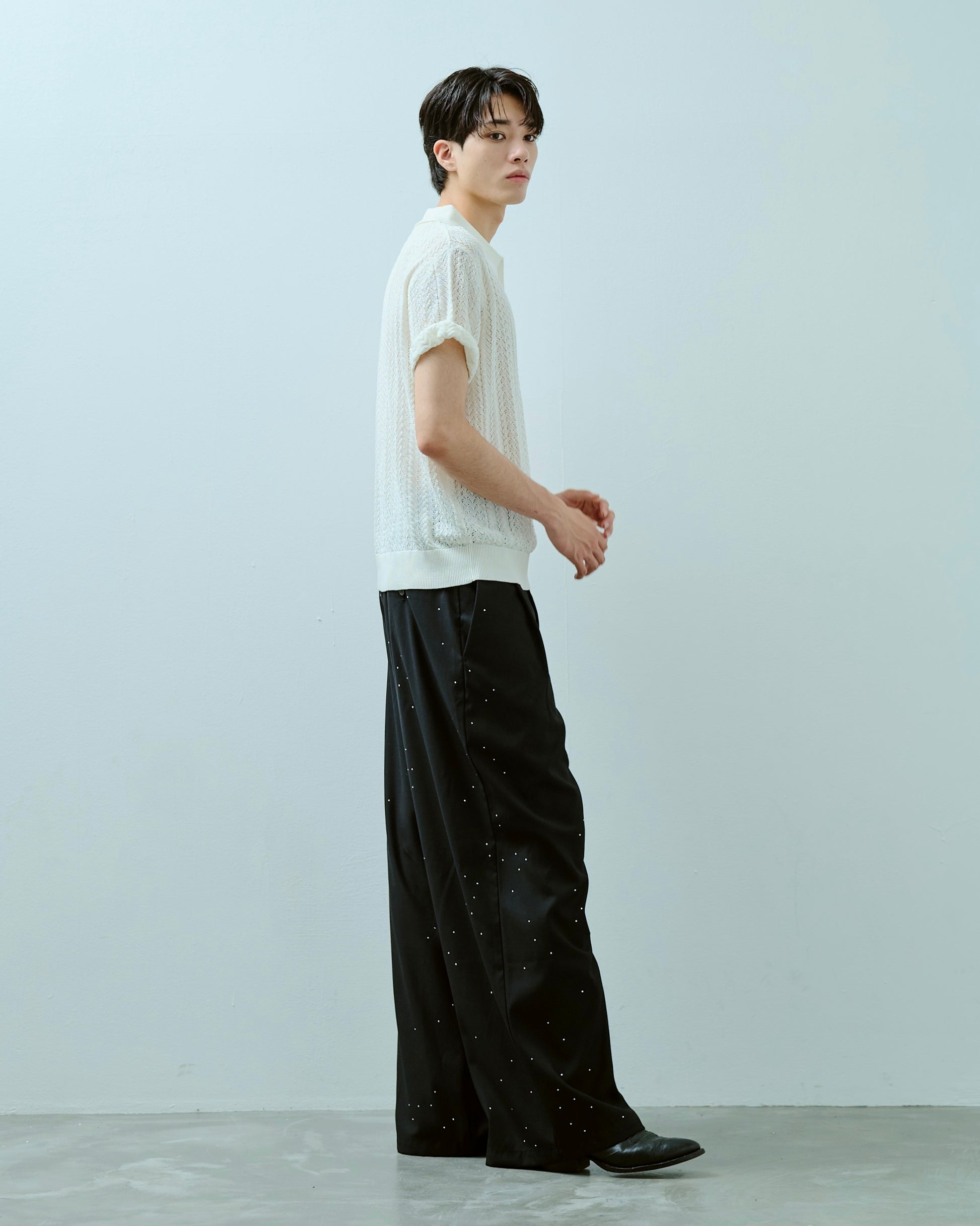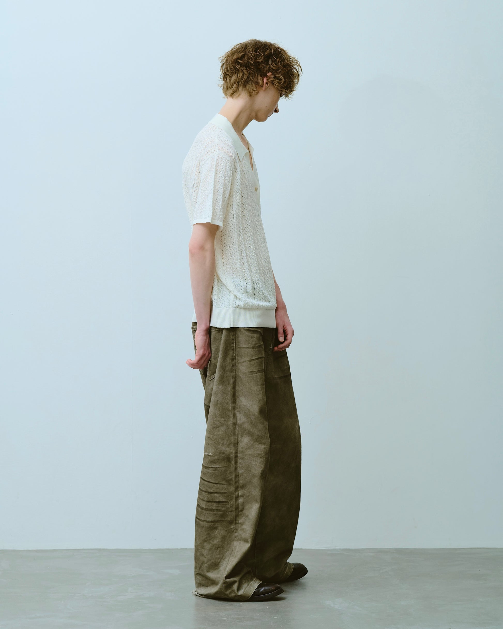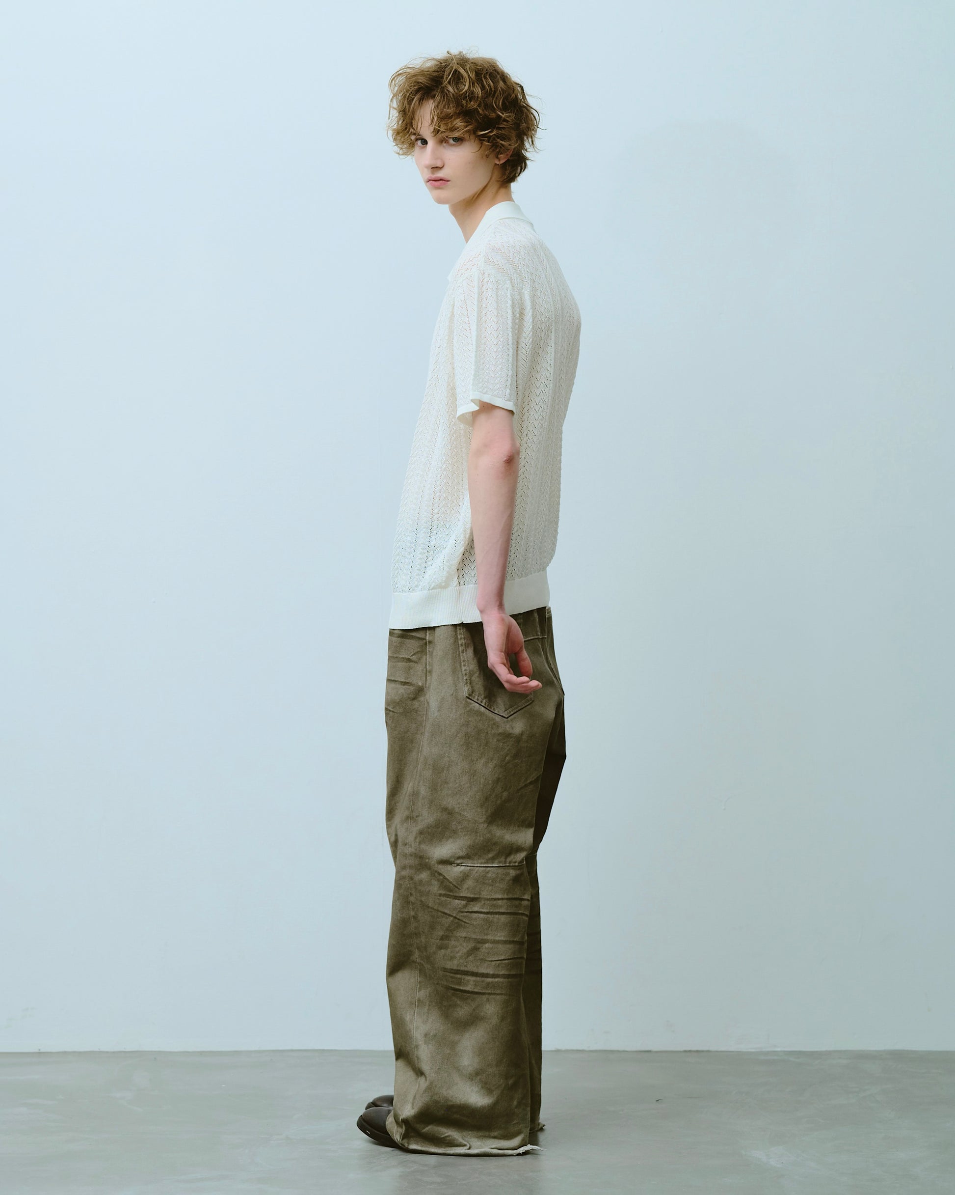 rayon openwork skipper knit shirt