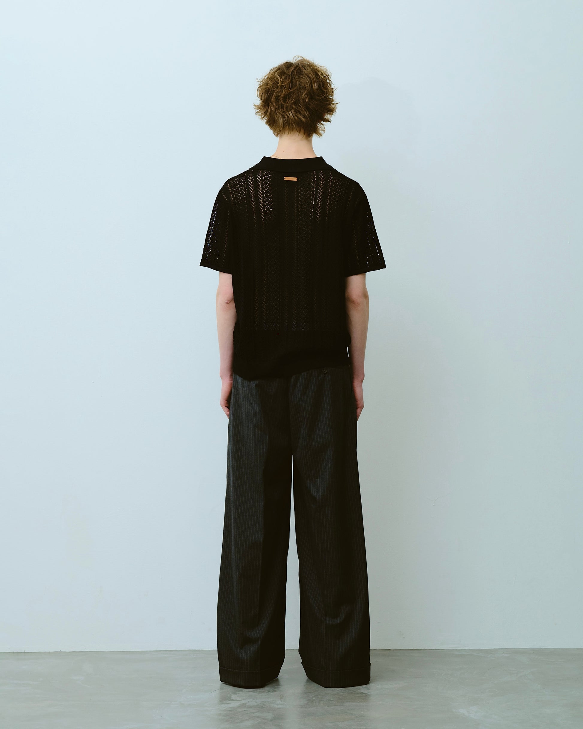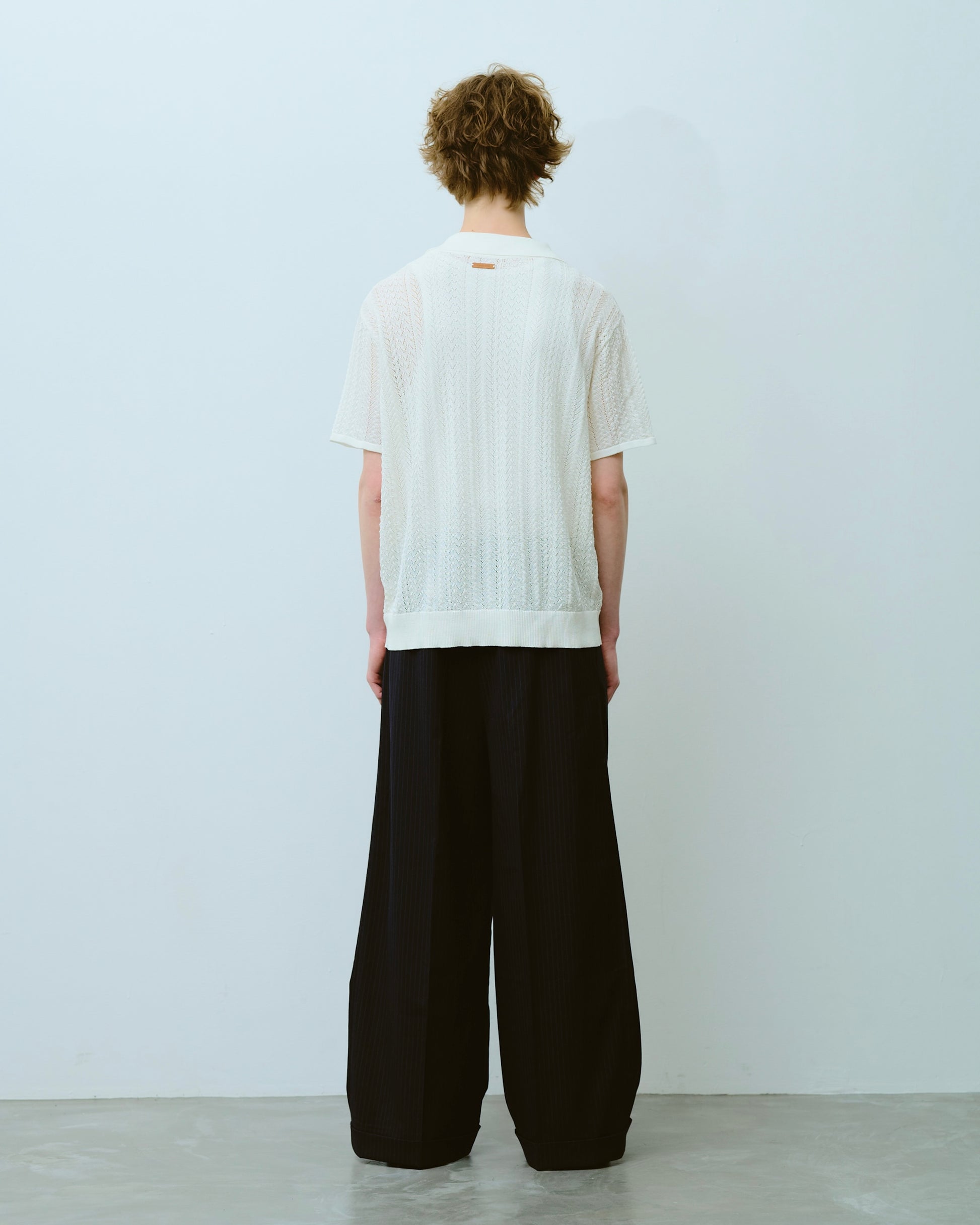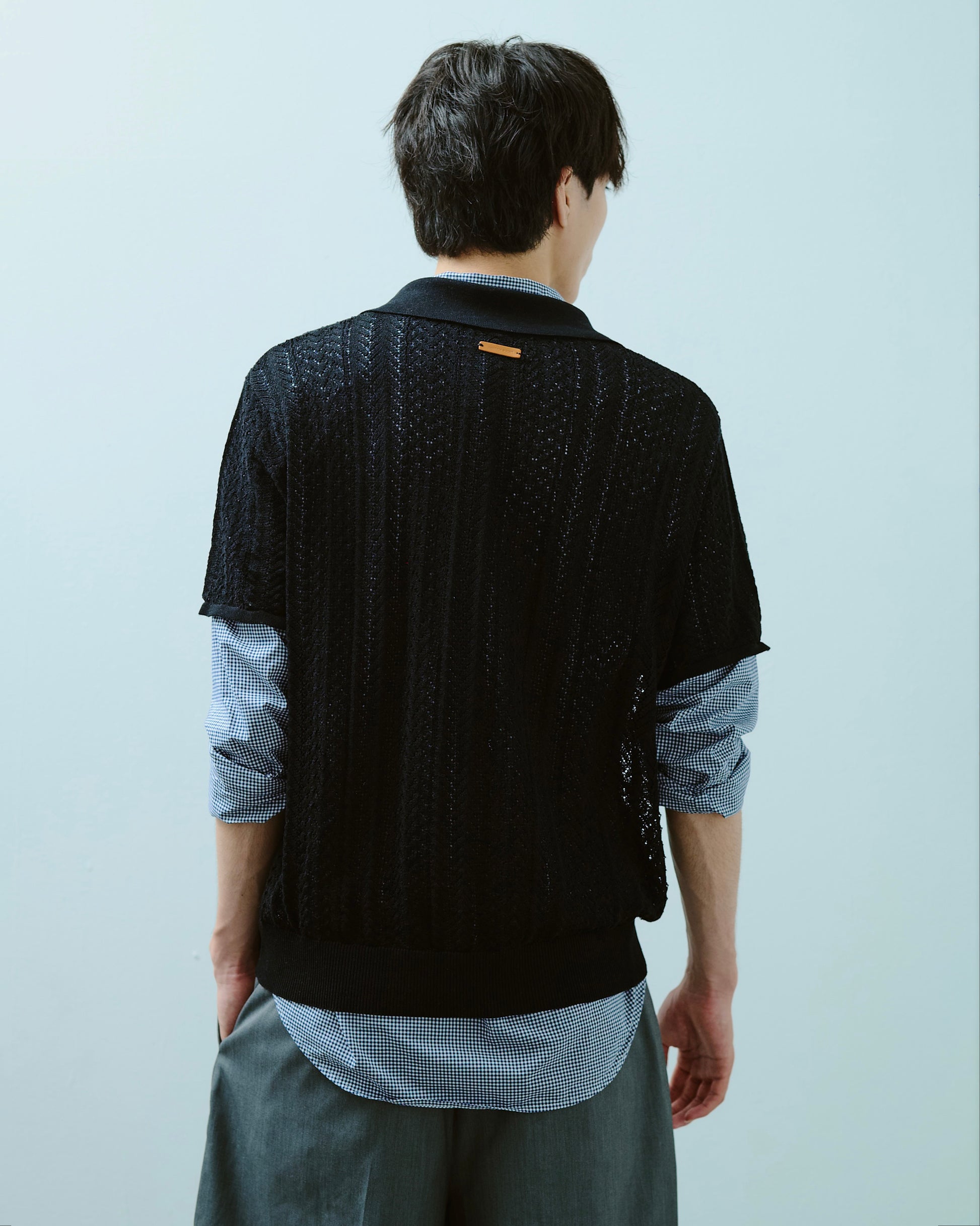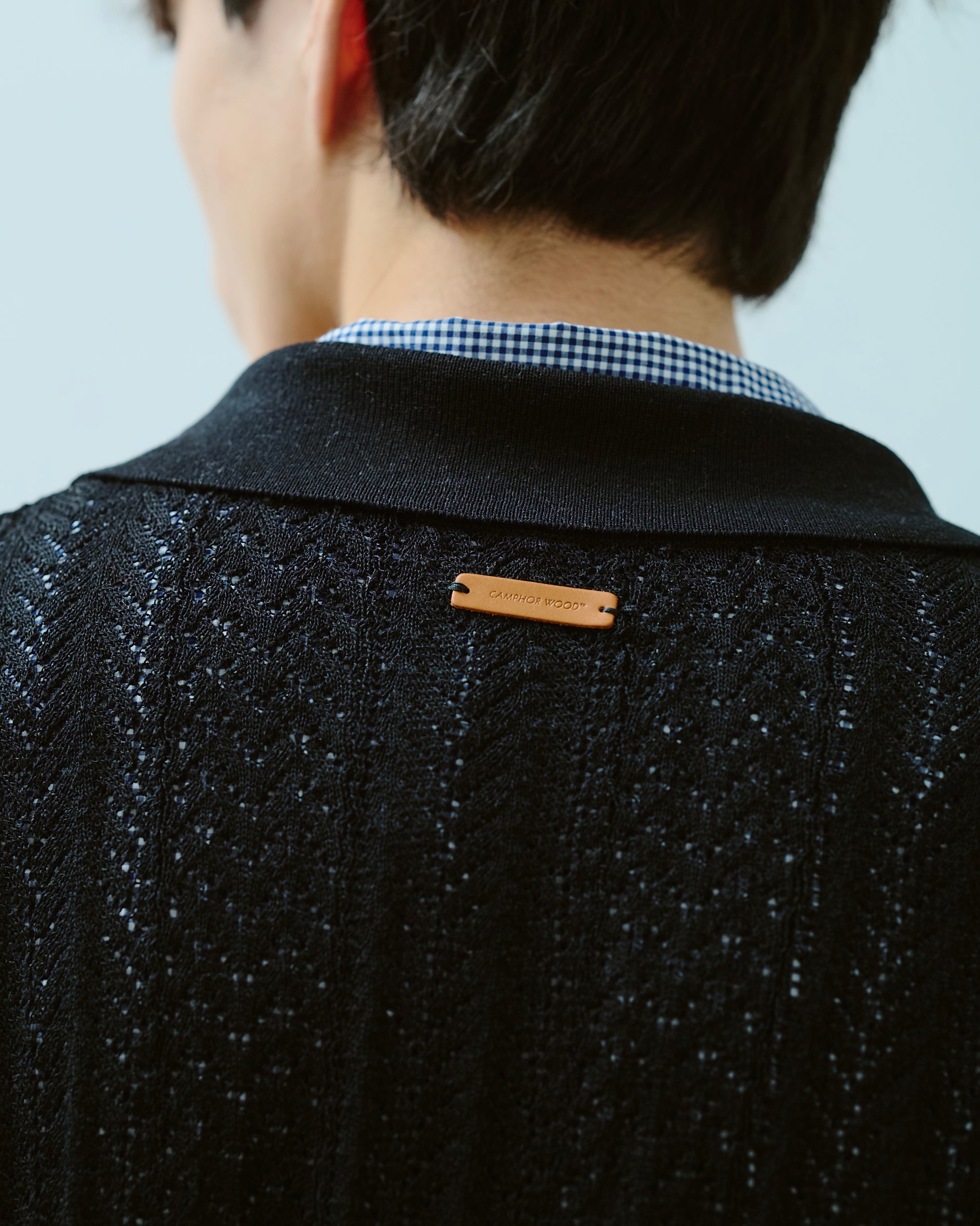 1970年代のスキッパーニットをデザインソースにしつつ、ゲームシャツのスキッパーディテールを加えることで、古さを感じさせない現代的な表情に仕上げた。