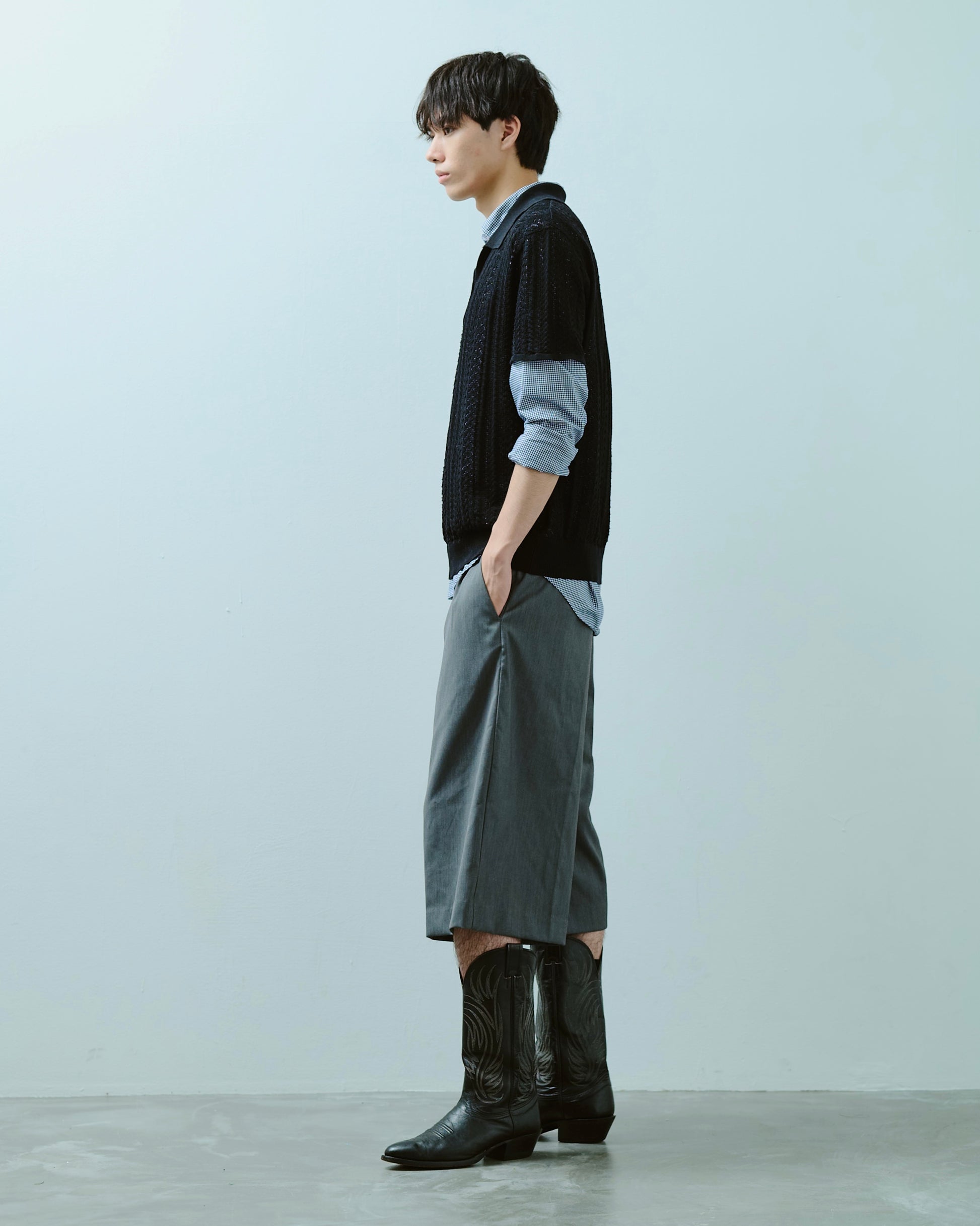 一枚での着用はもちろん、シャツやカットソーとのレイヤードにも適しており、幅広くスタイリングにてお楽しみ頂ける一着に。