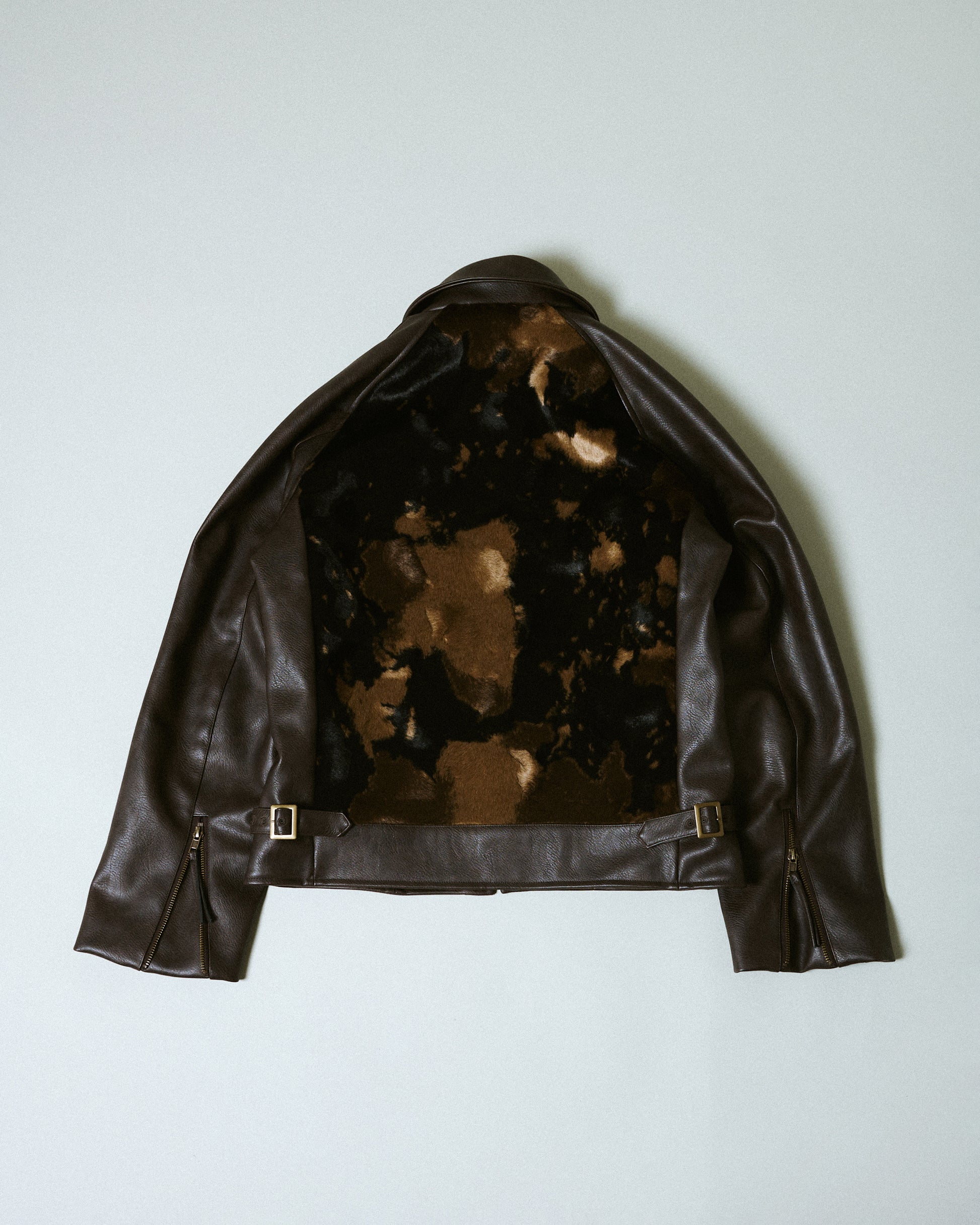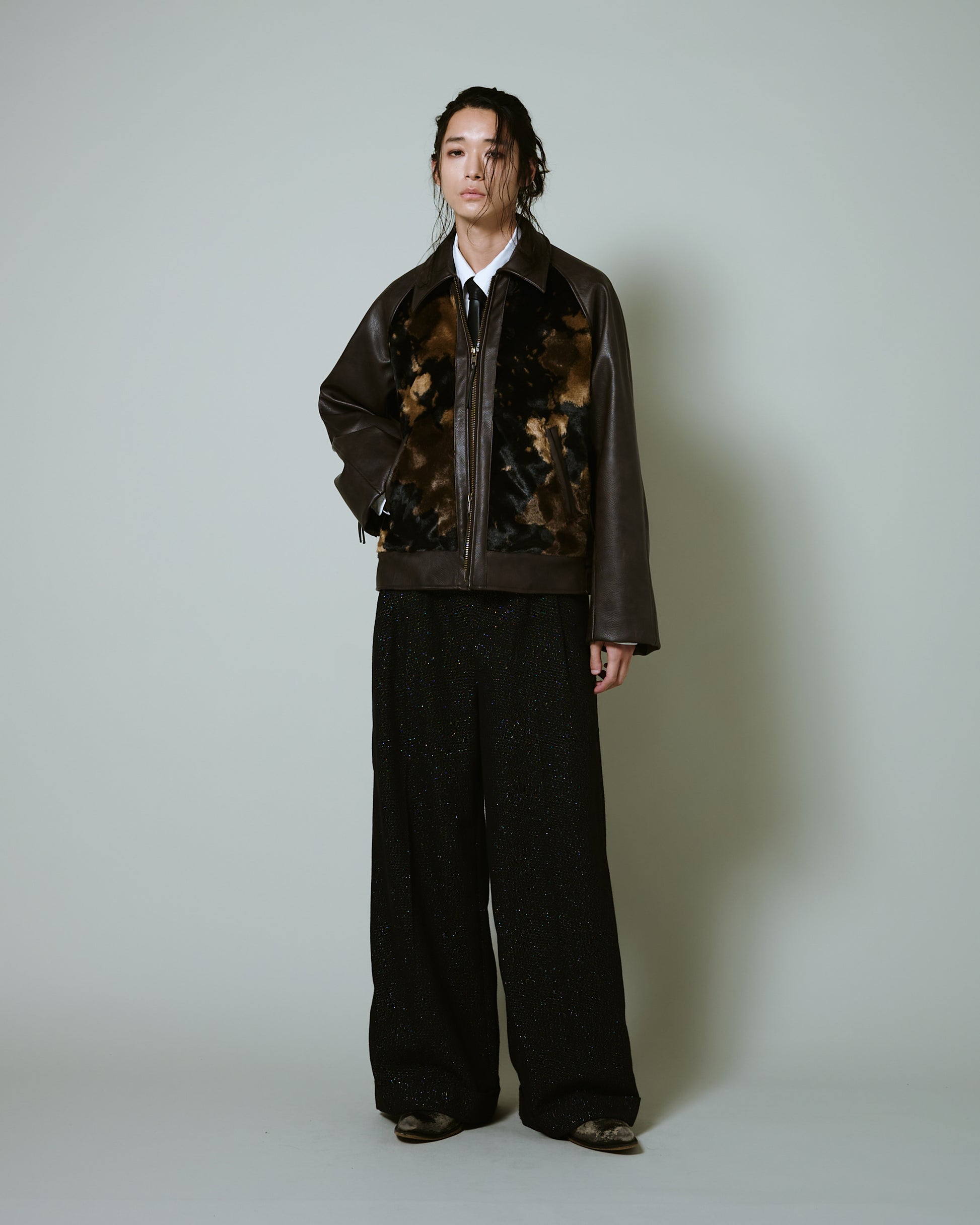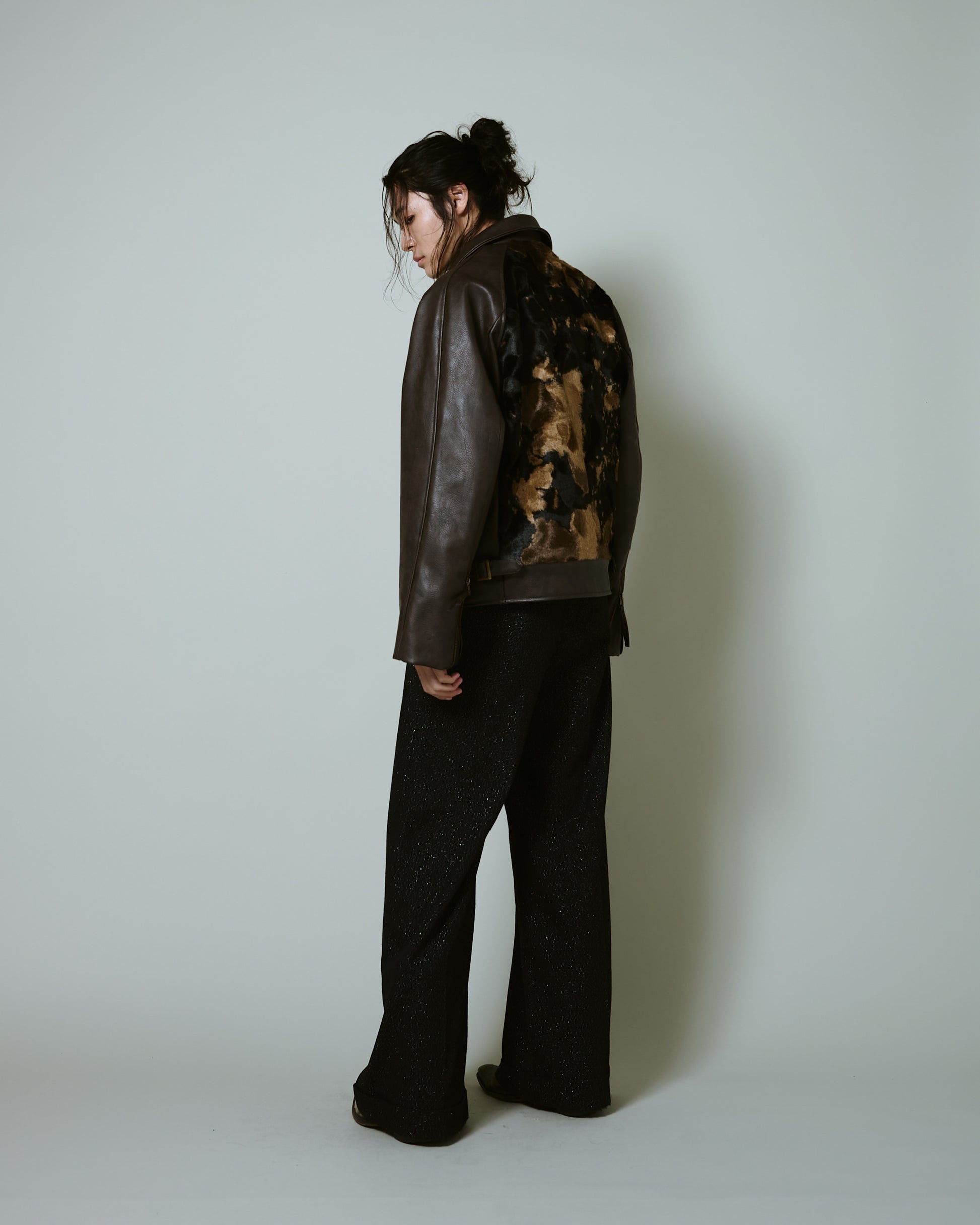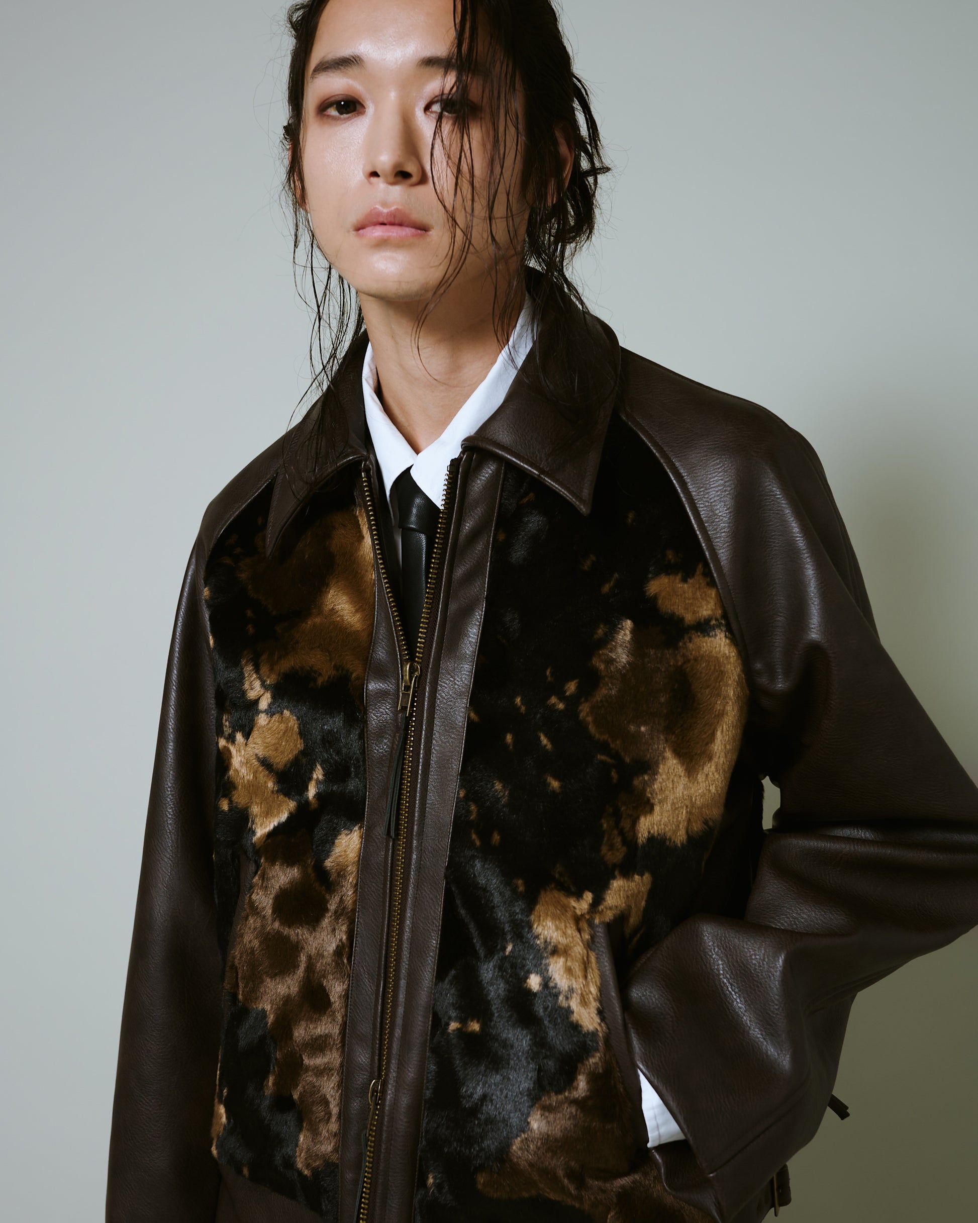 ブランド定番の厚みのあるPUレザーとフェイクハラコを組み合わせ、今期CAMPHORWOODが提案するレザージャケット。