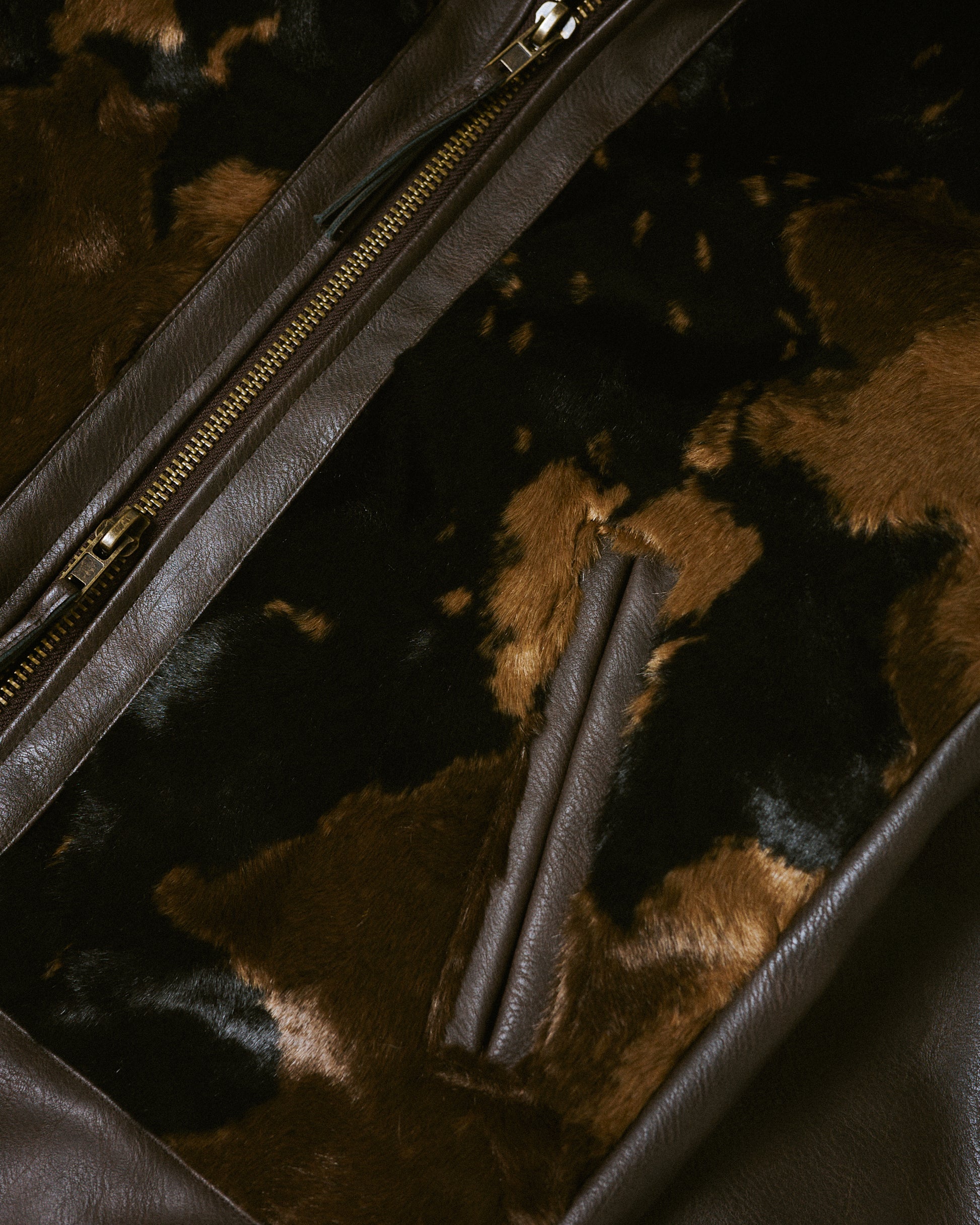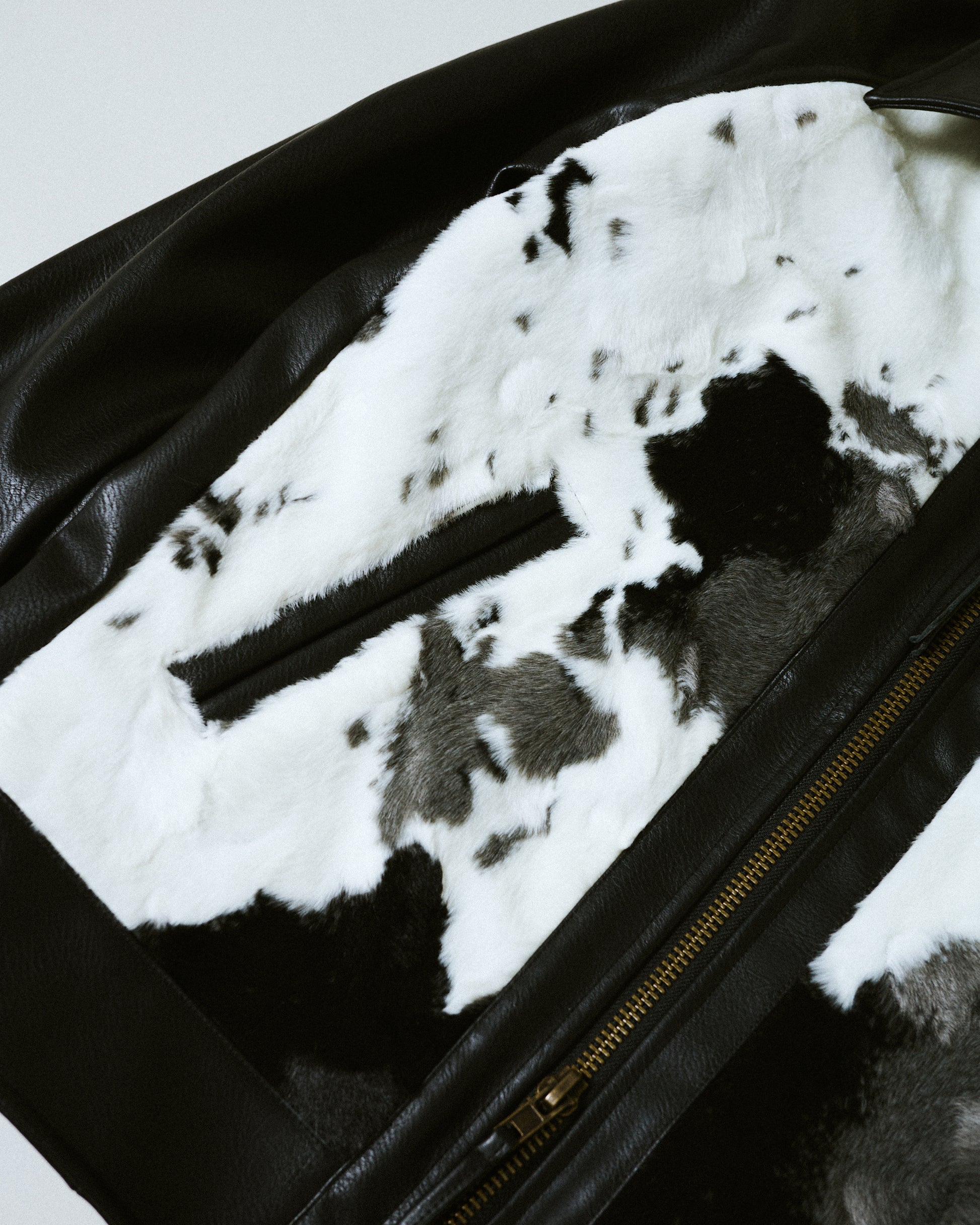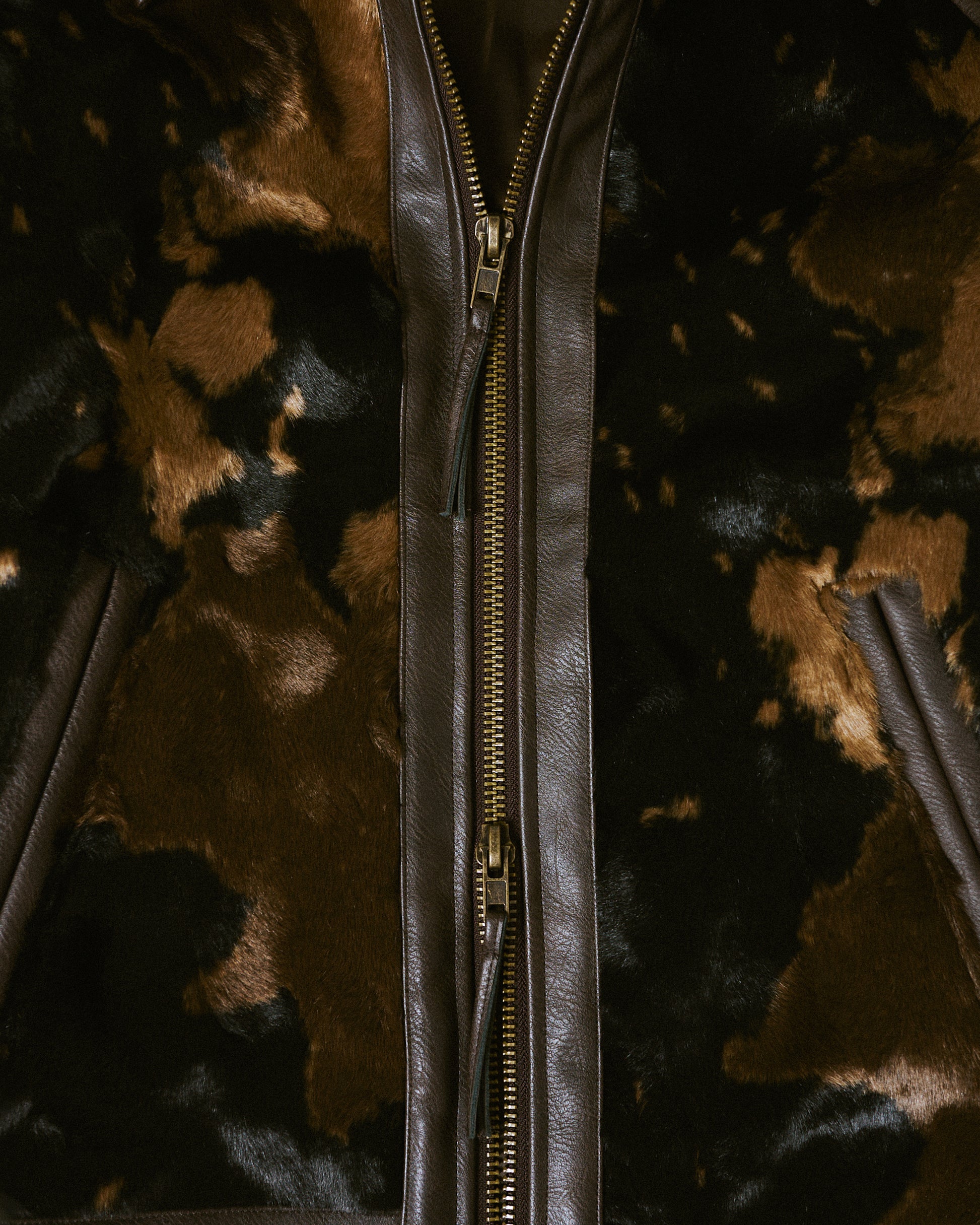 70sのヴィンテージハラコジャケットを現代的に再構築した“ faux haircalf leather jacket ”のリリース。