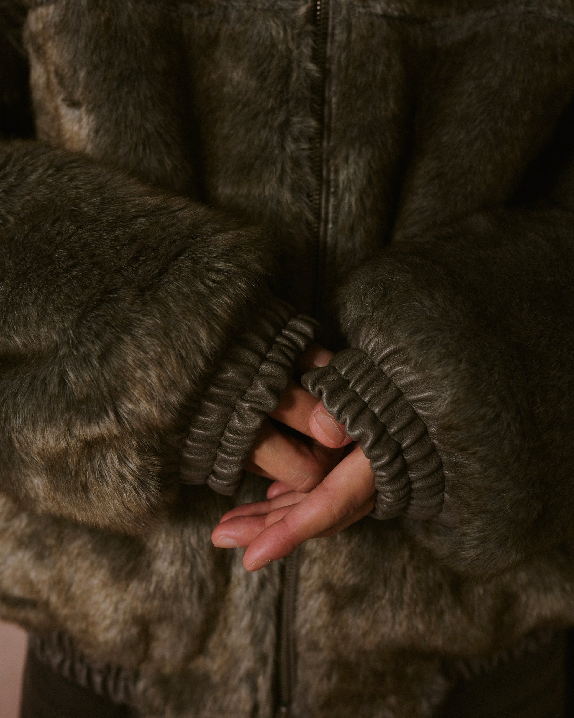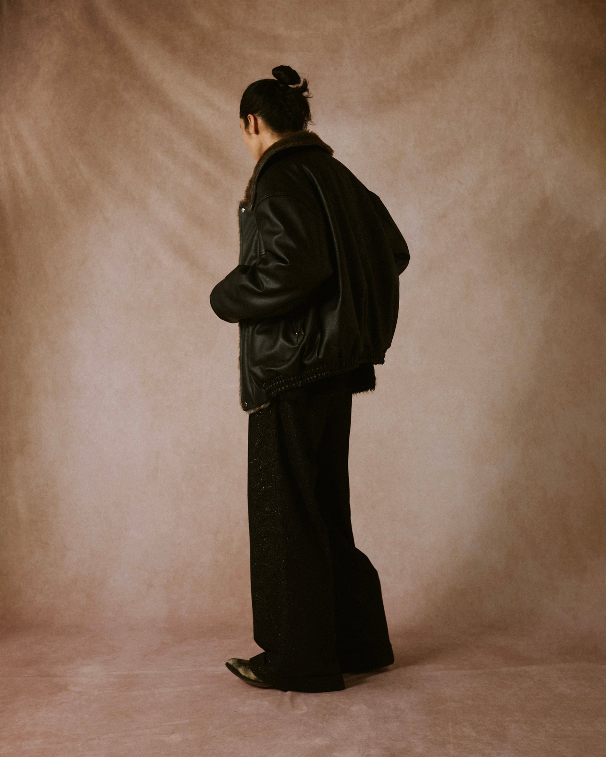 昨年、リリースからわずか3分で即完売を記録した “LEATHER/FUR FAUX REVERSIBLE FLIGHT JACKET” が、この秋アップデートを加えて再登場。
