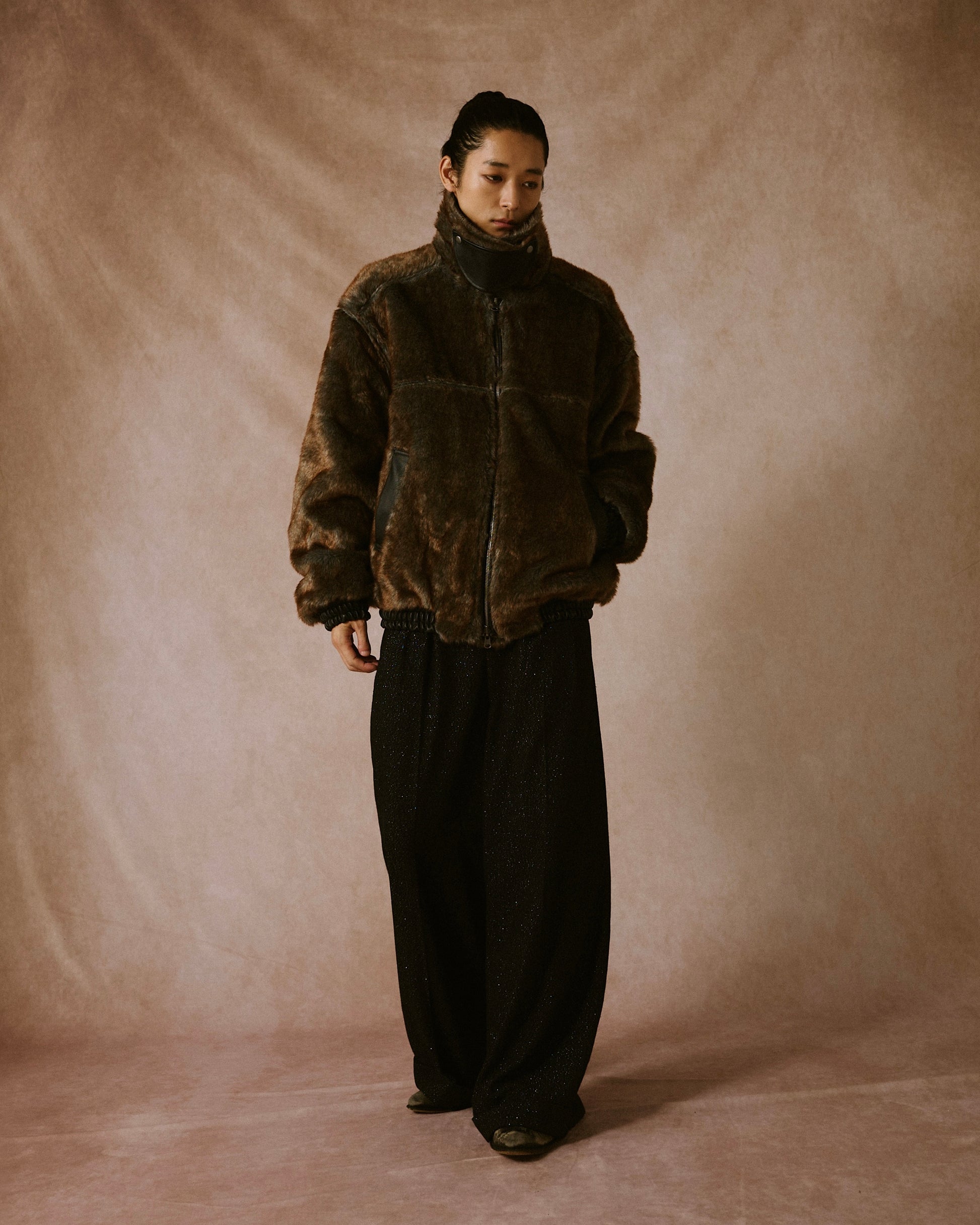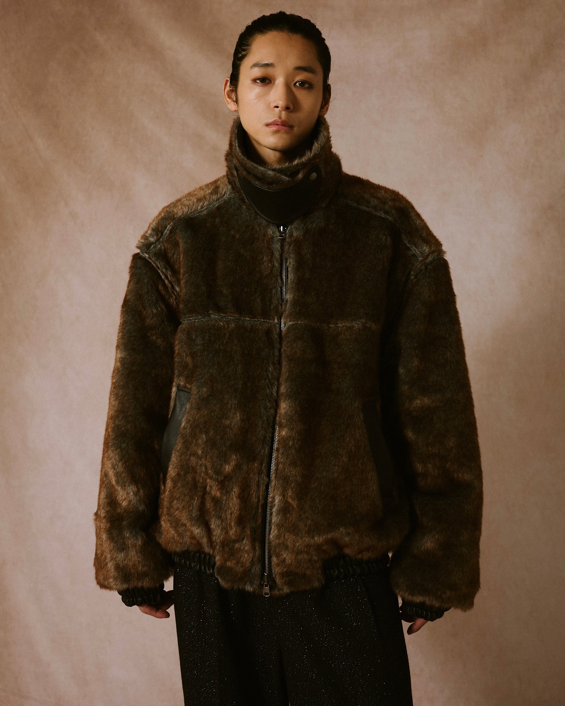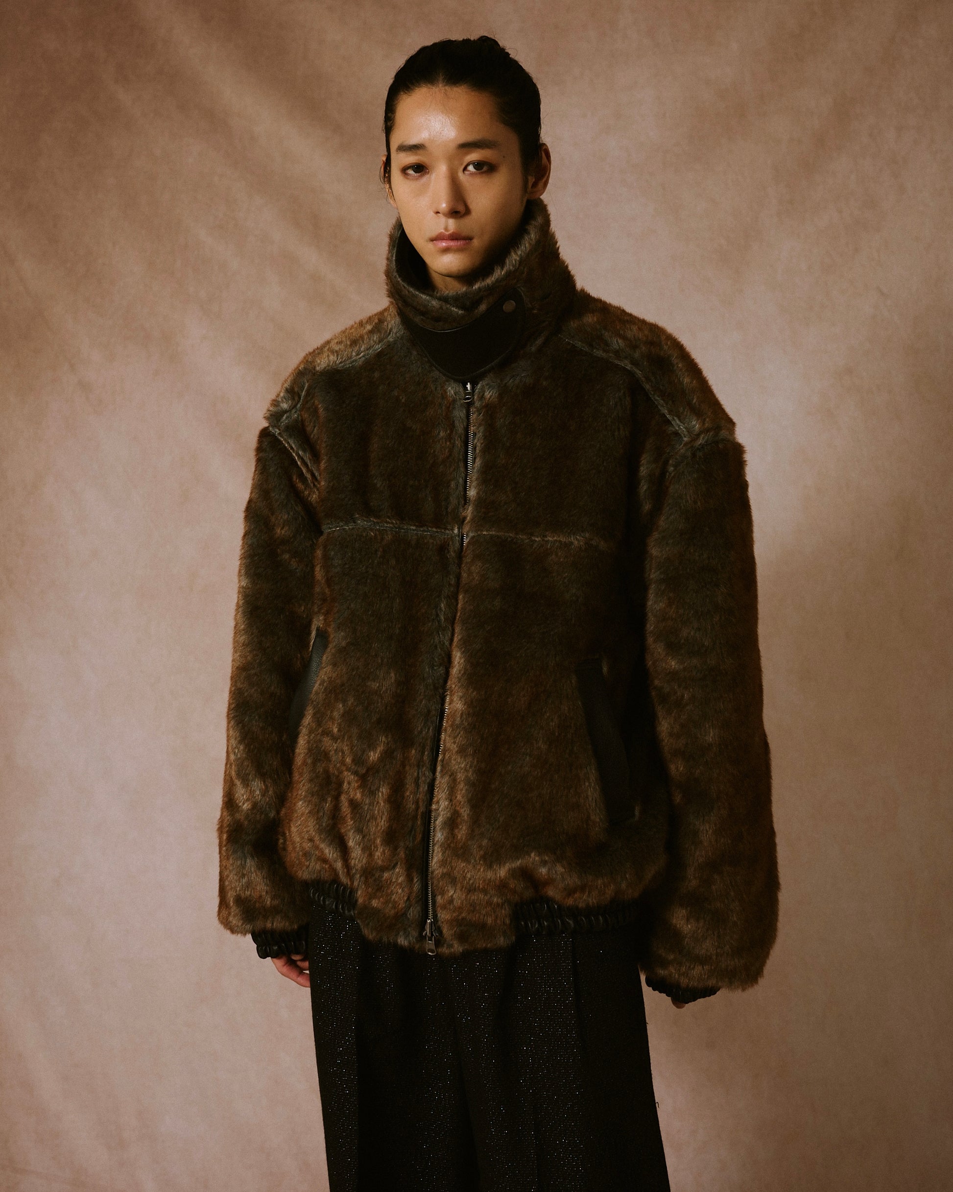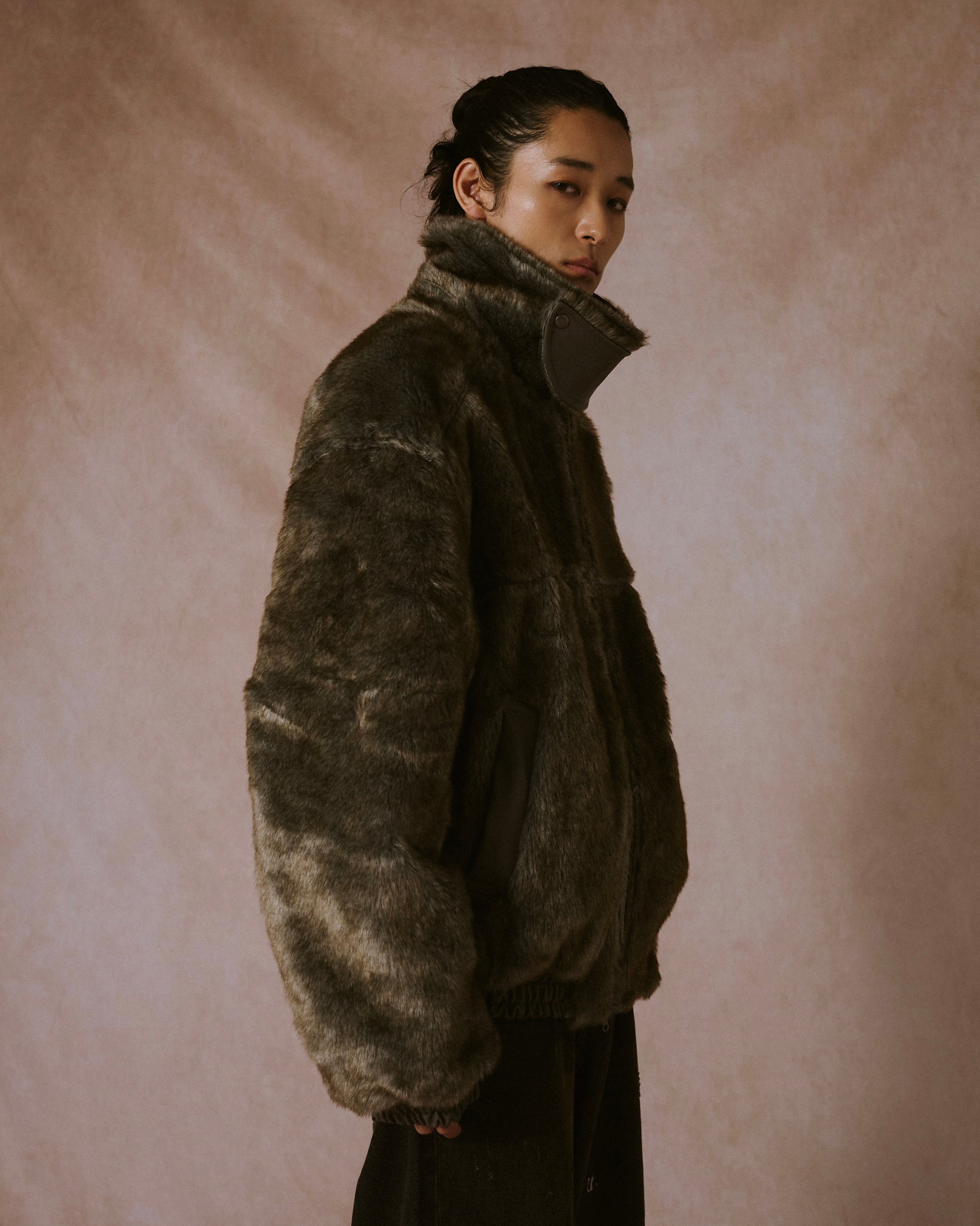 ヴィンテージのフライトジャケットをベースに、リアルレザーに迫る重厚なシボ感を持つマットなPUレザーと、上質で程よい毛足のファーをボンディング。表裏で全く異なる表情を見せる、ブランドを象徴する2WAYヘビーアウターへと仕上げた。