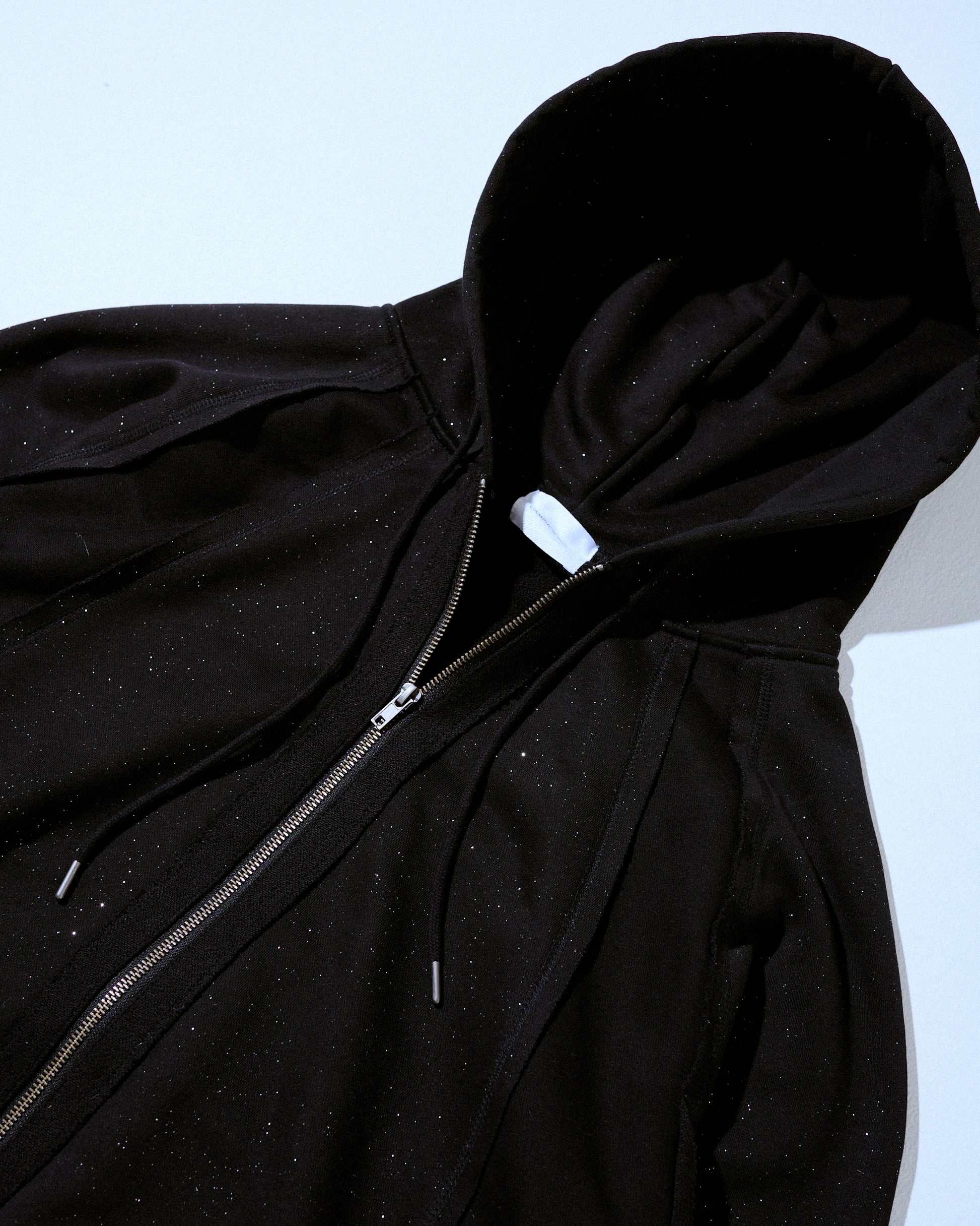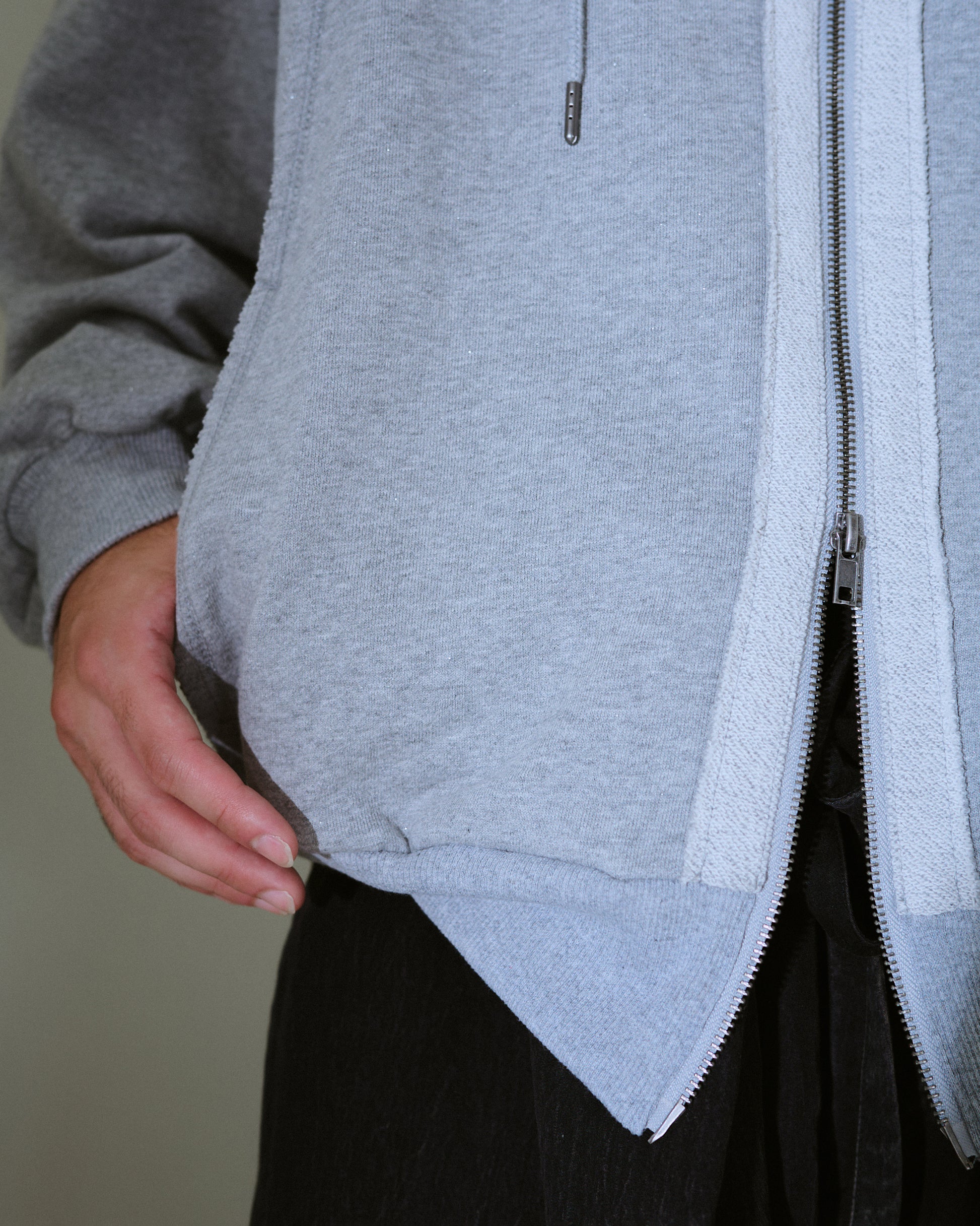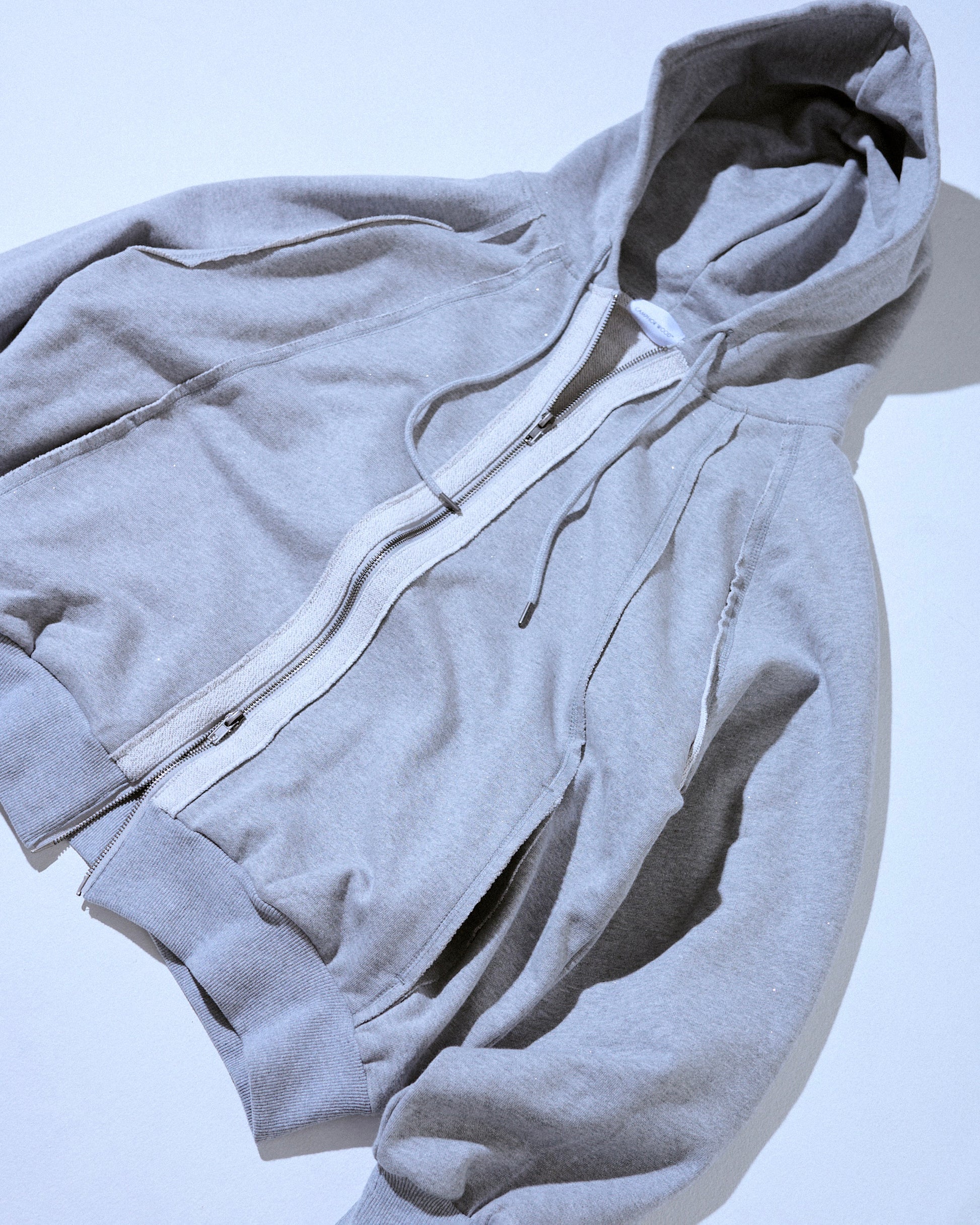 フロントはダブルジップ仕様。開閉のバランスでシルエットやレイヤードの表情に変化をつけられる。