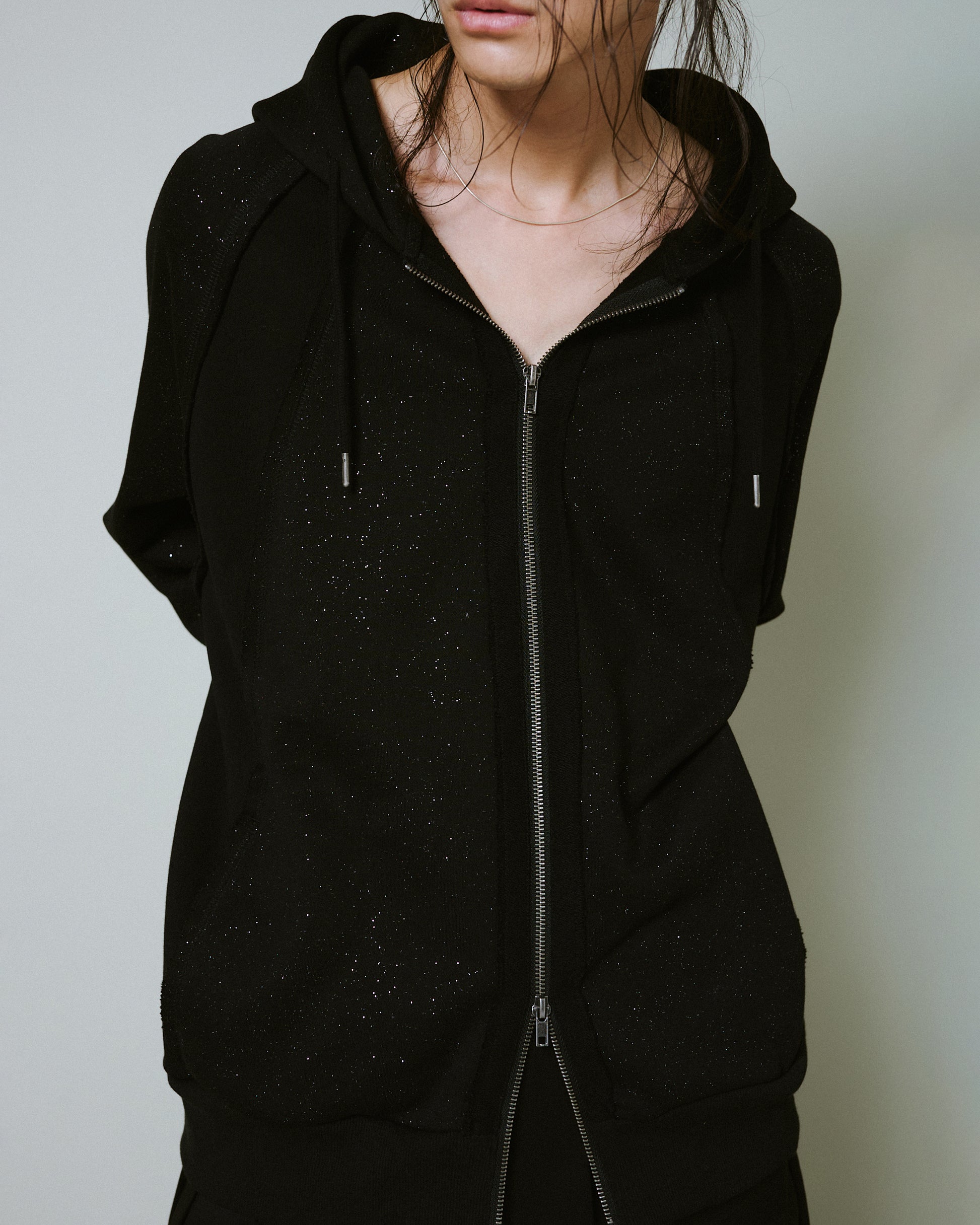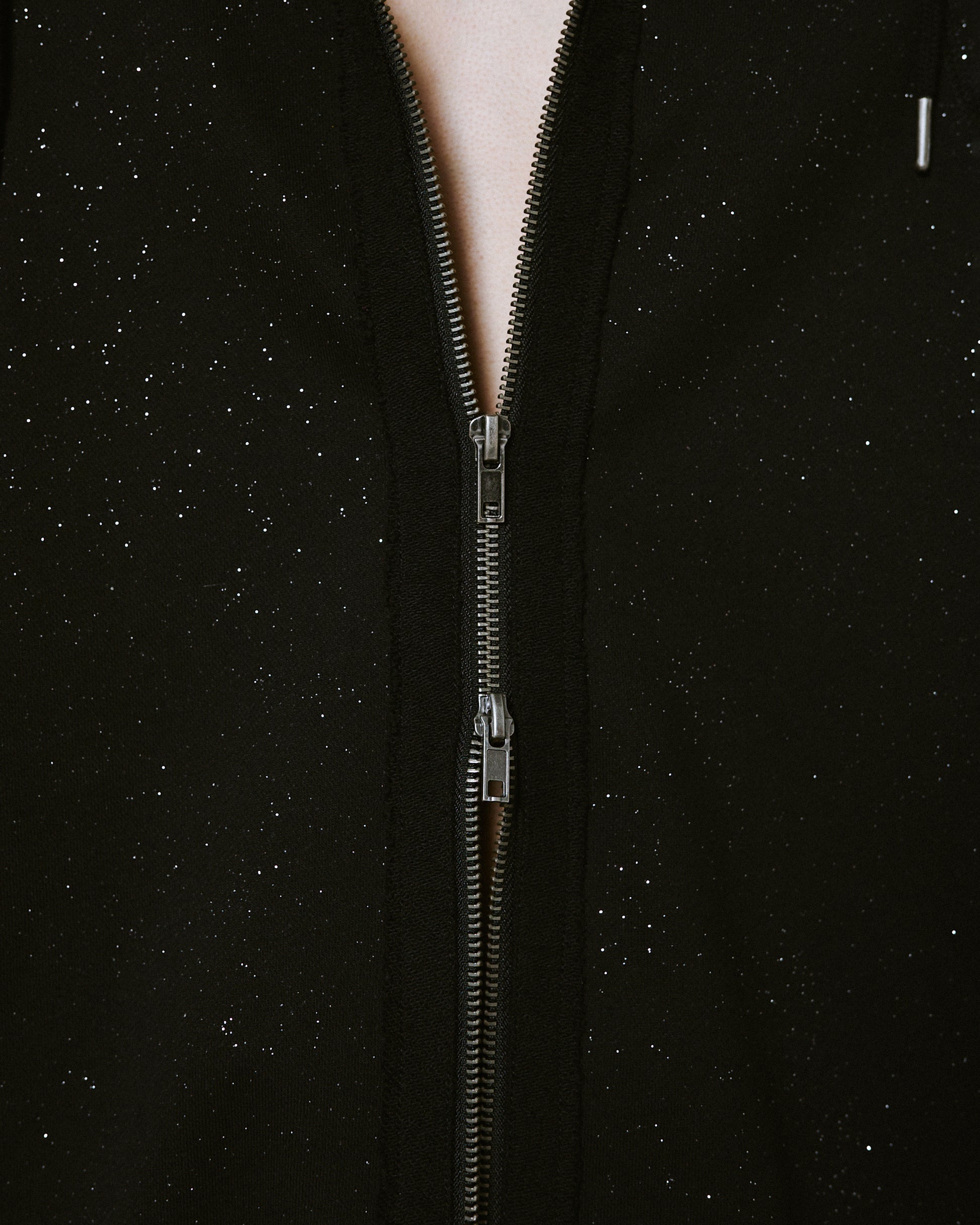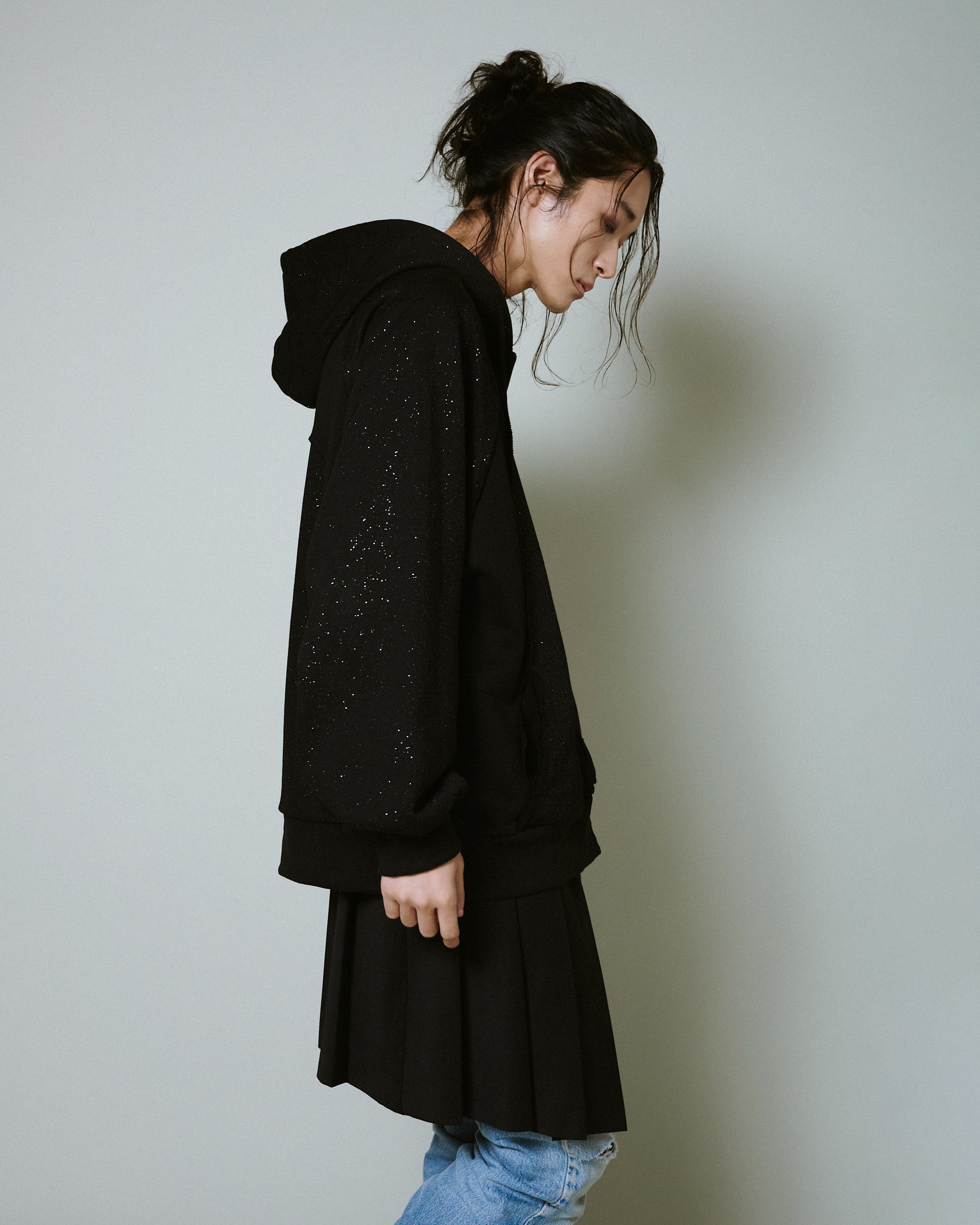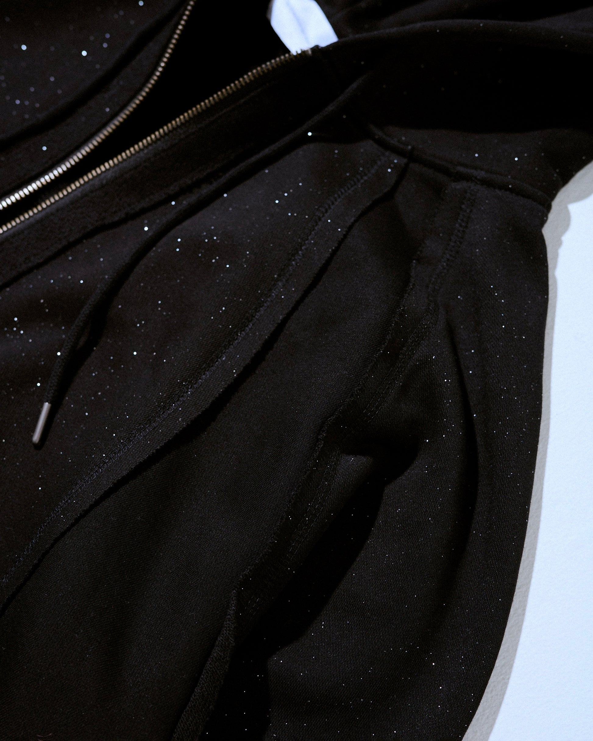 フロントはダブルジップ仕様。開閉のバランスでシルエットやレイヤードの表情に変化をつけられる。
