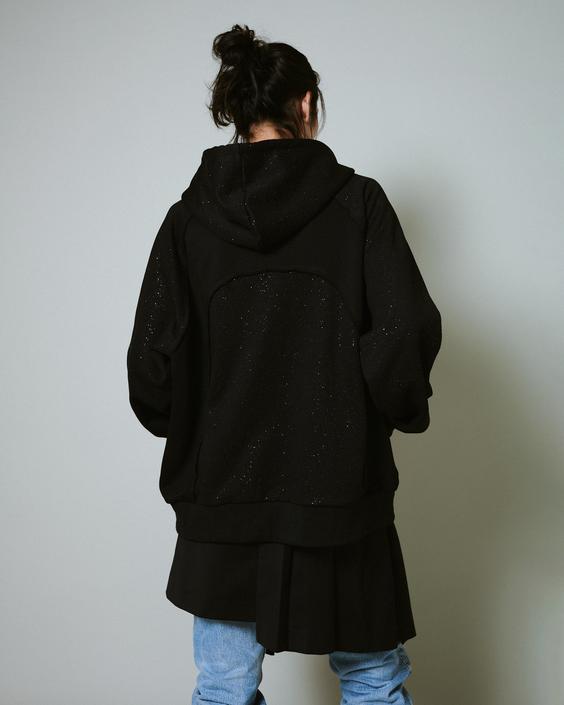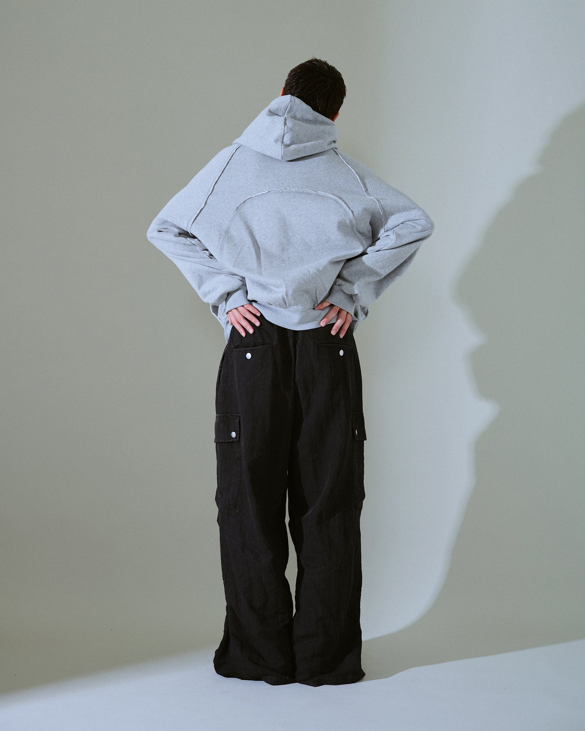 450gのヘビーウェイト地にグリッダープリントを施した、存在感のあるダブルジップフーディー。