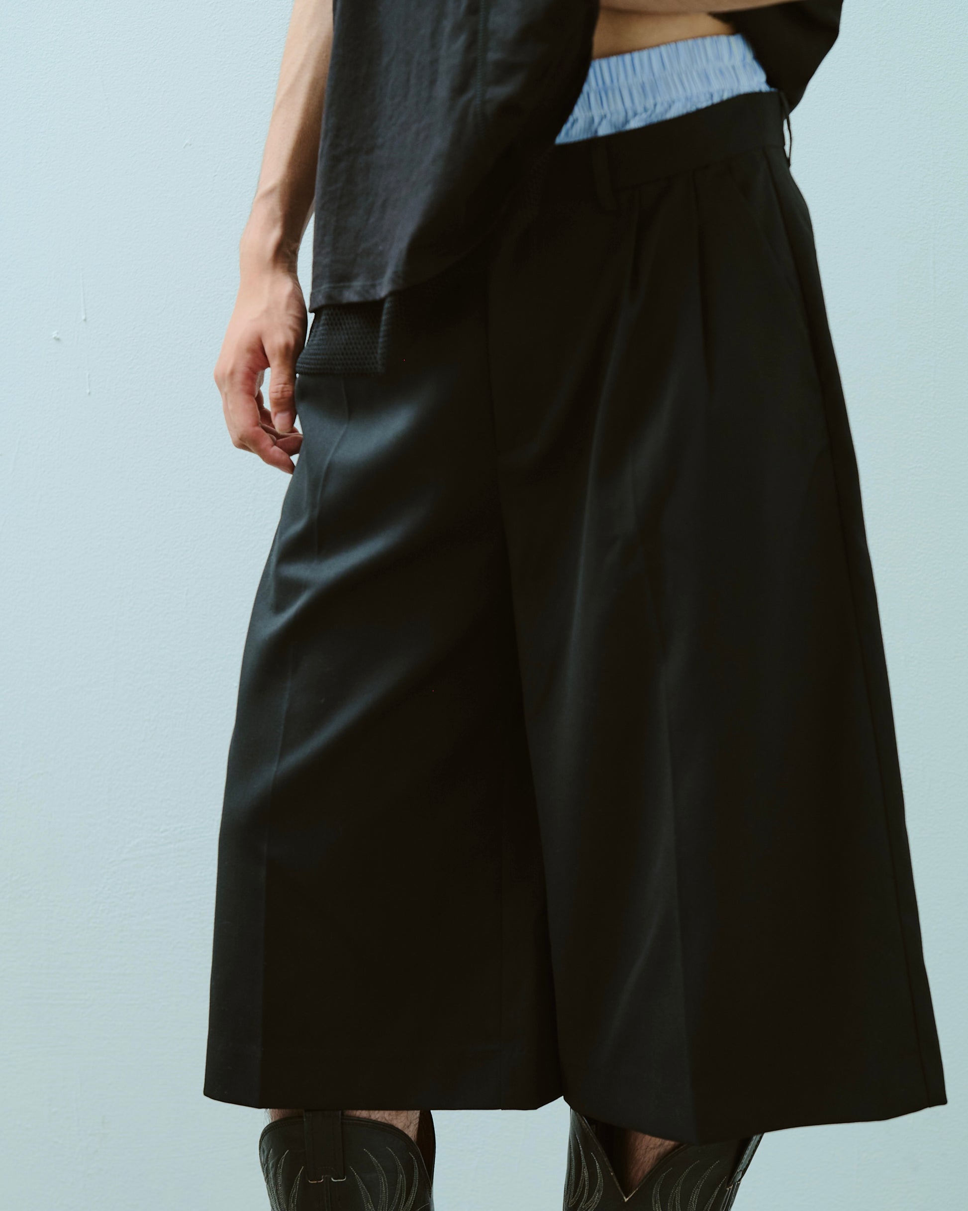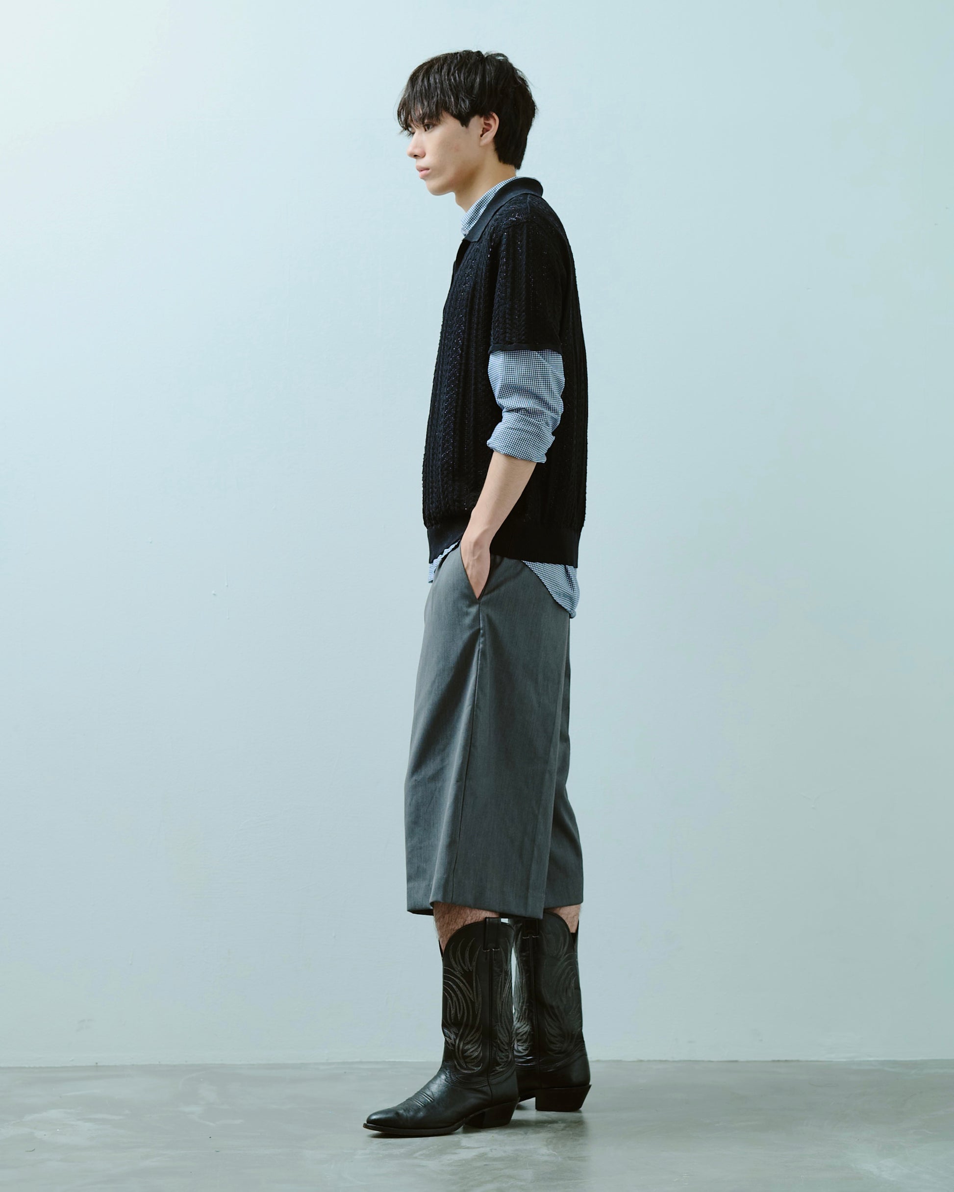 シルエットは、今期らしいエッセンスを纏った7分丈のロングバギーショーツを採用。