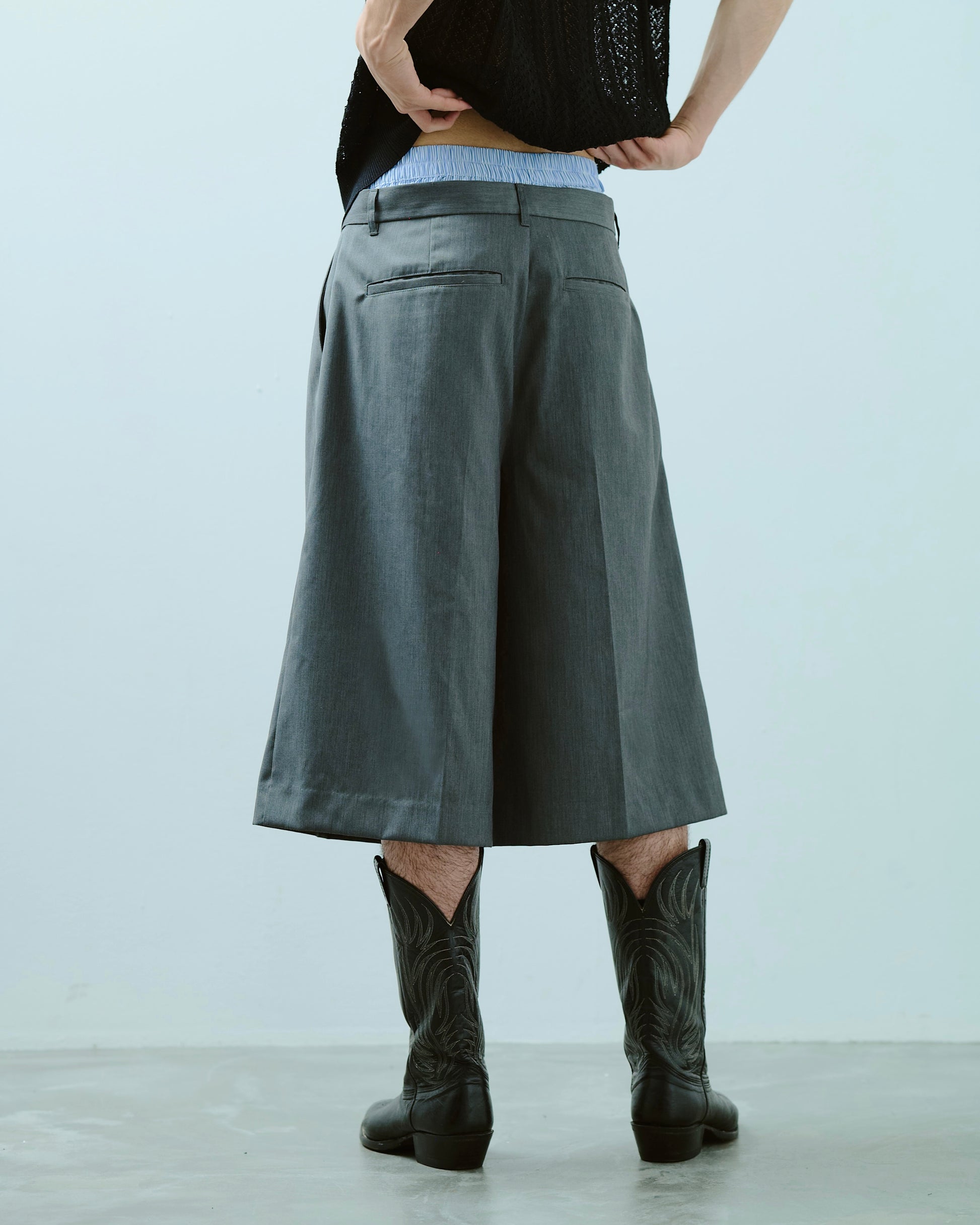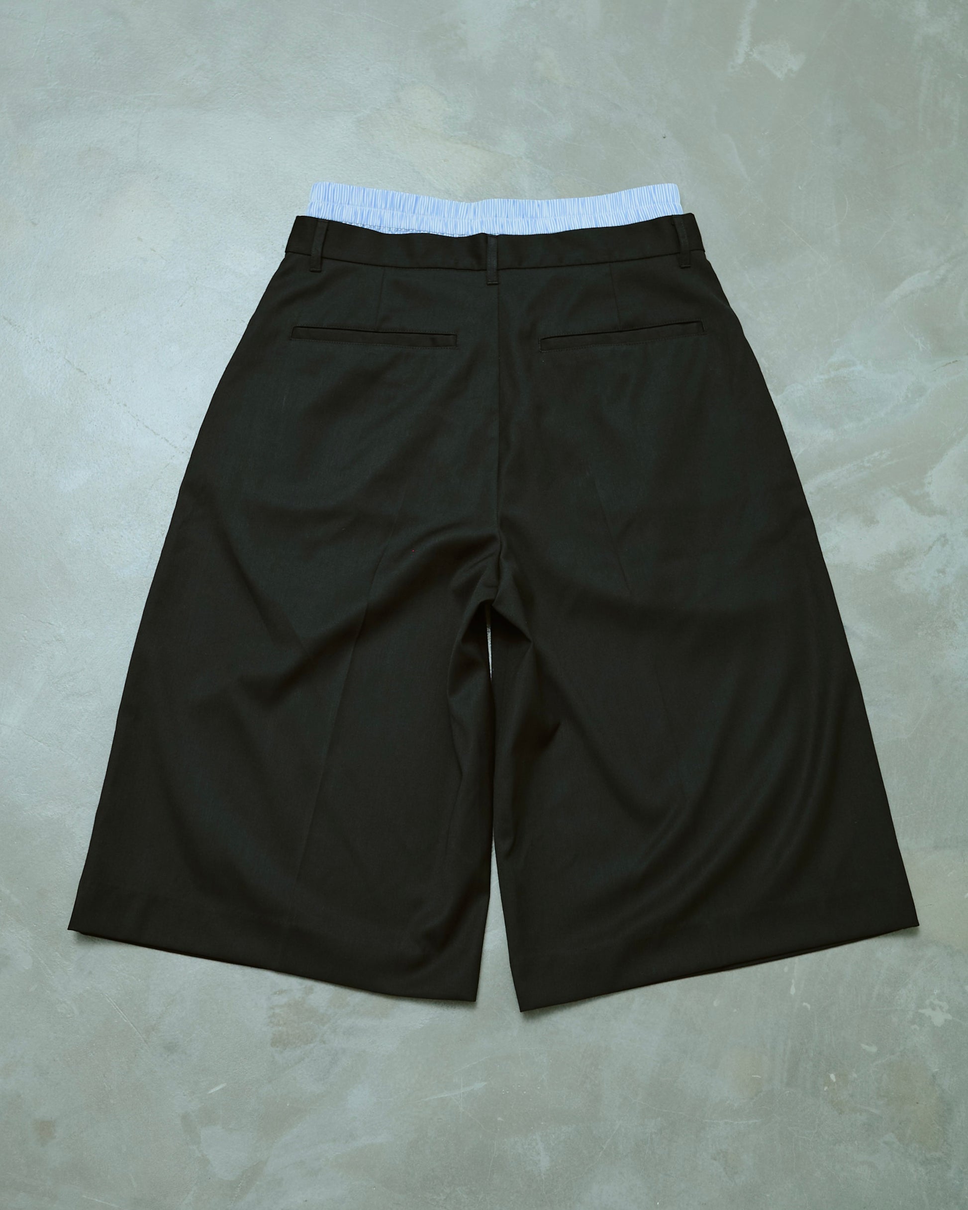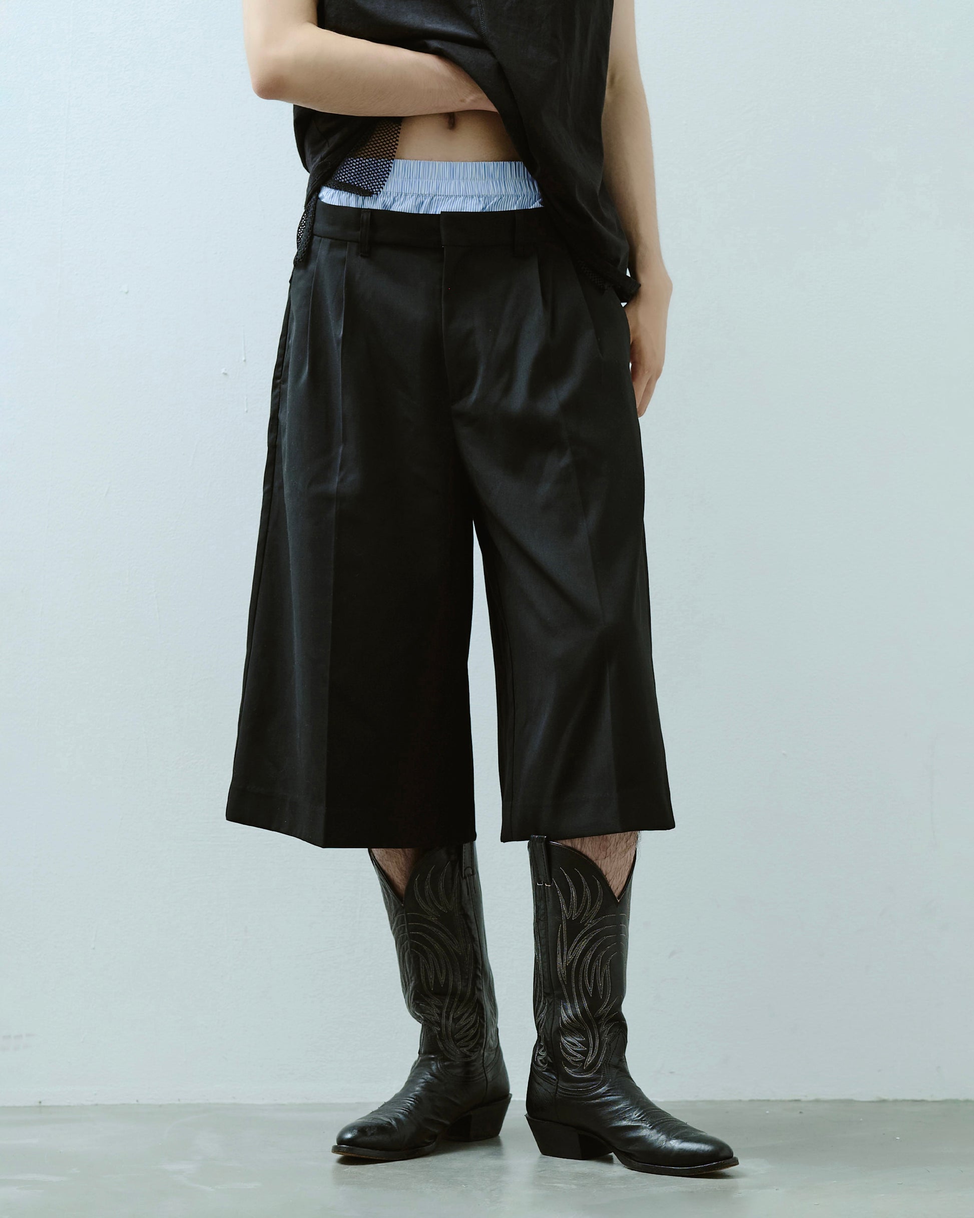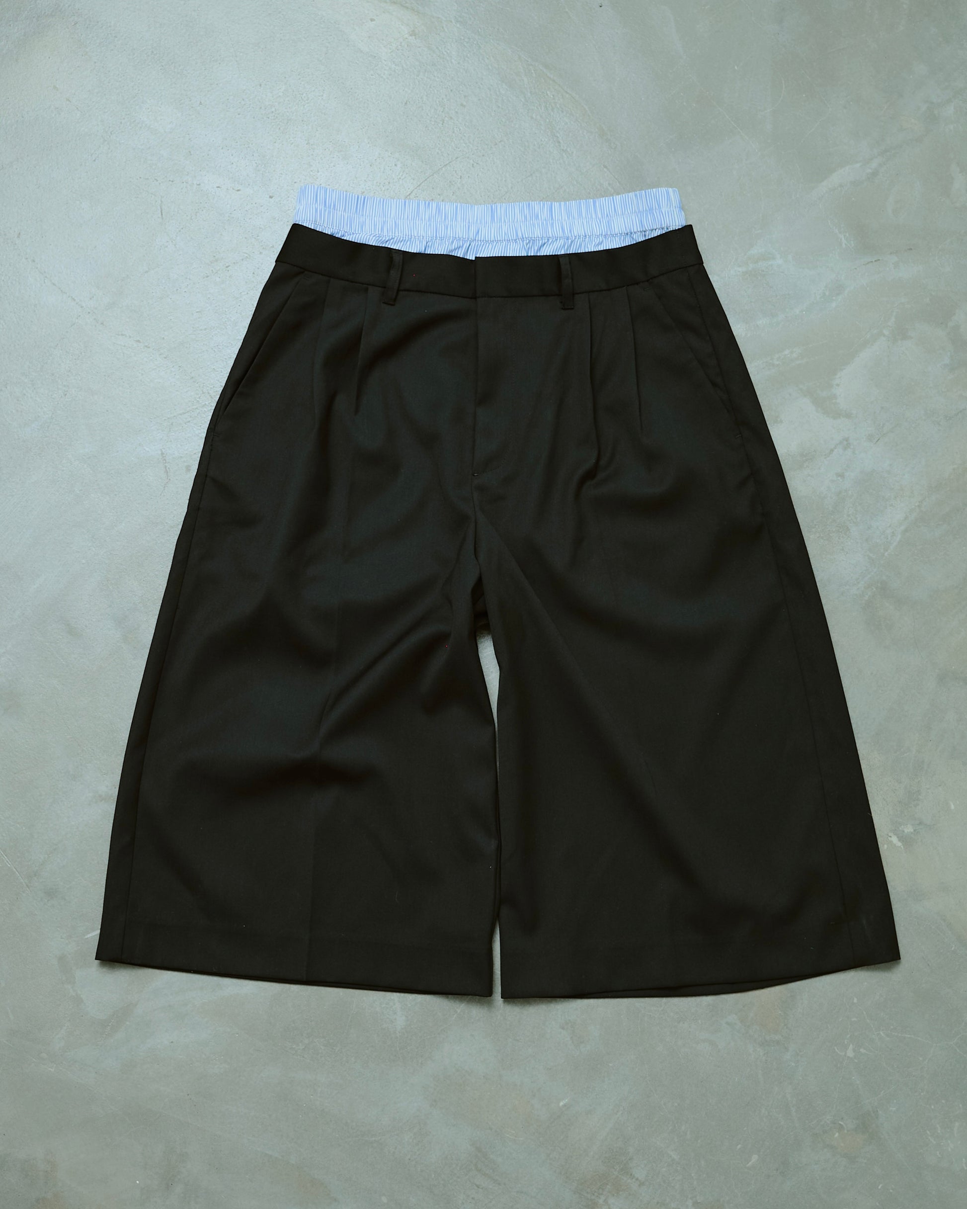 ハリのあるポリエステルレーヨン地を採用した、トランクスがレイヤードされたバギーショーツのリリース。