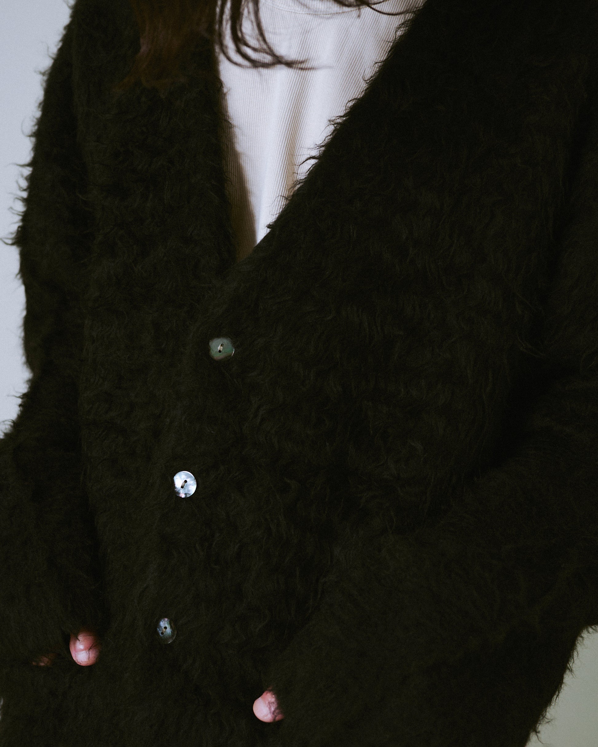 60sの希少価値あるモヘアカーディガンをサンプリングし、現代的に再構築したカーディガン。