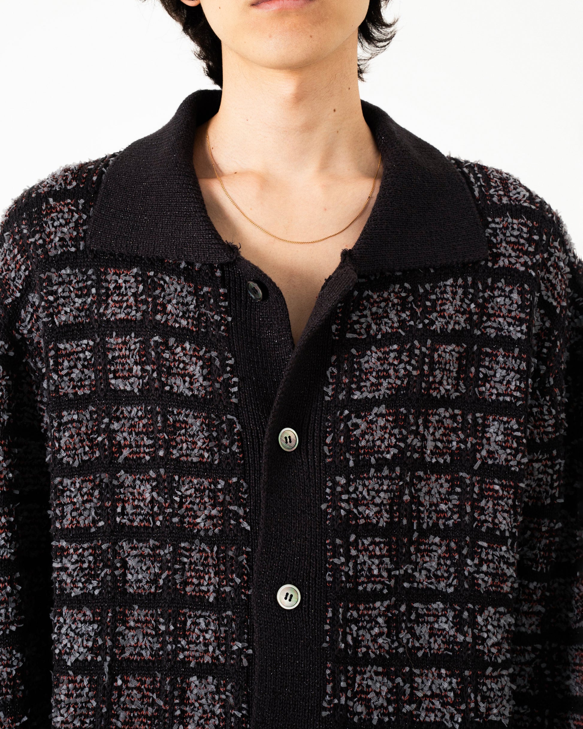 ツイードジャケットを思わせる表情を、ニットならではの柔らかさで再構築したニットシャツ。