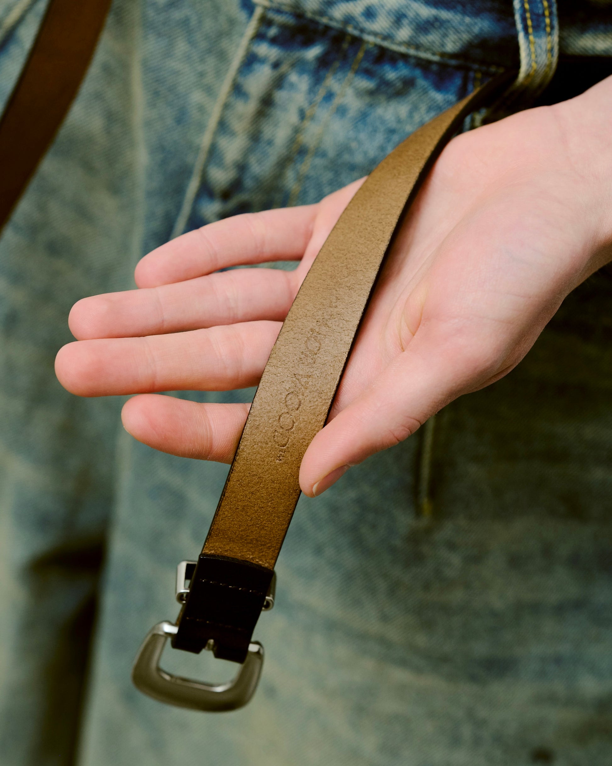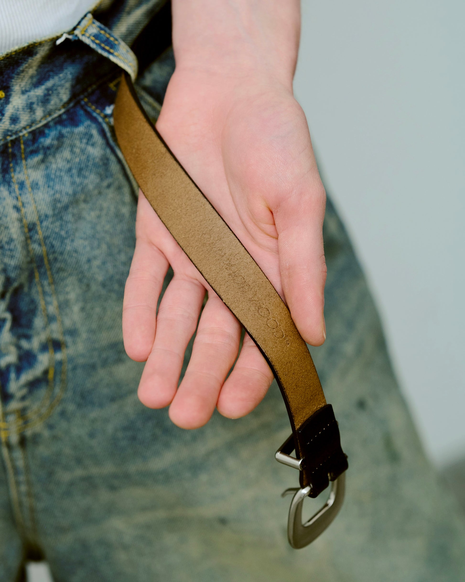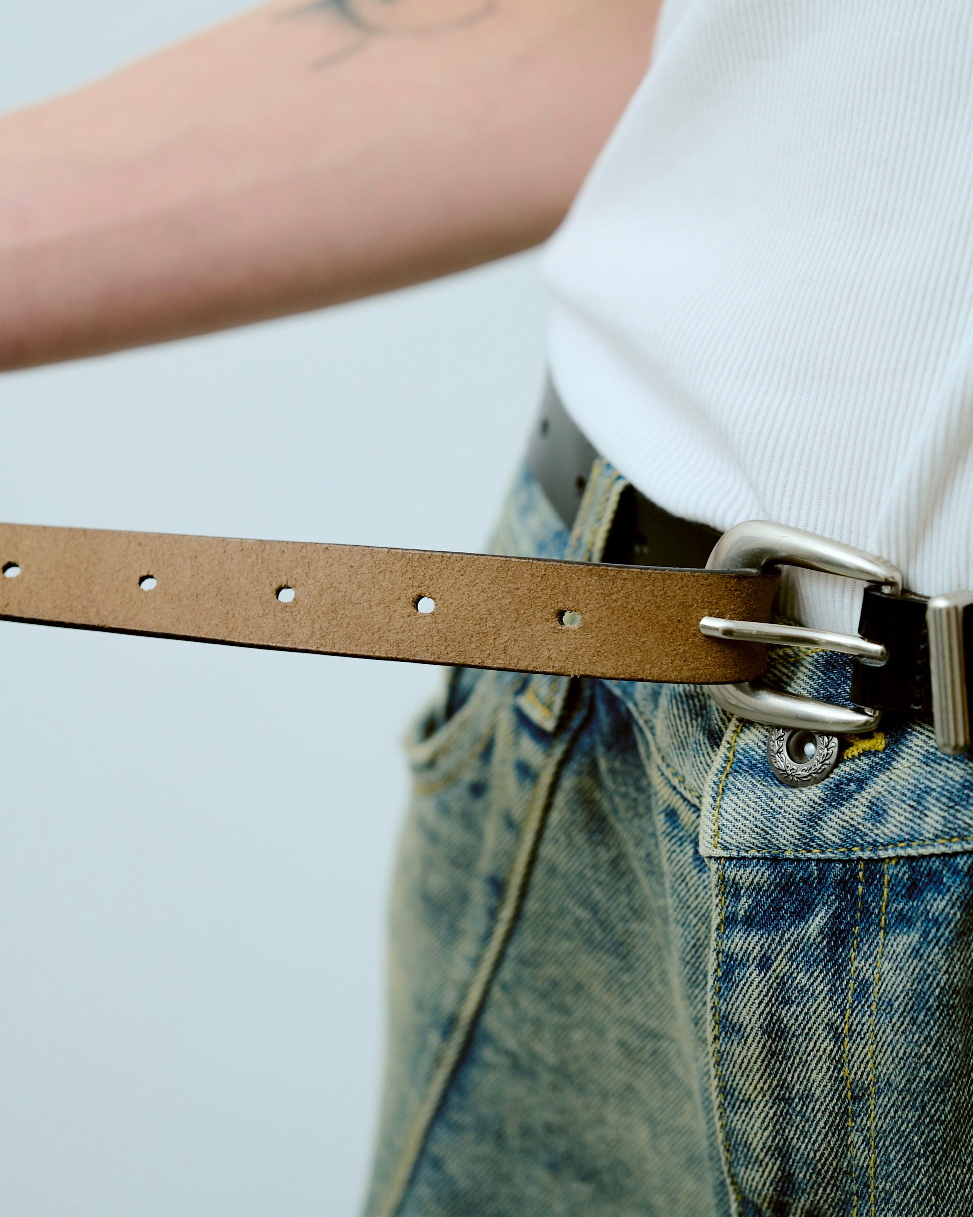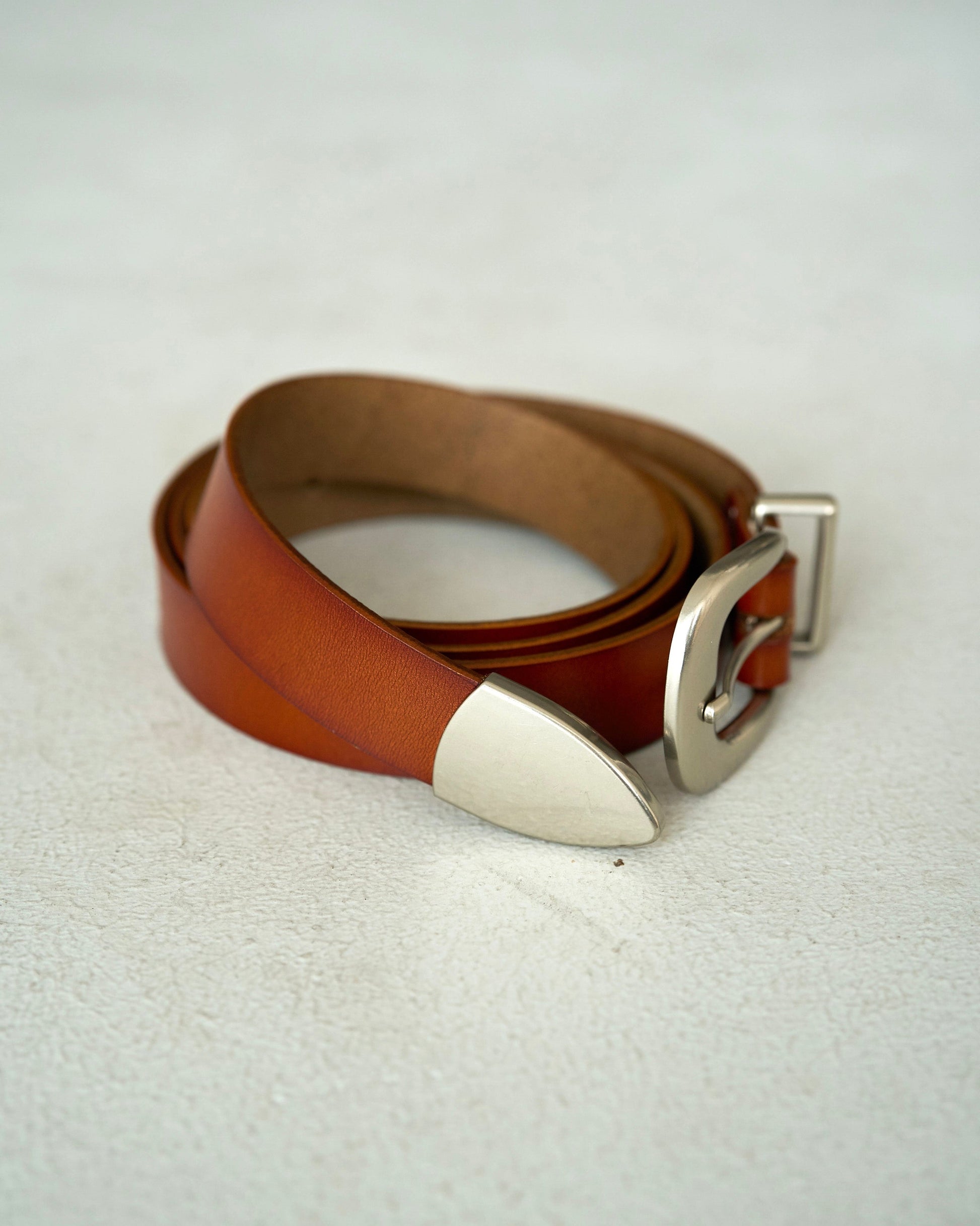 燻し加工を施し、天然皮革を使用したウエスタンベルト。