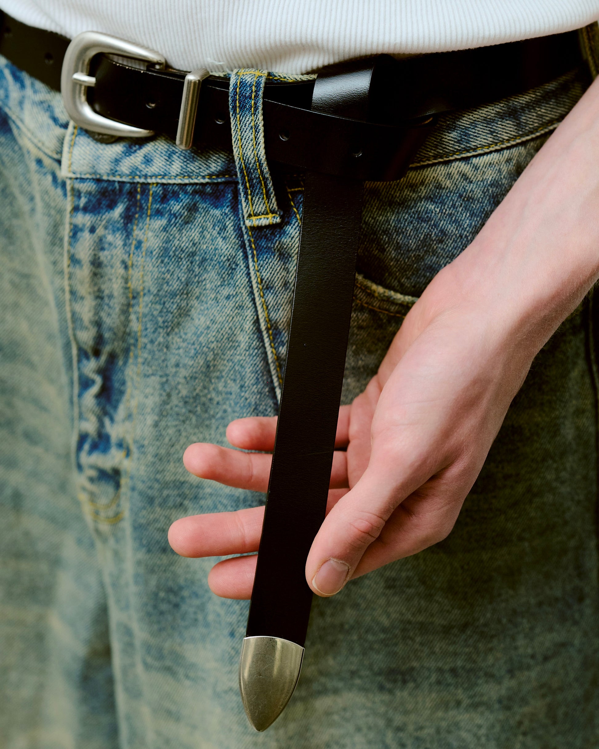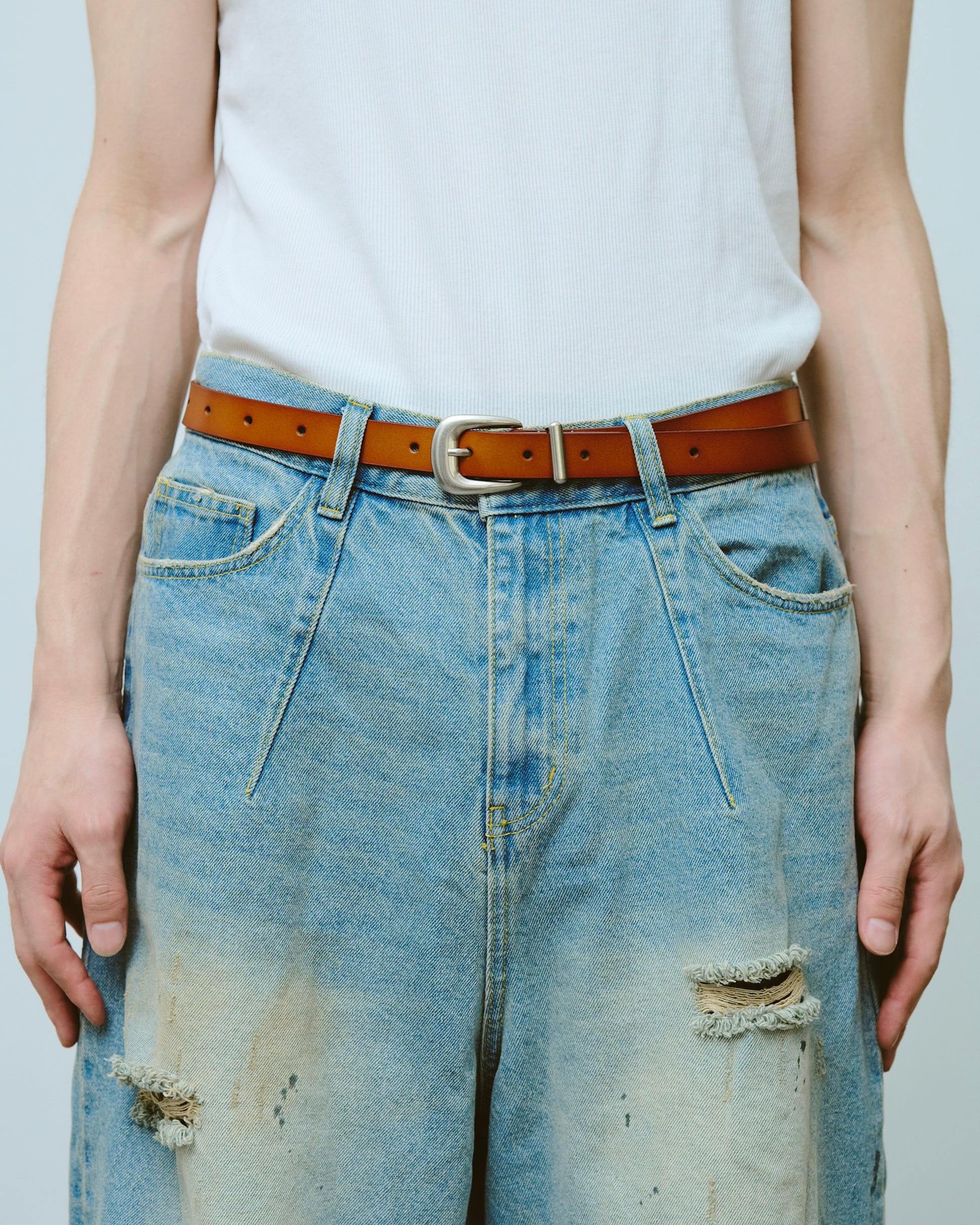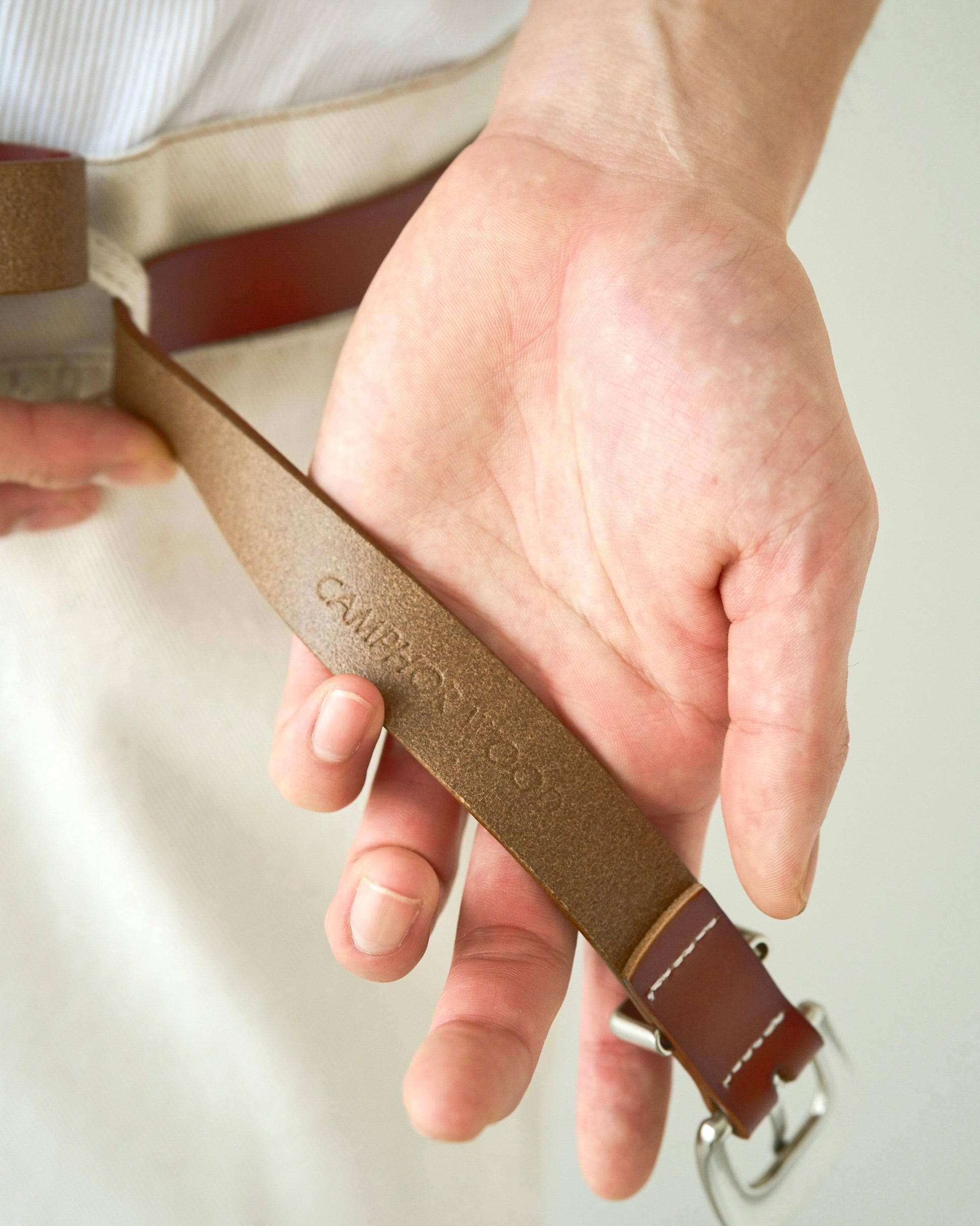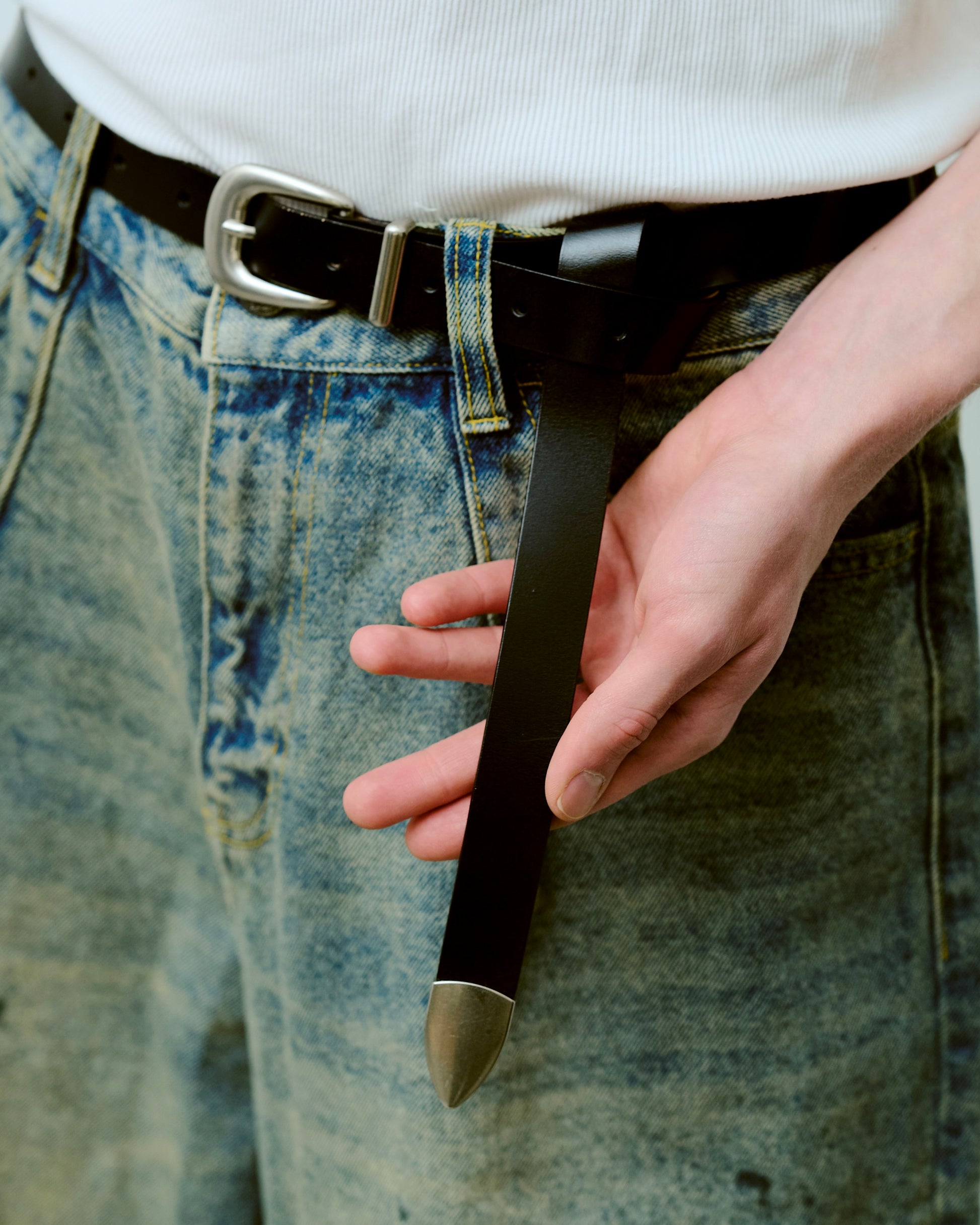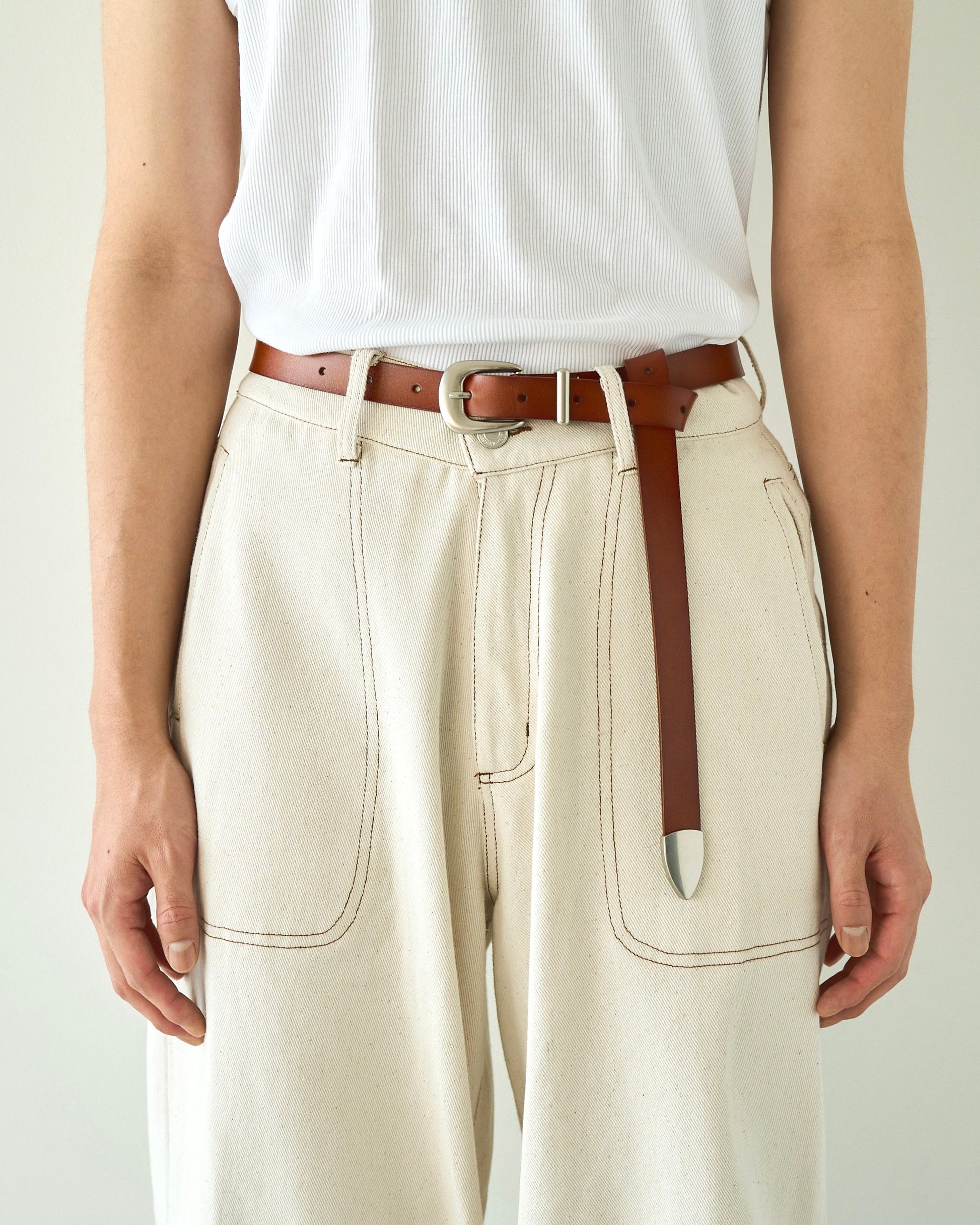 燻し加工を施し、天然皮革を使用したウエスタンベルト。