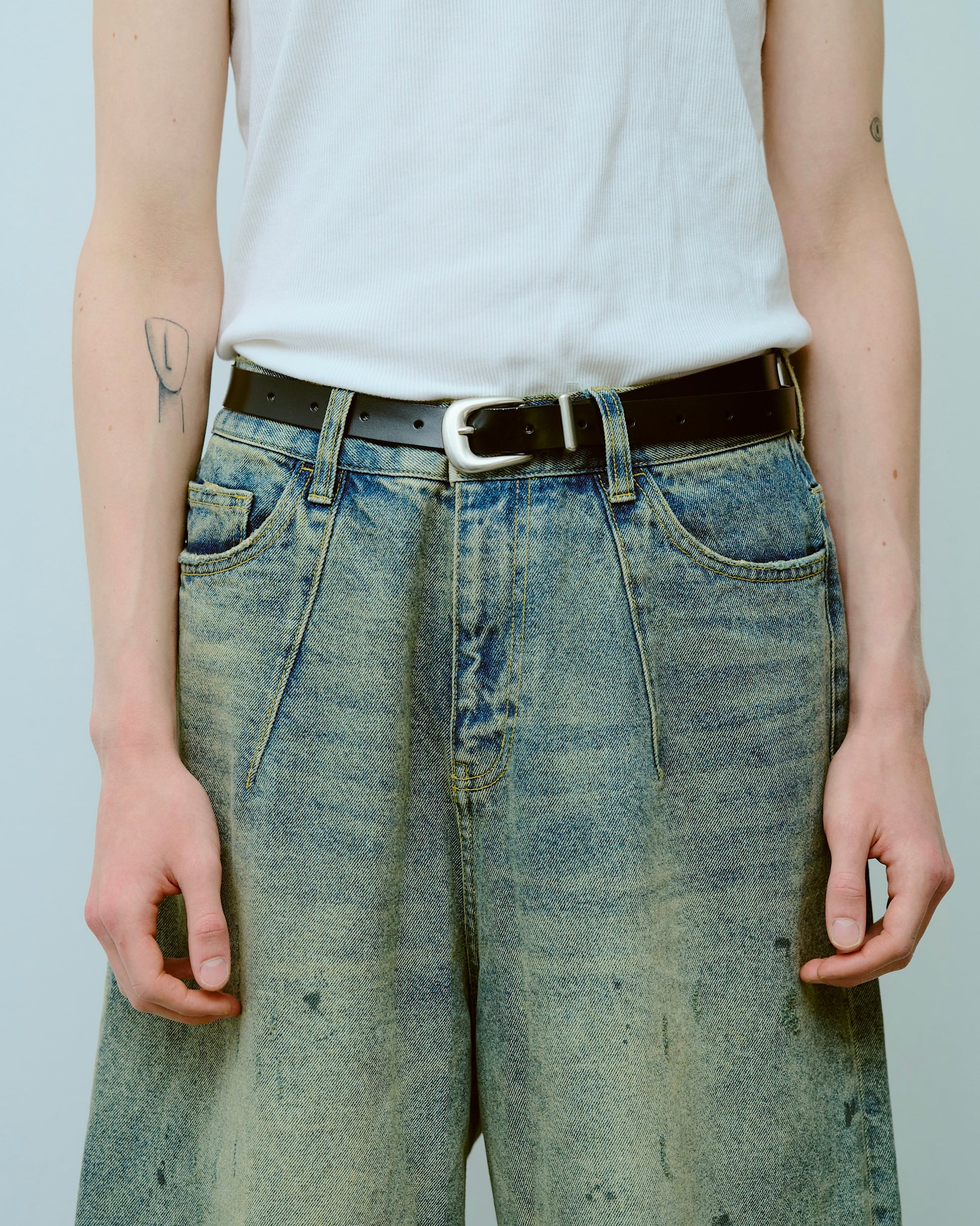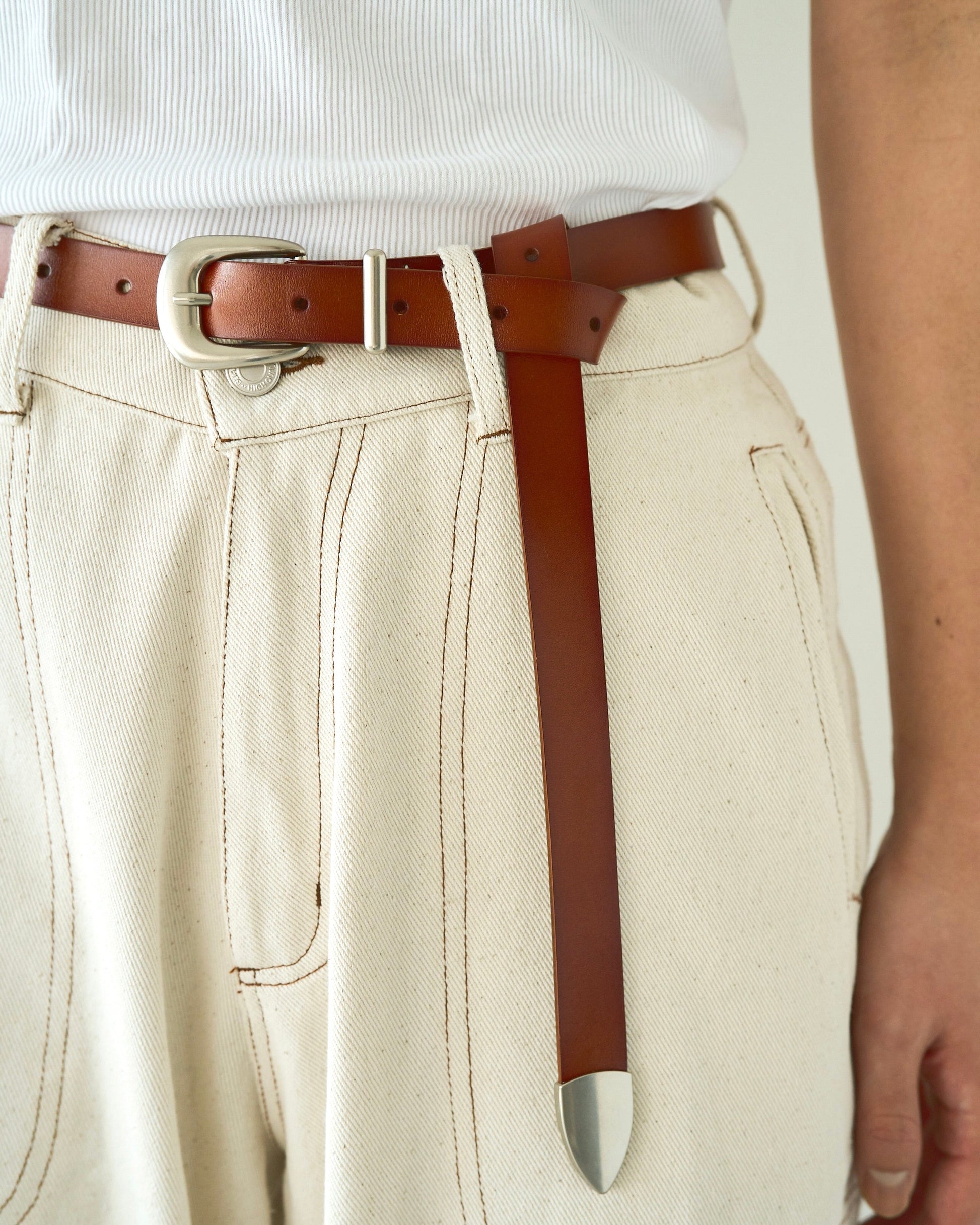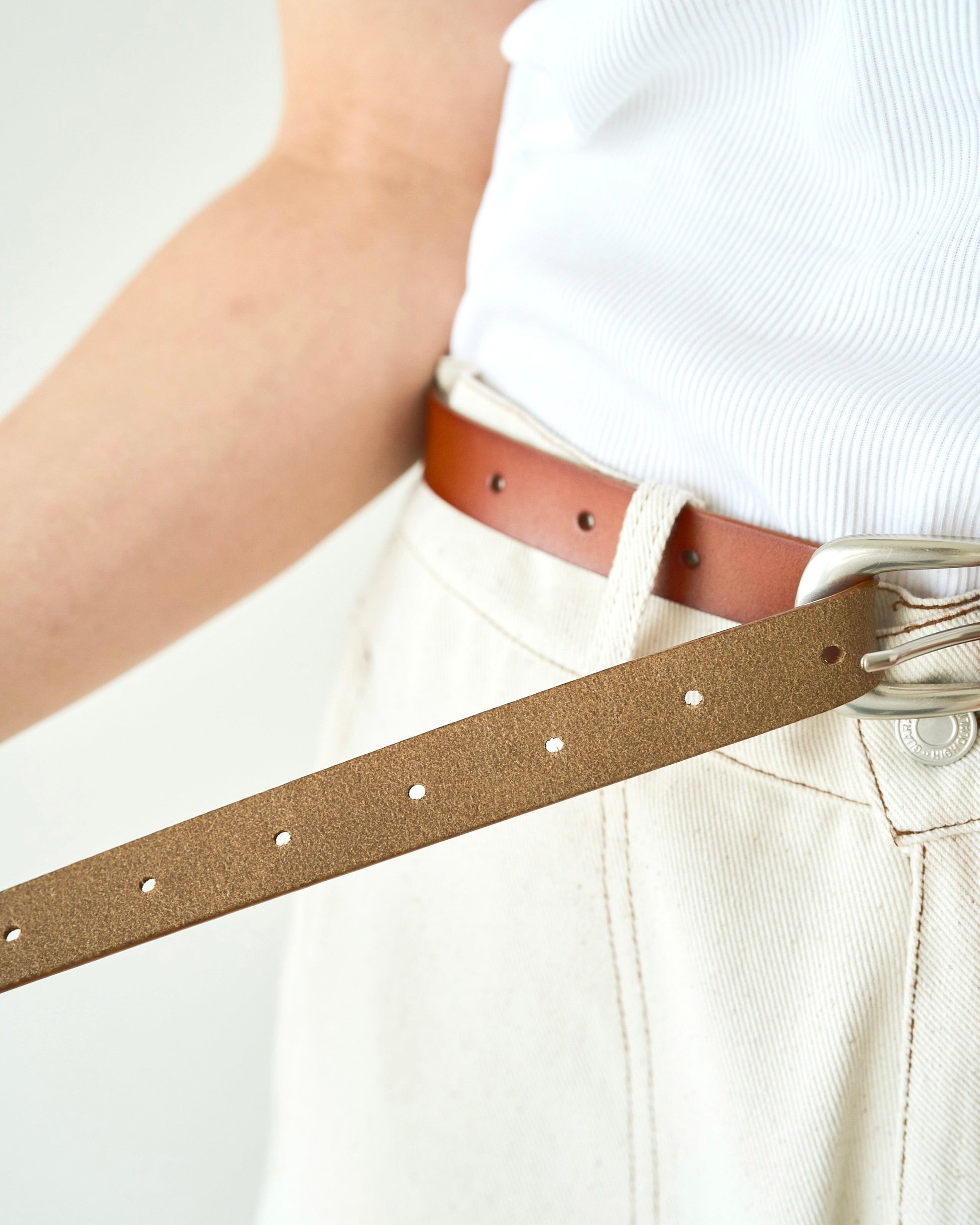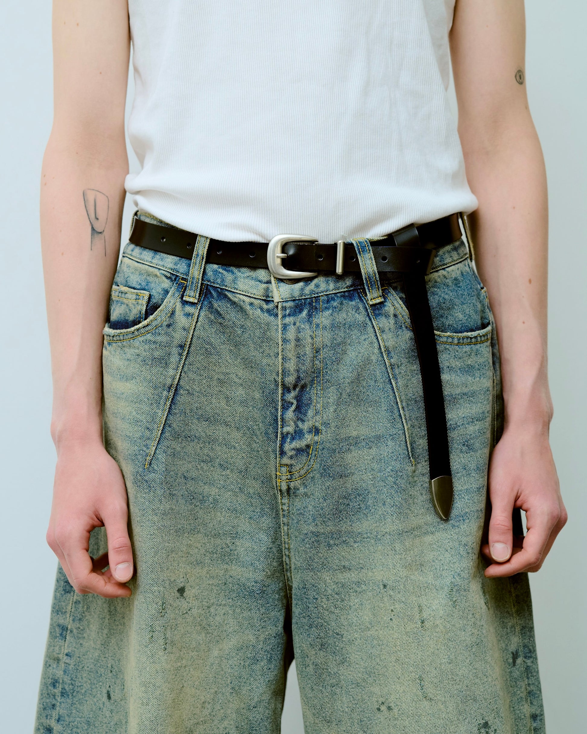 燻し加工を施し、天然皮革を使用したウエスタンベルト。