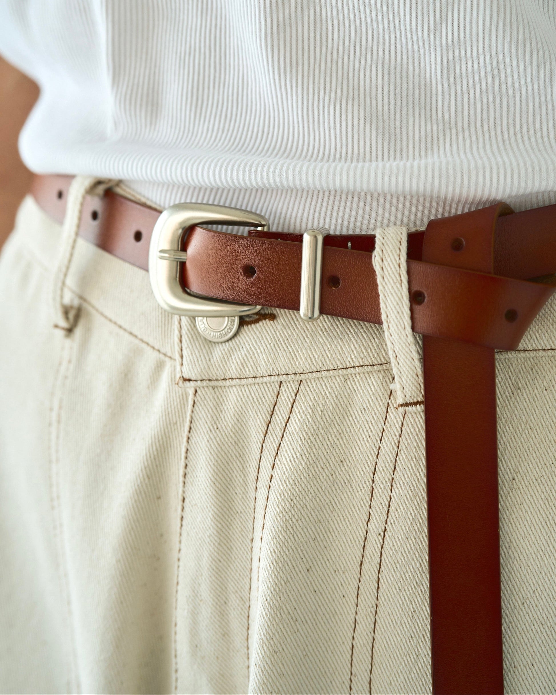 全長125cmの長めのサイジングにより、腰元で垂らして着用したり、好みに合わせてアレンジすることも可能に。