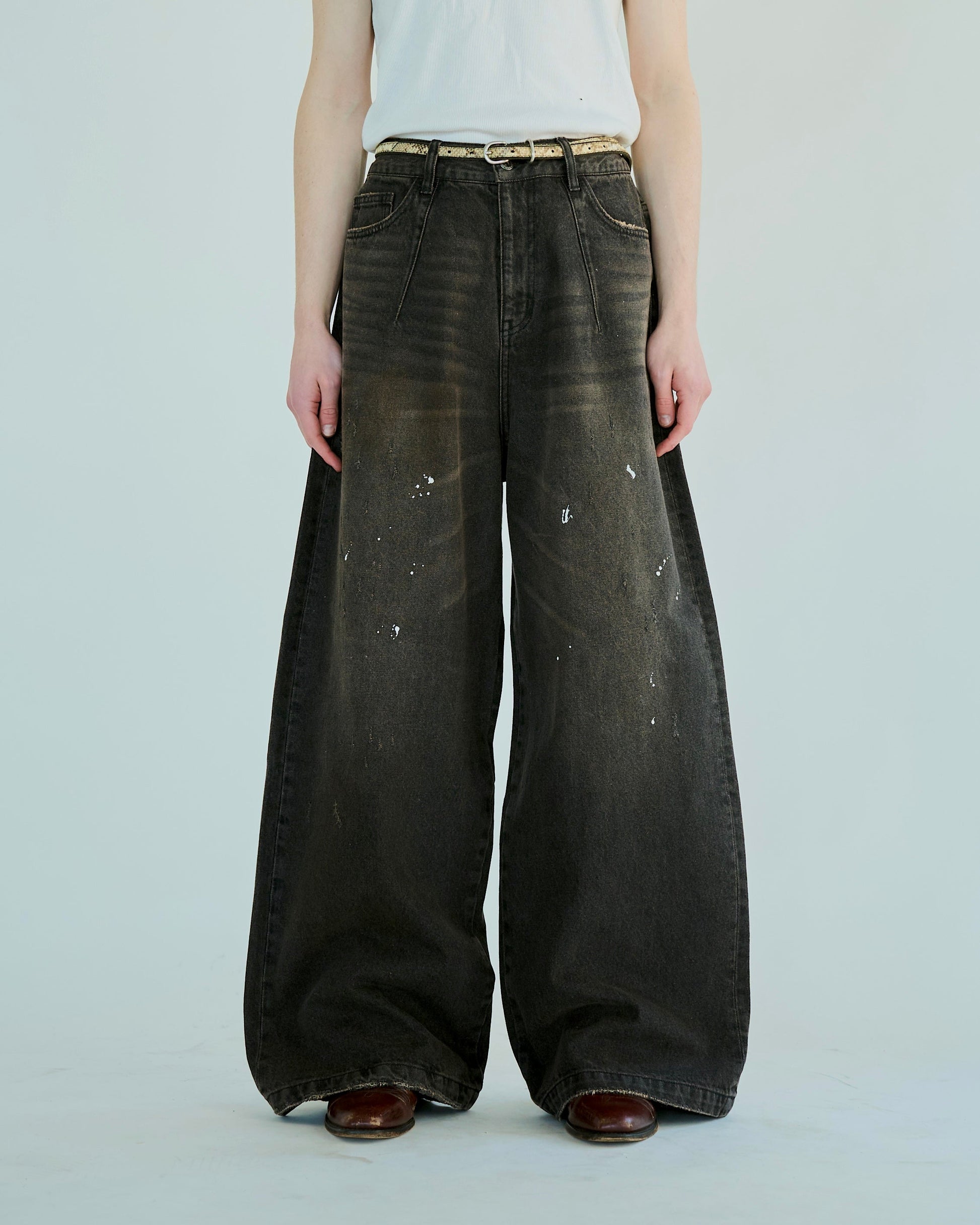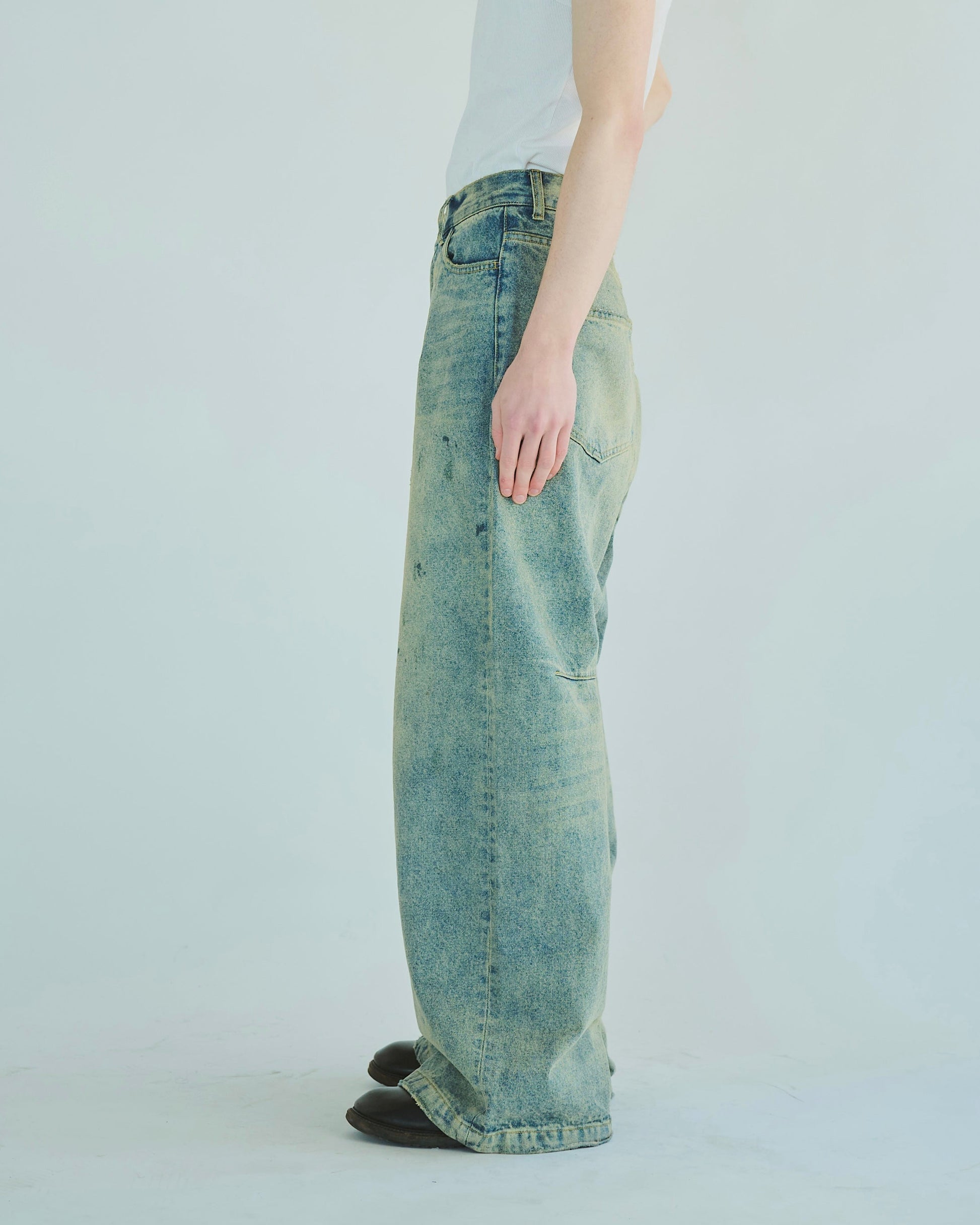 wide baggy overdye denim trousers
